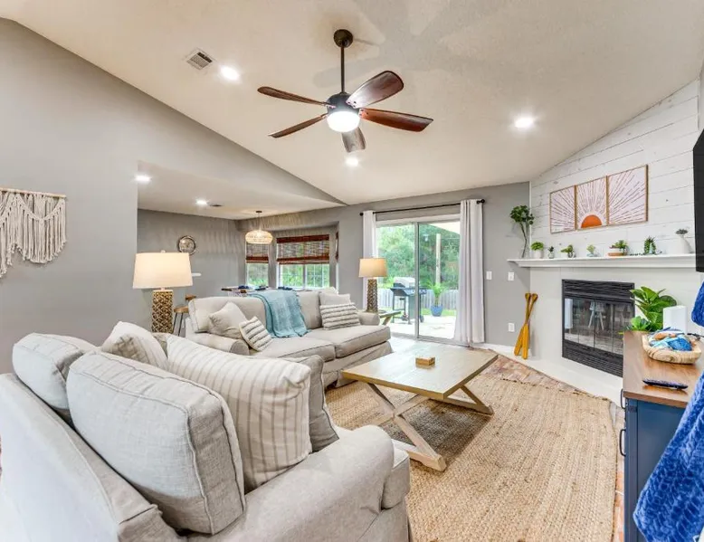 Spacious Accommodations: Pensacola Home with Fire Pit offers a spacious holiday home in Perdido Key. The property features three bedrooms and two bathrooms, ensuring ample space for all guests. Modern Amenities: Guests enjoy free WiFi, air-conditioning, and a fully equipped kitchen with a fireplace. Additional amenities include a washing machine, patio, and barbecue facilities. Wellness and Leisure: The holiday home features a spa and wellness center, providing relaxation and rejuvenation. Outdoor activities such as swimming and fishing are available nearby. Convenient Location: Located 18 mi from Pensacola International Airport, the property is close to attractions like Saenger Theater and Pensacola Beach Gulf Pier. Highly rated by guests. The fireplace is a top feature of this holiday home. This spacious holiday home comes with 1 living room, 3 separate bedrooms and 2 bathrooms with a bath and free toiletries. Guests will find a stovetop, a refrigerator, a dishwasher and kitchenware in the well-fitted kitchen. The holiday home also includes a barbecue. The holiday home features air conditioning, a washing machine, a private entrance, a coffee machine, as well as a TV with cable channels. The unit has 4 beds.