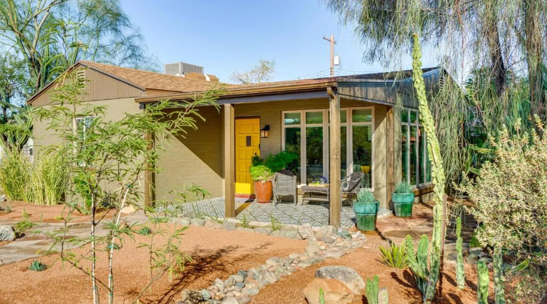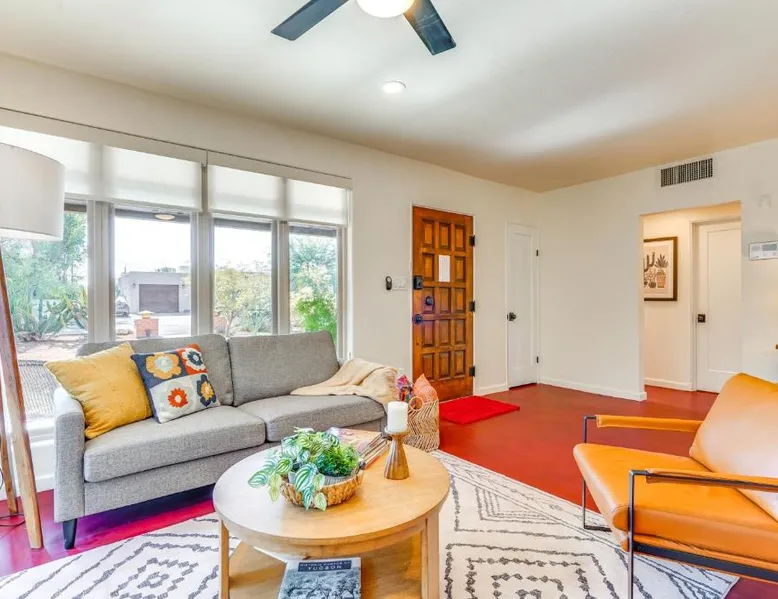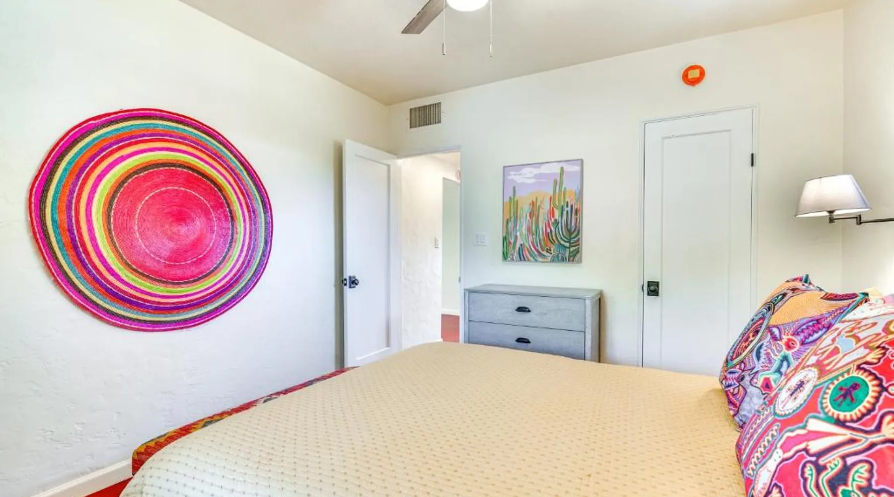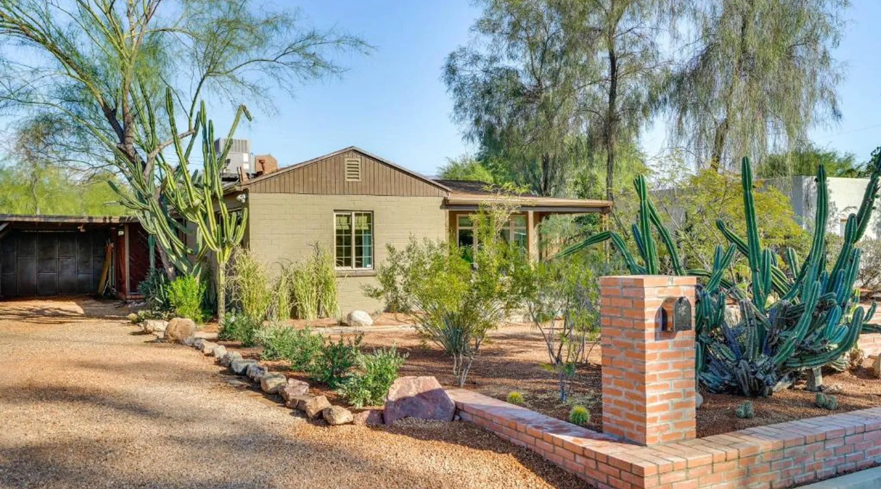 Comfortable Living: Gazebo, Patios and Grill Colorful Tucson Retreat! in Tucson offers two bedrooms, a living room, and a bathroom. The property includes air-conditioning, a washing machine, and a fully equipped kitchen with a dishwasher and microwave. Relaxing Amenities: Guests can enjoy a spa and wellness center, a beautiful garden, and free WiFi. The holiday home features a patio with garden views, an outdoor dining area, and a barbecue. Additional amenities include a work desk, TV, and free toiletries. Convenient Location: Located 9.9 mi from Tucson International Airport, the property is a 14-minute walk from Southwest University Of Visual Arts. Nearby attractions include Arizona Stadium (3 mi) and Tucson Botanical Gardens (2.1 mi). Highly rated by guests. Featuring a private entrance, this air-conditioned holiday home consists of 1 living room, 2 separate bedrooms and 1 bathroom with a shower and a hairdryer. Guests will find a stovetop, a refrigerator, a dishwasher and kitchenware in the well-fitted kitchen. The holiday home also provides guests with a barbecue. The holiday home provides a washing machine, a coffee machine, tumble dryer, a flat-screen TV with cable channels, as well as garden views. The unit offers 2 beds.