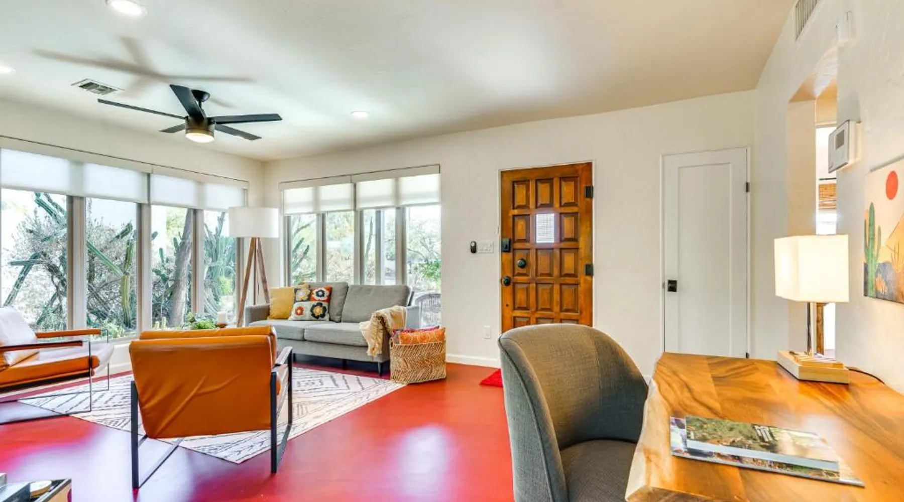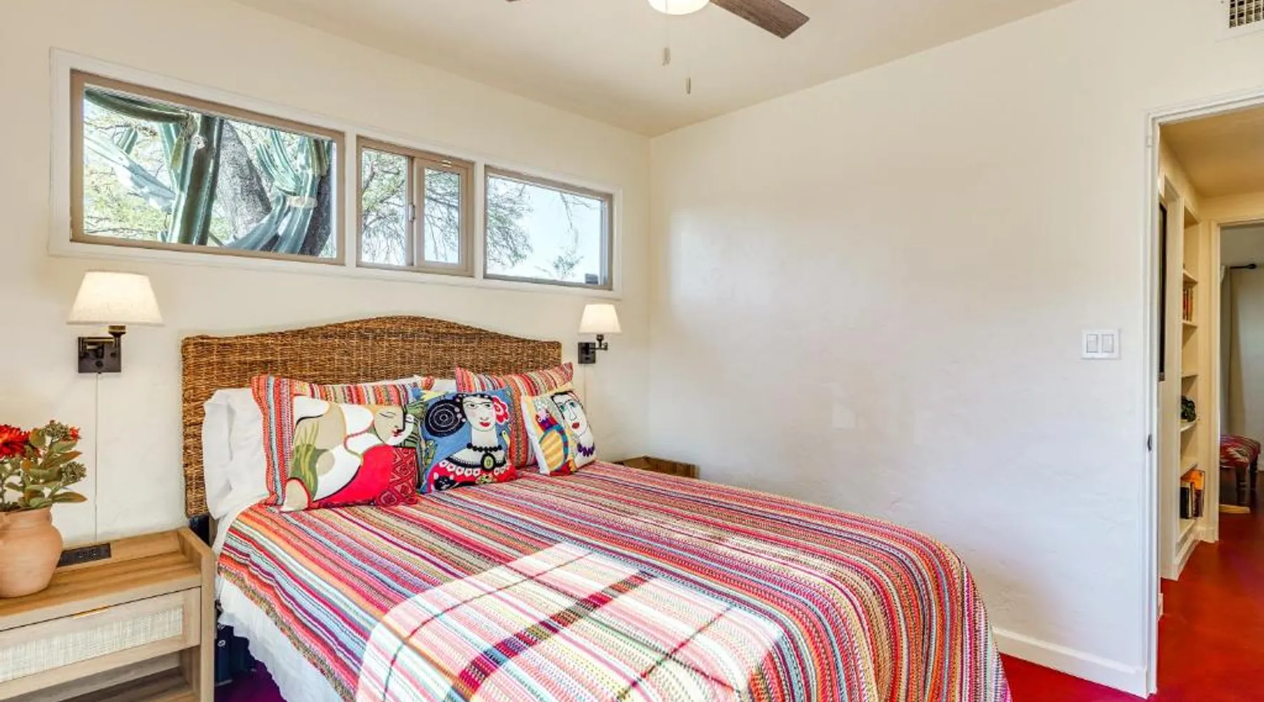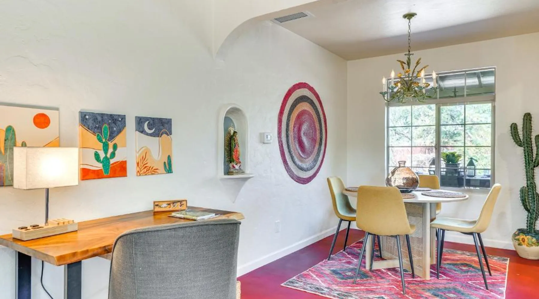 Comfortable Living: Gazebo, Patios and Grill Colorful Tucson Retreat! in Tucson offers two bedrooms, a living room, and a bathroom. The property includes air-conditioning, a washing machine, and a fully equipped kitchen with a dishwasher and microwave. Relaxing Amenities: Guests can enjoy a spa and wellness center, a beautiful garden, and free WiFi. The holiday home features a patio with garden views, an outdoor dining area, and a barbecue. Additional amenities include a work desk, TV, and free toiletries. Convenient Location: Located 9.9 mi from Tucson International Airport, the property is a 14-minute walk from Southwest University Of Visual Arts. Nearby attractions include Arizona Stadium (3 mi) and Tucson Botanical Gardens (2.1 mi). Highly rated by guests. Featuring a private entrance, this air-conditioned holiday home consists of 1 living room, 2 separate bedrooms and 1 bathroom with a shower and a hairdryer. Guests will find a stovetop, a refrigerator, a dishwasher and kitchenware in the well-fitted kitchen. The holiday home also provides guests with a barbecue. The holiday home provides a washing machine, a coffee machine, tumble dryer, a flat-screen TV with cable channels, as well as garden views. The unit offers 2 beds.