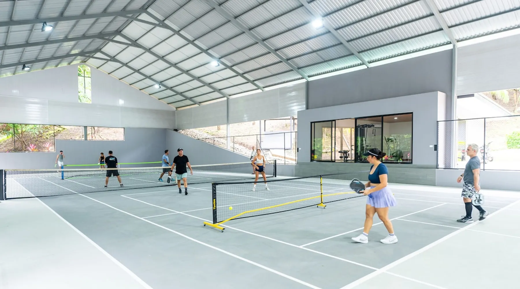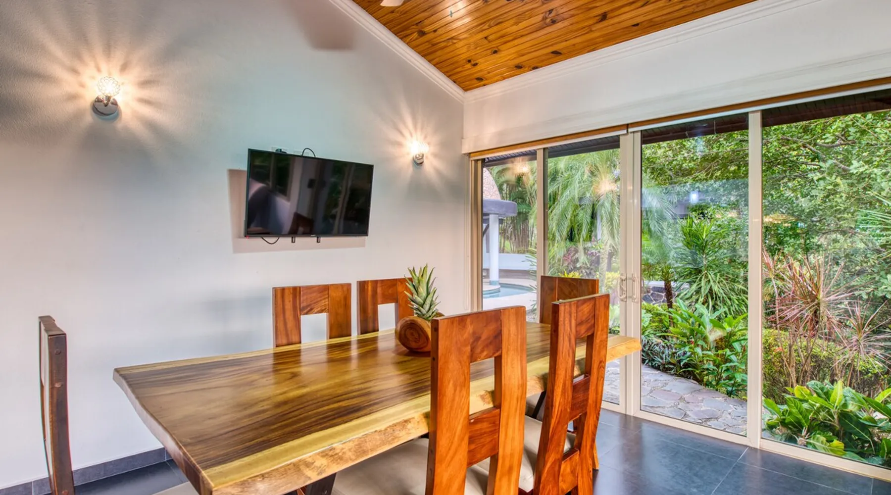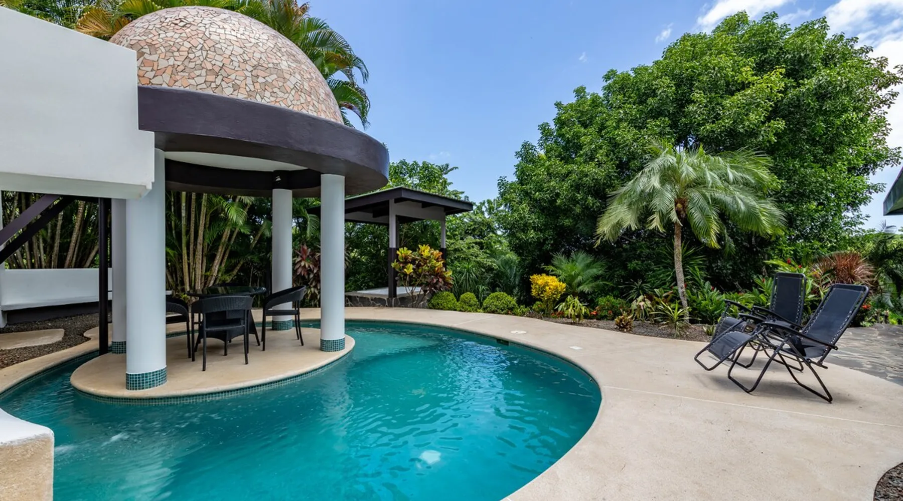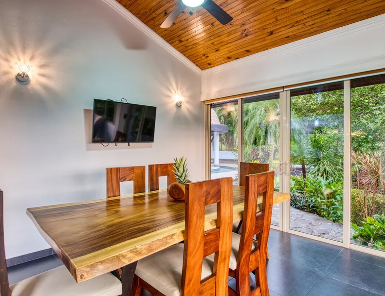 Enjoy ultimate privacy and security at this luxurious 2-villa retreat in Nosara, Costa Rica. With 7 spacious bedrooms, a beautiful pool, and stunning ocean views, this property offers the perfect setting for family getaways or intimate retreats. Located just 5 minutes from the beach and downtown, it combines easy access to Nosara’s attractions with a peaceful and secluded atmosphere. Immerse yourself in the vibrant local culture, surrounded by natural beauty and authentic Costa Rican experiences The space This exceptional property offers four key qualities that set it apart from other luxury villas in Nosara: 𝐔𝐧𝐢𝐧𝐭𝐞𝐫𝐫𝐮𝐩𝐭𝐞𝐝 𝐏𝐞𝐚𝐜𝐞: Located away from any construction, ensuring a restful environment ideal for sleep, listening to the ocean waves, and other serene sounds of nature. Unlike many luxury villas near the beach, which are surrounded by ongoing construction, this location remains an undisturbed escape. 𝐅𝐫𝐞𝐞 𝐓𝐫𝐚𝐯𝐞𝐥 𝐀𝐠𝐞𝐧𝐭 𝐚𝐧𝐝 𝐂𝐨𝐧𝐜𝐢𝐞𝐫𝐠𝐞 𝐒𝐞𝐫𝐯𝐢𝐜𝐞𝐬: Your reservation includes complimentary travel agent services and an on-site concierge to handle transportation, excursions, private chef bookings, event planning, and more, making your vacation seamless and enjoyable. 𝐕𝐞𝐫𝐬𝐚𝐭𝐢𝐥𝐞 𝐂𝐨𝐦𝐦𝐨𝐧 𝐒𝐩𝐚𝐜𝐞𝐬: The property boasts spacious areas perfect for yoga classes, sound healing sessions, corporate workshops, pickleball tournaments, family meals, kids’ playtime, and star-gazing nights. 𝐒𝐞𝐜𝐮𝐫𝐢𝐭𝐲 𝐚𝐧𝐝 𝐏𝐫𝐢𝐯𝐚𝐜𝐲: Situated in a gated community with 24/7 security, private parking, and a welcoming gate attendant, this villa ensures safety and privacy for a worry-free experience. Property Overview: 𝟕 𝐋𝐮𝐱𝐮𝐫𝐢𝐨𝐮𝐬 𝐁𝐞𝐝𝐫𝐨𝐨𝐦𝐬: Comfortably accommodates up to 16 guests. The property features 2 separate units, ideal for multiple families, while also offering the flexibility of expanding the accommodation for larger groups—up to 60+ guests depending on your needs. 𝐌𝐚𝐢𝐧 𝐇𝐨𝐮𝐬𝐞: 4 Bedrooms En suite bathrooms A/C in bedrooms, living room, and kitchen Fully equipped kitchen Spacious living room with TV seating for 8 Dining table for 6 Private pool and deck Office 3 Private parking spaces Private laundry room 𝐂𝐚𝐬𝐚 𝐂𝐨𝐥𝐨𝐧𝐢𝐚𝐥: 3 Bedrooms 2 Full bathrooms A/C in bedrooms, living room, and kitchen Private pool, deck, and hot tub Fully equipped kitchen Living room seating for 6 2 Private parking spaces Private laundry room Additional Features: 𝐅𝐮𝐥𝐥-𝐒𝐞𝐫𝐯𝐢𝐜𝐞 𝐂𝐨𝐧𝐜𝐢𝐞𝐫𝐠𝐞: Your in-house concierge team is dedicated to ensuring a personalized experience. From excursion bookings to event planning and private chef services, we handle it all to make your stay effortless and enjoyable. 𝐏𝐫𝐢𝐯𝐚𝐭𝐞 𝐏𝐨𝐨𝐥: Private pool surrounded by lush tropical gardens provide the perfect setting for relaxation. Enjoy the tranquil sounds of nature while gazing at the stars or picking fresh fruit from nearby trees. 𝐏𝐫𝐢𝐯𝐚𝐭𝐞 𝐂𝐡𝐞𝐟: Indulge in customized gourmet meals prepared by our private chef, including blue-zone-inspired dishes and your favorite comfort foods. 𝐄𝐯𝐞𝐧𝐭 𝐒𝐩𝐚𝐜𝐞: The expansive outdoor areas are perfect for hosting weddings, rehearsal dinners, and special events. Our experienced concierge team offers event planning services for a stress-free experience. 𝐏𝐢𝐜𝐤𝐥𝐞𝐛𝐚𝐥𝐥 & 𝐓𝐞𝐧𝐧𝐢𝐬 𝐅𝐚𝐜𝐢𝐥𝐢𝐭𝐢𝐞𝐬: Access the best pickleball and tennis courts in Nosara, perfect for both casual games and professional tournaments. Courts are covered and lit, ensuring play is possible in any weather. 𝐆𝐲𝐦: Stay active in the fully-equipped fitness center with free weights, cardio machines, and recovery equipment. 𝐎𝐧-𝐒𝐢𝐭𝐞 𝐘𝐨𝐠𝐚 𝐂𝐥𝐚𝐬𝐬𝐞𝐬: Join our rejuvenating yoga sessions. Don’t worry about bringing your own mat—exclusive, Costa Rican-designed mats are available for purchase as a functional souvenir. 𝐅𝐨𝐨𝐝 𝐃𝐞𝐥𝐢𝐯𝐞𝐫𝐲 & 𝐏𝐫𝐞-𝐒𝐭𝐨𝐜𝐤𝐢𝐧𝐠: We offer food delivery services and can pre-stock your desired groceries, ensuring that you have everything you need for a convenient, hassle-free stay. 𝐌𝐚𝐬𝐬𝐚𝐠𝐞 𝐒𝐞𝐫𝐯𝐢𝐜𝐞𝐬: Relax and rejuvenate with luxurious in-villa massages, tailored to your preferences. 𝐂𝐨𝐚𝐜𝐡𝐢𝐧𝐠: Improve your game with professional pickleball and tennis coaching, available on request. 𝐓𝐫𝐚𝐧𝐪𝐮𝐢𝐥 & 𝐏𝐫𝐢𝐯𝐚𝐭𝐞 𝐋𝐨𝐜𝐚𝐭𝐢𝐨𝐧: Enjoy the peace and solitude of our secluded, elite location, providing a serene sanctuary for relaxation and play. 𝐂𝐨𝐧𝐯𝐞𝐧𝐢𝐞𝐧𝐭 𝐀𝐜𝐜𝐞𝐬𝐬: Just 5 minutes from the beach and Nosara’s vibrant town center, with easy access to all of the area’s top attractions and experiences. This unique blend of privacy, luxury, and convenient access makes this villa the ideal retreat for those seeking tranquility, adventure, and an elevated Nosara experience. Guest access You will have access to plentiful parking, 2 villas that include separate private entrances for each of the 3 units, the outdoor space displayed in the first photo, and the pool. Other things to note More adjacent bedrooms and villas may be available depending on the dates of your reservation. Ask us about providing accommodations for 60+ guests and we will supply all the space you need.
