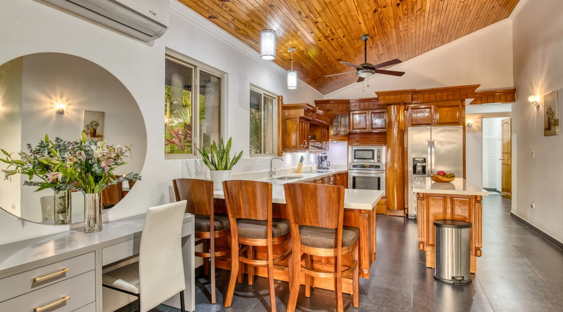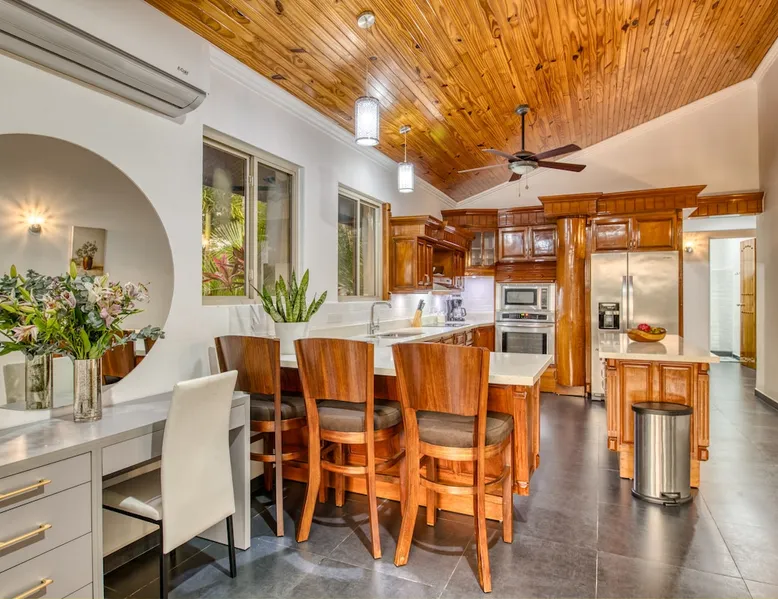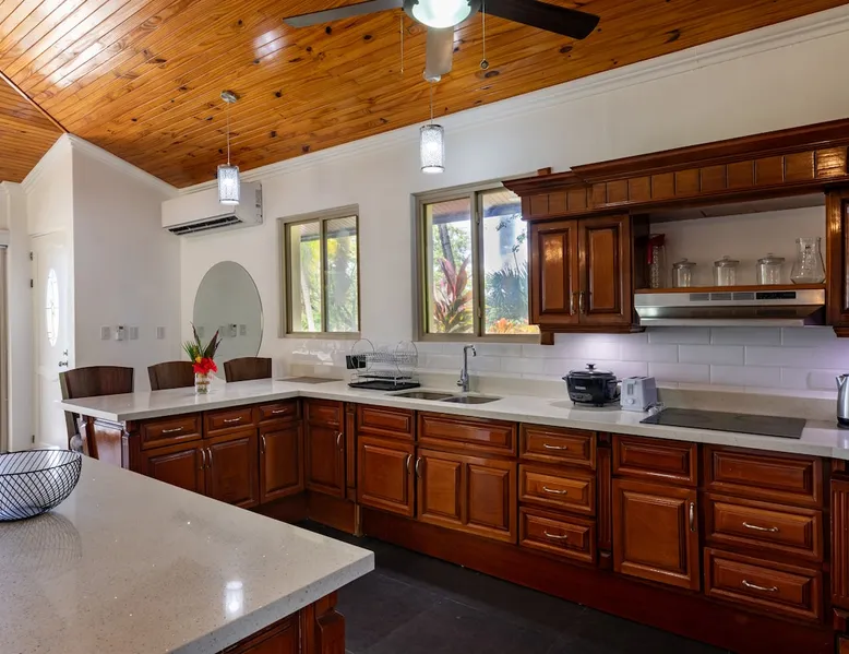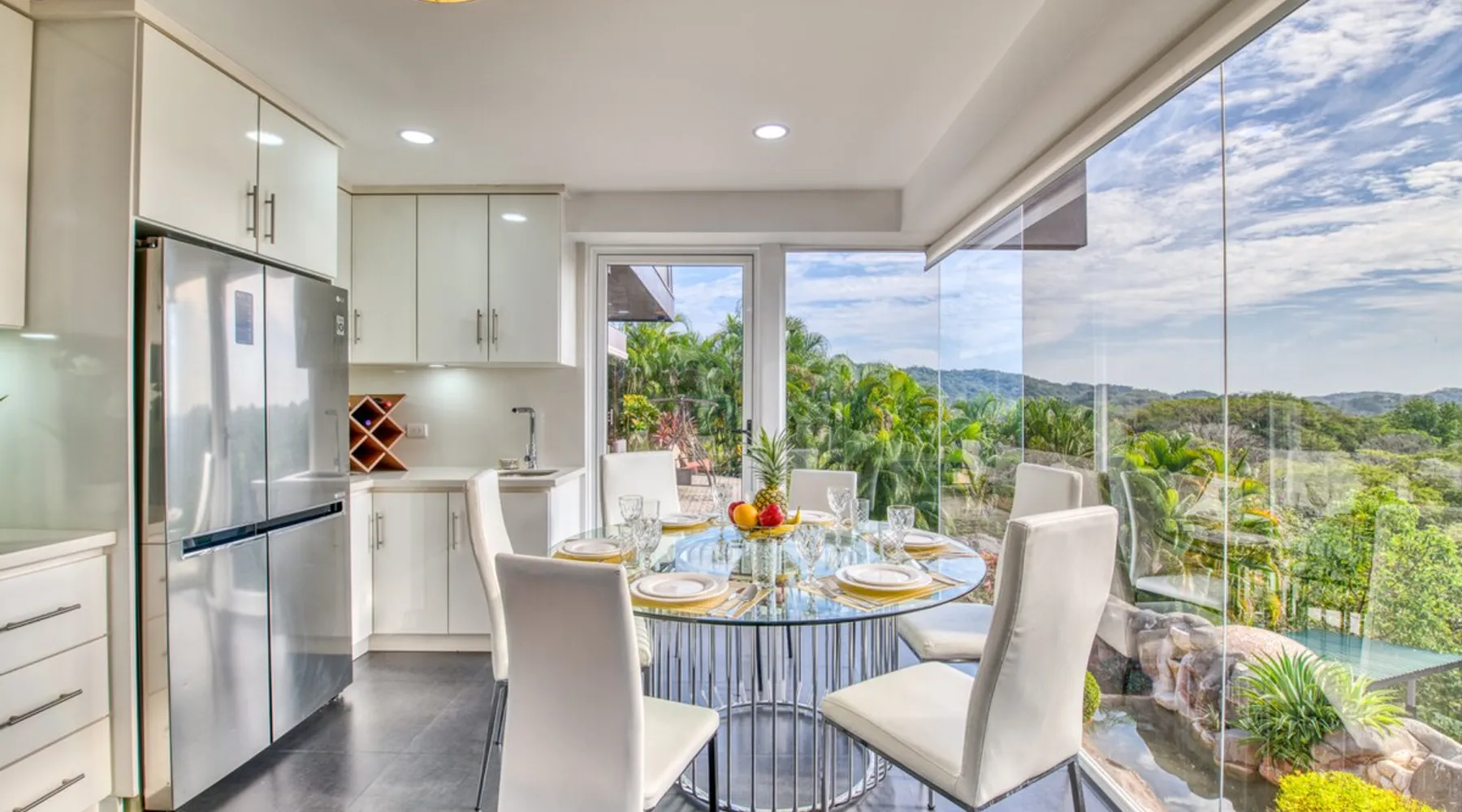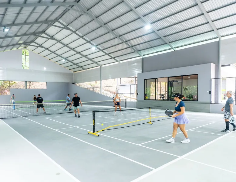 Enjoy ultimate privacy and security at this luxurious 2-villa retreat in Nosara, Costa Rica. With 7 spacious bedrooms, a beautiful pool, and stunning ocean views, this property offers the perfect setting for family getaways or intimate retreats. Located just 5 minutes from the beach and downtown, it combines easy access to Nosara’s attractions with a peaceful and secluded atmosphere. Immerse yourself in the vibrant local culture, surrounded by natural beauty and authentic Costa Rican experiences The space This exceptional property offers four key qualities that set it apart from other luxury villas in Nosara: 𝐔𝐧𝐢𝐧𝐭𝐞𝐫𝐫𝐮𝐩𝐭𝐞𝐝 𝐏𝐞𝐚𝐜𝐞: Located away from any construction, ensuring a restful environment ideal for sleep, listening to the ocean waves, and other serene sounds of nature. Unlike many luxury villas near the beach, which are surrounded by ongoing construction, this location remains an undisturbed escape. 𝐅𝐫𝐞𝐞 𝐓𝐫𝐚𝐯𝐞𝐥 𝐀𝐠𝐞𝐧𝐭 𝐚𝐧𝐝 𝐂𝐨𝐧𝐜𝐢𝐞𝐫𝐠𝐞 𝐒𝐞𝐫𝐯𝐢𝐜𝐞𝐬: Your reservation includes complimentary travel agent services and an on-site concierge to handle transportation, excursions, private chef bookings, event planning, and more, making your vacation seamless and enjoyable. 𝐕𝐞𝐫𝐬𝐚𝐭𝐢𝐥𝐞 𝐂𝐨𝐦𝐦𝐨𝐧 𝐒𝐩𝐚𝐜𝐞𝐬: The property boasts spacious areas perfect for yoga classes, sound healing sessions, corporate workshops, pickleball tournaments, family meals, kids’ playtime, and star-gazing nights. 𝐒𝐞𝐜𝐮𝐫𝐢𝐭𝐲 𝐚𝐧𝐝 𝐏𝐫𝐢𝐯𝐚𝐜𝐲: Situated in a gated community with 24/7 security, private parking, and a welcoming gate attendant, this villa ensures safety and privacy for a worry-free experience. Property Overview: 𝟕 𝐋𝐮𝐱𝐮𝐫𝐢𝐨𝐮𝐬 𝐁𝐞𝐝𝐫𝐨𝐨𝐦𝐬: Comfortably accommodates up to 16 guests. The property features 2 separate units, ideal for multiple families, while also offering the flexibility of expanding the accommodation for larger groups—up to 60+ guests depending on your needs. 𝐌𝐚𝐢𝐧 𝐇𝐨𝐮𝐬𝐞: 4 Bedrooms En suite bathrooms A/C in bedrooms, living room, and kitchen Fully equipped kitchen Spacious living room with TV seating for 8 Dining table for 6 Private pool and deck Office 3 Private parking spaces Private laundry room 𝐂𝐚𝐬𝐚 𝐂𝐨𝐥𝐨𝐧𝐢𝐚𝐥: 3 Bedrooms 2 Full bathrooms A/C in bedrooms, living room, and kitchen Private pool, deck, and hot tub Fully equipped kitchen Living room seating for 6 2 Private parking spaces Private laundry room Additional Features: 𝐅𝐮𝐥𝐥-𝐒𝐞𝐫𝐯𝐢𝐜𝐞 𝐂𝐨𝐧𝐜𝐢𝐞𝐫𝐠𝐞: Your in-house concierge team is dedicated to ensuring a personalized experience. From excursion bookings to event planning and private chef services, we handle it all to make your stay effortless and enjoyable. 𝐏𝐫𝐢𝐯𝐚𝐭𝐞 𝐏𝐨𝐨𝐥: Private pool surrounded by lush tropical gardens provide the perfect setting for relaxation. Enjoy the tranquil sounds of nature while gazing at the stars or picking fresh fruit from nearby trees. 𝐏𝐫𝐢𝐯𝐚𝐭𝐞 𝐂𝐡𝐞𝐟: Indulge in customized gourmet meals prepared by our private chef, including blue-zone-inspired dishes and your favorite comfort foods. 𝐄𝐯𝐞𝐧𝐭 𝐒𝐩𝐚𝐜𝐞: The expansive outdoor areas are perfect for hosting weddings, rehearsal dinners, and special events. Our experienced concierge team offers event planning services for a stress-free experience. 𝐏𝐢𝐜𝐤𝐥𝐞𝐛𝐚𝐥𝐥 & 𝐓𝐞𝐧𝐧𝐢𝐬 𝐅𝐚𝐜𝐢𝐥𝐢𝐭𝐢𝐞𝐬: Access the best pickleball and tennis courts in Nosara, perfect for both casual games and professional tournaments. Courts are covered and lit, ensuring play is possible in any weather. 𝐆𝐲𝐦: Stay active in the fully-equipped fitness center with free weights, cardio machines, and recovery equipment. 𝐎𝐧-𝐒𝐢𝐭𝐞 𝐘𝐨𝐠𝐚 𝐂𝐥𝐚𝐬𝐬𝐞𝐬: Join our rejuvenating yoga sessions. Don’t worry about bringing your own mat—exclusive, Costa Rican-designed mats are available for purchase as a functional souvenir. 𝐅𝐨𝐨𝐝 𝐃𝐞𝐥𝐢𝐯𝐞𝐫𝐲 & 𝐏𝐫𝐞-𝐒𝐭𝐨𝐜𝐤𝐢𝐧𝐠: We offer food delivery services and can pre-stock your desired groceries, ensuring that you have everything you need for a convenient, hassle-free stay. 𝐌𝐚𝐬𝐬𝐚𝐠𝐞 𝐒𝐞𝐫𝐯𝐢𝐜𝐞𝐬: Relax and rejuvenate with luxurious in-villa massages, tailored to your preferences. 𝐂𝐨𝐚𝐜𝐡𝐢𝐧𝐠: Improve your game with professional pickleball and tennis coaching, available on request. 𝐓𝐫𝐚𝐧𝐪𝐮𝐢𝐥 & 𝐏𝐫𝐢𝐯𝐚𝐭𝐞 𝐋𝐨𝐜𝐚𝐭𝐢𝐨𝐧: Enjoy the peace and solitude of our secluded, elite location, providing a serene sanctuary for relaxation and play. 𝐂𝐨𝐧𝐯𝐞𝐧𝐢𝐞𝐧𝐭 𝐀𝐜𝐜𝐞𝐬𝐬: Just 5 minutes from the beach and Nosara’s vibrant town center, with easy access to all of the area’s top attractions and experiences. This unique blend of privacy, luxury, and convenient access makes this villa the ideal retreat for those seeking tranquility, adventure, and an elevated Nosara experience. Guest access You will have access to plentiful parking, 2 villas that include separate private entrances for each of the 3 units, the outdoor space displayed in the first photo, and the pool. Other things to note More adjacent bedrooms and villas may be available depending on the dates of your reservation. Ask us about providing accommodations for 60+ guests and we will supply all the space you need.
