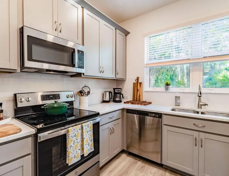 Comfortable Accommodations: Sienna Retreat in Sarasota offers a villa with one bedroom and two bathrooms. The property features air-conditioning, a washing machine, and a fully equipped kitchen with a refrigerator, microwave, dishwasher, and tea and coffee maker. Modern Amenities: Guests enjoy free WiFi, a private pool, and free on-site private parking. Additional amenities include a hairdryer, TV, and a dishwasher. Convenient Location: Sienna Retreat is located 3.1 mi from Sarasota Bradenton International Airport. Nearby attractions include The John And Mable Ringling Museum Of Art and Van Wezel Performing Arts Hall, both 4.3 mi away, and Sarasota Jungle Gardens at 5 mi. The private pool is the standout feature of this villa. Guests can make meals in the fully equipped kitchen that has a refrigerator, a dishwasher and a microwave. The villa features air conditioning, a washing machine, a tea and coffee maker, tumble dryer and a flat-screen TV. The unit has 2 beds.