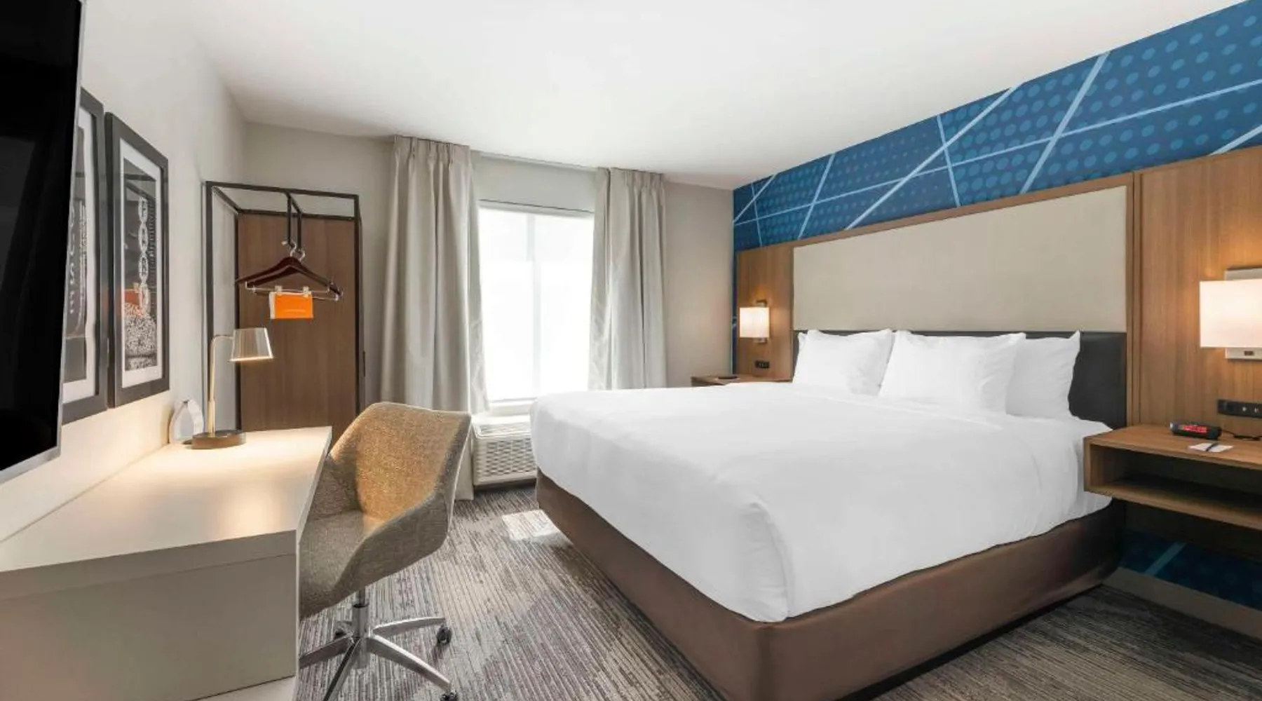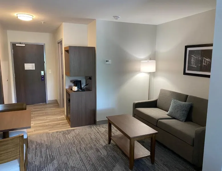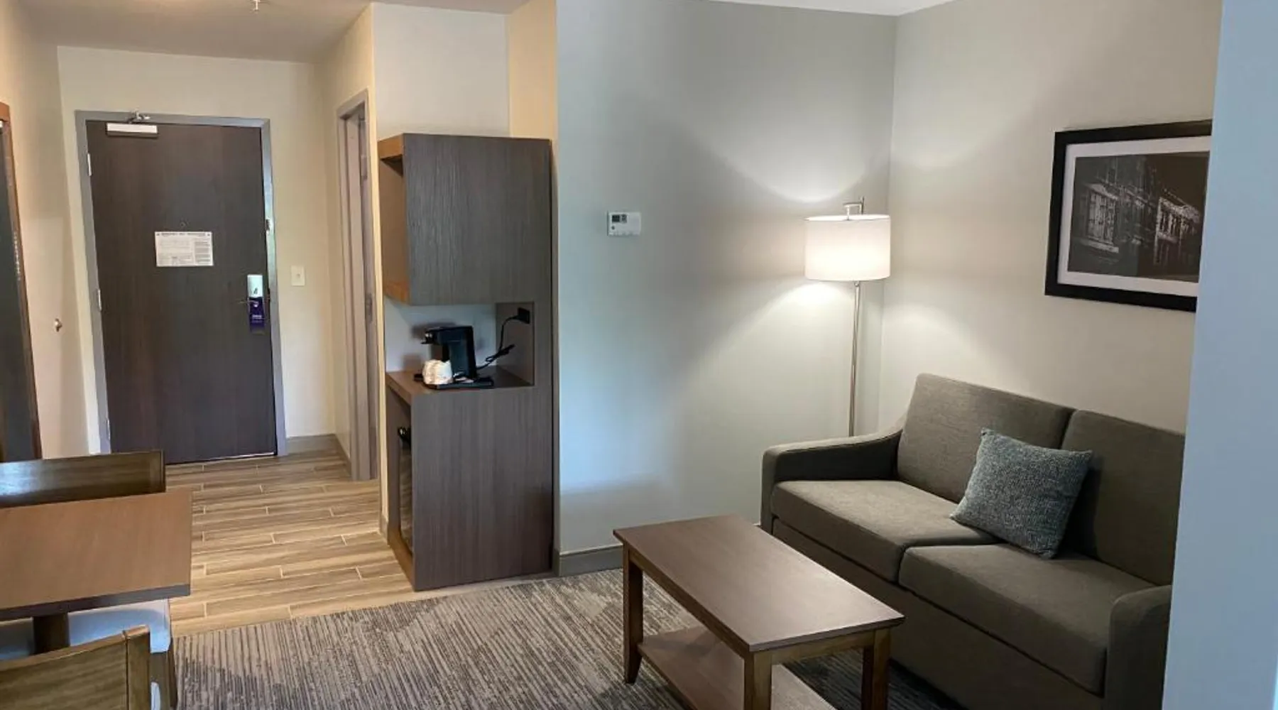 Comfortable Accommodations: Comfort Inn & Suites Gallatin in Gallatin offers family rooms with free WiFi, a fitness center, and a lounge. Guests enjoy amenities such as a minimarket, outdoor fireplace, and outdoor seating area. Delicious Breakfast: A continental, American, or buffet breakfast is served daily, featuring local specialties, warm dishes, fresh pastries, cheese, fruits, and juice. Convenient Location: Located 36 mi from Nashville International Airport, the hotel is near attractions like The Hermitage (24 mi) and Nissan Stadium (25 mi). Free on-site private parking is available. Exceptional Service: Highly rated for room cleanliness, attentive staff, and quality breakfast, the hotel provides express check-in and check-out, housekeeping, and a 24-hour front desk. The spacious suite offers a TV with cable channels, a tea and coffee maker, a seating area and heating. The unit has 1 bed.