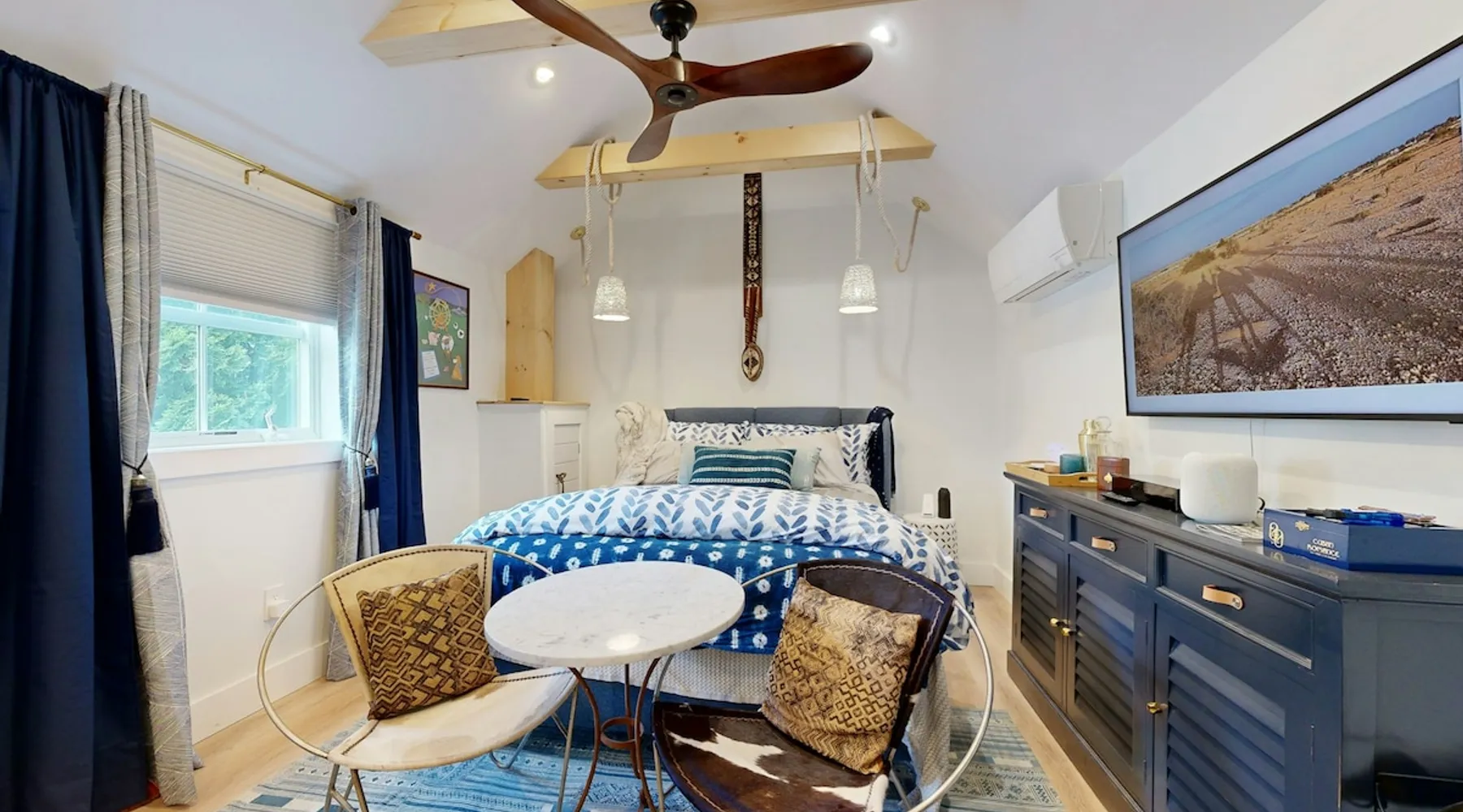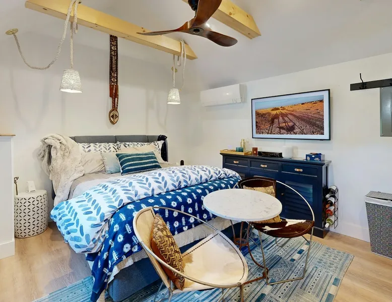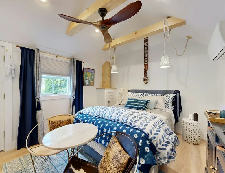 The space Sankofa Studio Nestled in the historic Vineyard Highlands at the beginning of the African American Heritage Trail, this charming studio in Oak Bluffs, MA, offers a unique and comfortable setting for your vacation. The newly renovated studio is located in the sought-after East Chop area, providing a perfect blend of tranquility and convenience. Just a short walk away from Circuit Ave, Oak Bluffs Harbor, the beach, and the iconic East Chop Lighthouse, you'll have easy access to all the town's attractions while still enjoying a peaceful setting. Parking for one is included directly in front. Explore the area's natural beauty and attractions, from the nearby beaches to the historic sites and lively town center. Whether you're interested in water activities like kayaking or prefer cycling adventures, Oak Bluffs offers something for everyone. After a day of exploration, unwind in the comfortable living space with queen bed and stream your favorite shows. Don't miss the chance to experience the best of Oak Bluffs from this exceptional vacation rental. Book your stay today and create lasting memories in this picturesque seaside town on Martha's Vineyard. Please note that Martha's Vineyard, while beautiful with an abundance of natural landscapes, does have ticks in grassy and wooded areas, so we recommend checking yourself after outdoor activities and taking appropriate precautions to ensure your stay remains enjoyable. Things to Know Check-in time: 4:00 p.m. Check-out time: 10:00 a.m. All guests shall abide by Vacasa’s good neighbor policy and shall not engage in illegal activity. Quiet hours are from 10:00 p.m. to 8:00 a.m. No smoking is permitted anywhere on the premises. Maximum occupancy for this unit is 2. Please park on the gravel directly in front of the studio, not in the driveway. Home has a mini split that offers AC and Heat. No dog(s) are welcome in this home. No other animals are allowed without specific Vacasa approval. Parking notes: There is free parking available for 1 vehicle. Damage waiver: The total cost of your reservation for this Property includes a damage waiver fee which covers you for up to $3,000 of accidental damage to the Property or its contents (such as furniture, fixtures, and appliances) as long as you report the incident to the host prior to checking out. More information can be found from the "Additional rules" on the checkout page. Due to local laws or HOA requirements, guests must be at least 25 years of age to book. Guests under 25 must be accompanied by a parent or legal guardian for the duration of the reservation.
