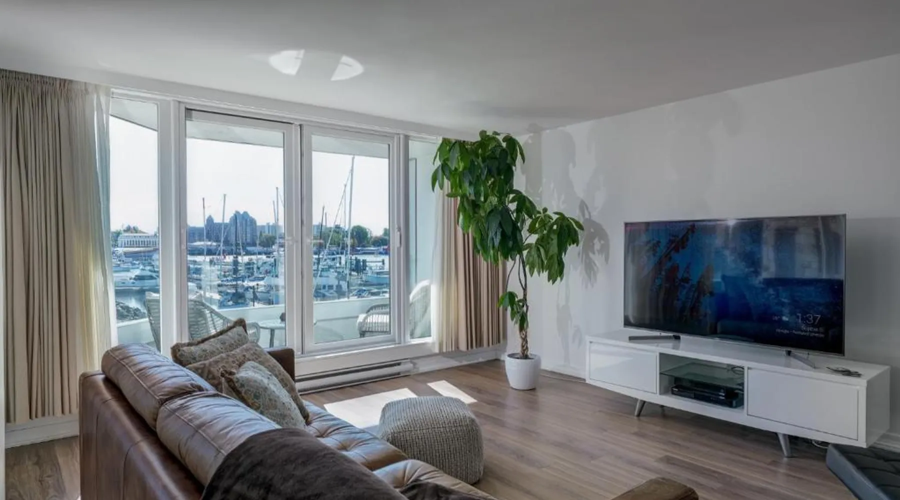 Spacious Accommodations: Coastal Charm offers a spacious apartment in Victoria city center. The property features one bedroom and one bathroom, ensuring comfort for all guests. Modern Amenities: Guests enjoy free WiFi, a terrace with sea views, and a spa and wellness center. Additional facilities include a elevator and free on-site parking. Convenient Location: Located 1.2 mi from Victoria Inner Harbor, the apartment is close to Victoria Harbor Ferry (less than 0.6 mi) and Save-On-Foods Memorial Center (14-minute walk). Nearby attractions include Point Ellice House (1.1 mi) and Steve Fonyo Beach (1.5 mi). Local Activities: The surrounding area features an ice-skating rink and scuba diving opportunities, providing ample activities for visitors. This spacious apartment consists of 1 bedroom, a kitchen and 1 bathroom with a bath or a shower and a hairdryer. In the fully equipped kitchen, guests will find a stovetop, a refrigerator, a dishwasher and kitchenware. Featuring a balcony with sea views, this apartment also provides a washing machine and a TV with cable channels. The unit offers 1 bed.