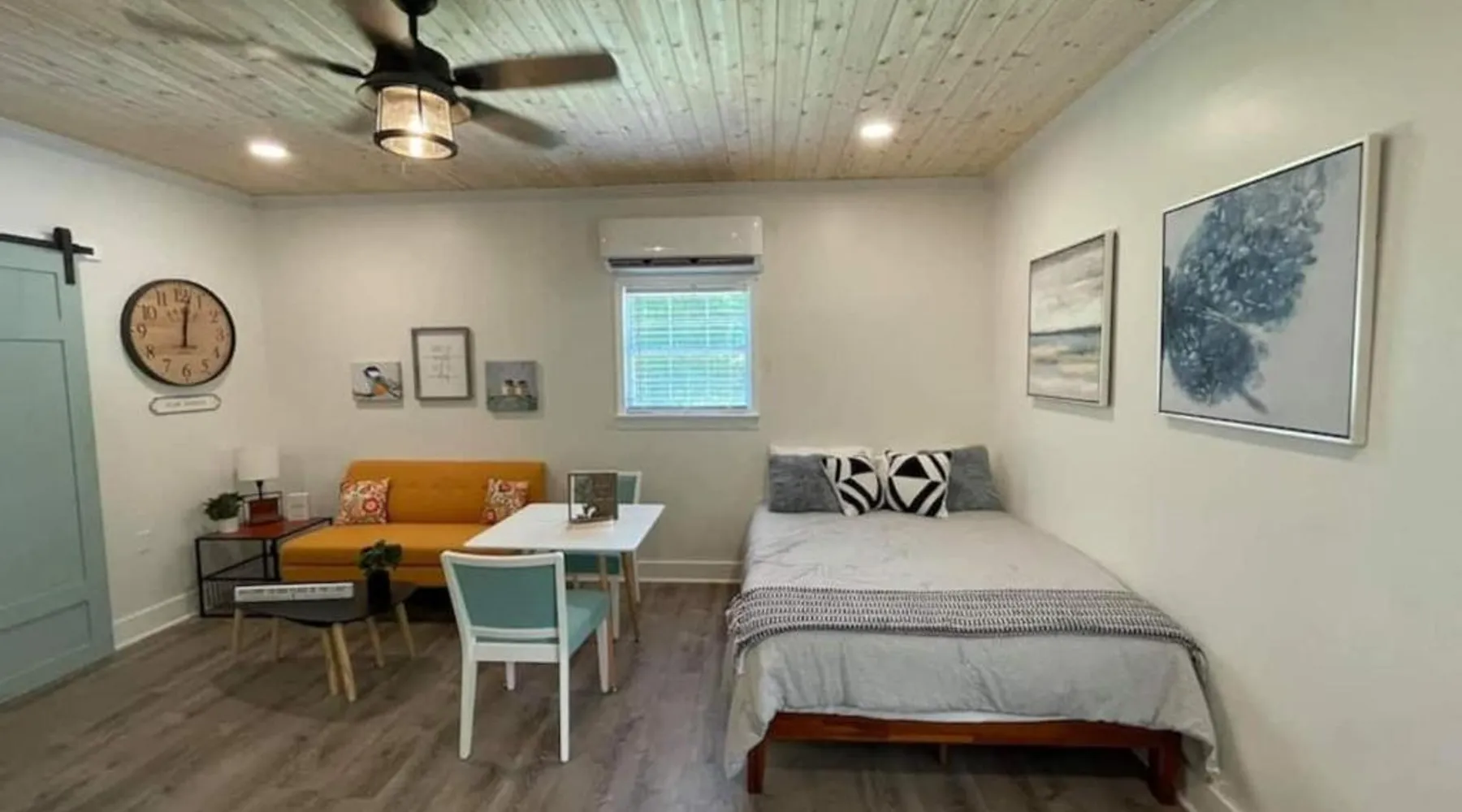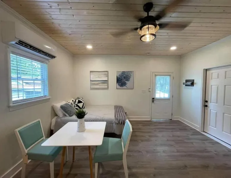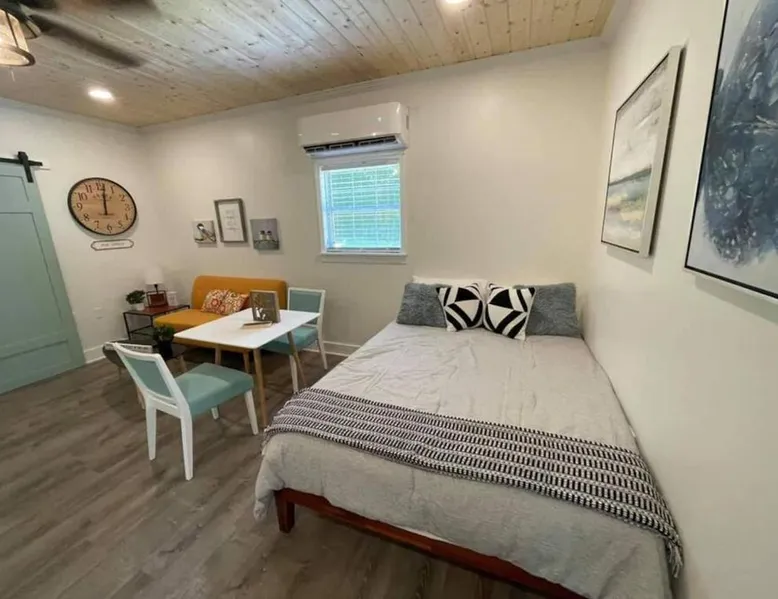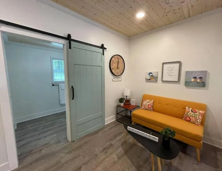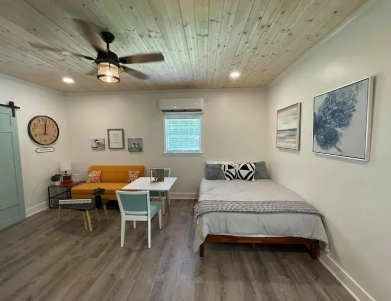 Comfortable Living Space: Beautifully Renovated Studio 2 Miles From Marina! in Winchester offers a spacious living room with a sofa and dining table. The apartment includes a fully equipped kitchen with a refrigerator, microwave, toaster, and kitchenware. Modern Amenities: Guests enjoy free WiFi, air-conditioning, and a washing machine. The property is pet-friendly and includes a private entrance. Additional amenities include a TV, hairdryer, and free toiletries. Convenient Location: Located 58 mi from Huntsville International Airport, the apartment is 24 mi from Great Stage Park. Free on-site private parking is available. The well-equipped kitchen features a refrigerator, kitchenware, a microwave and a tea and coffee maker. The apartment offers air conditioning, a washing machine, as well as a shared bathroom featuring a bath or a shower and a hairdryer. The unit offers 1 bed.