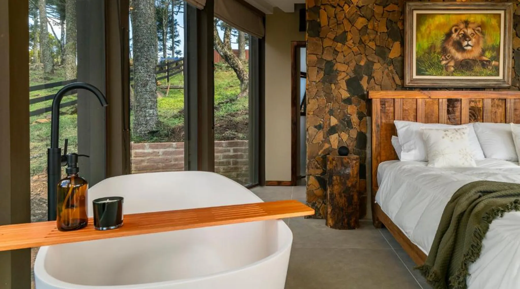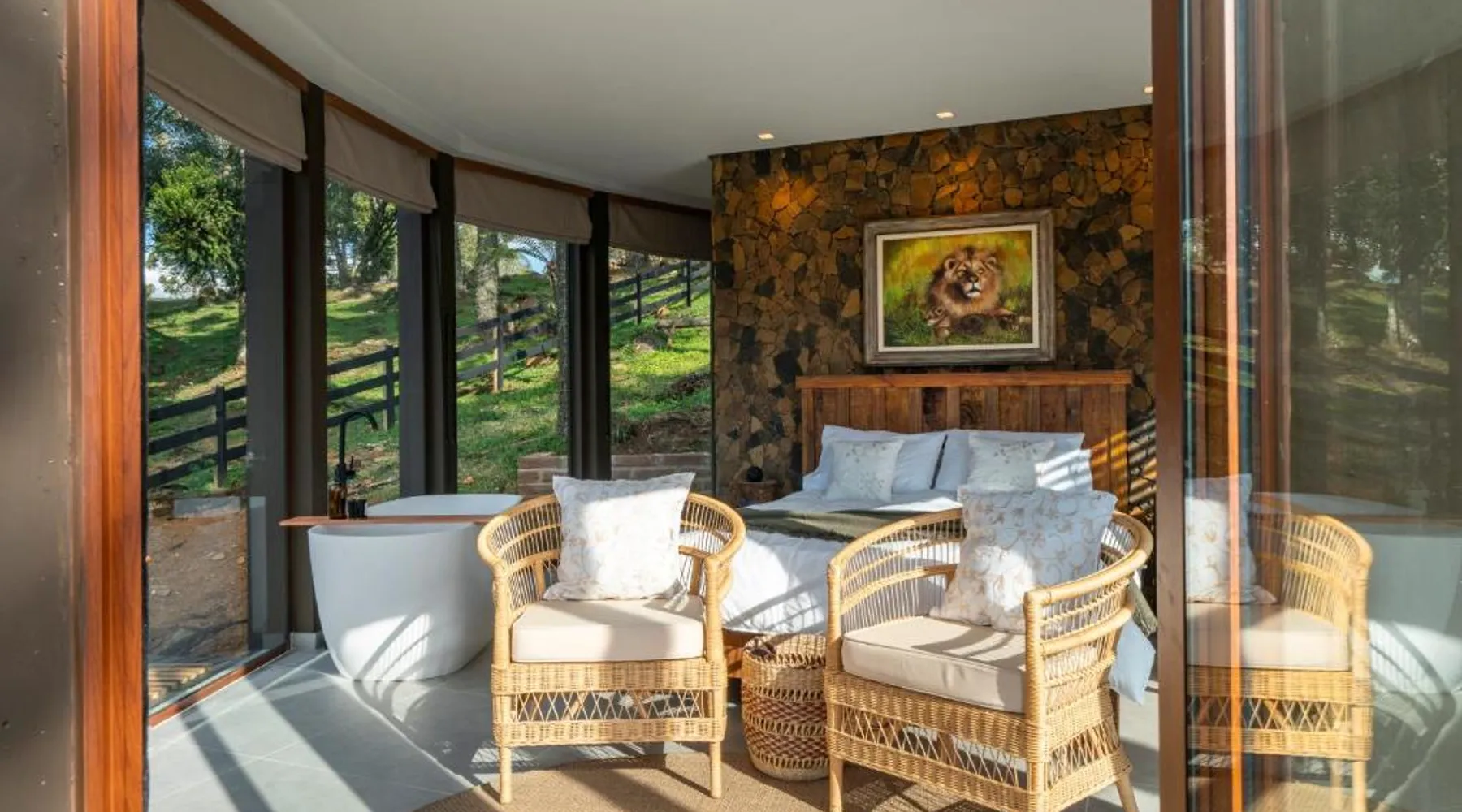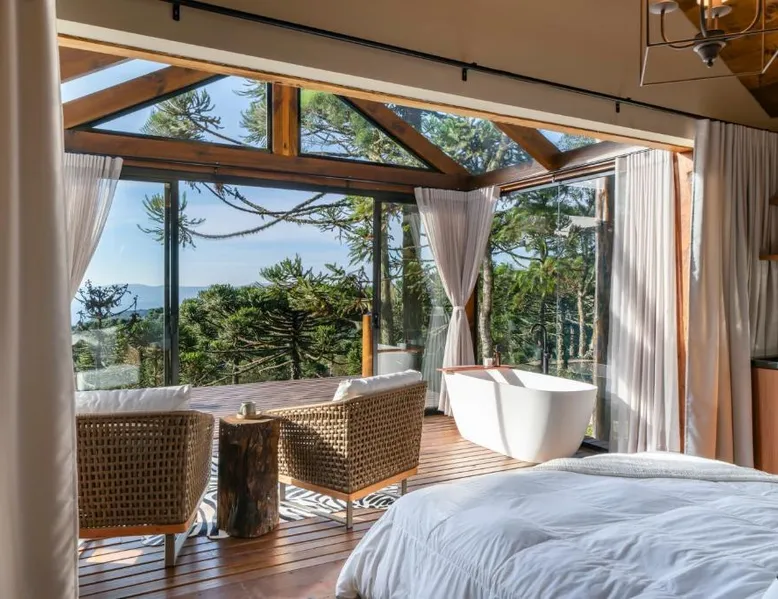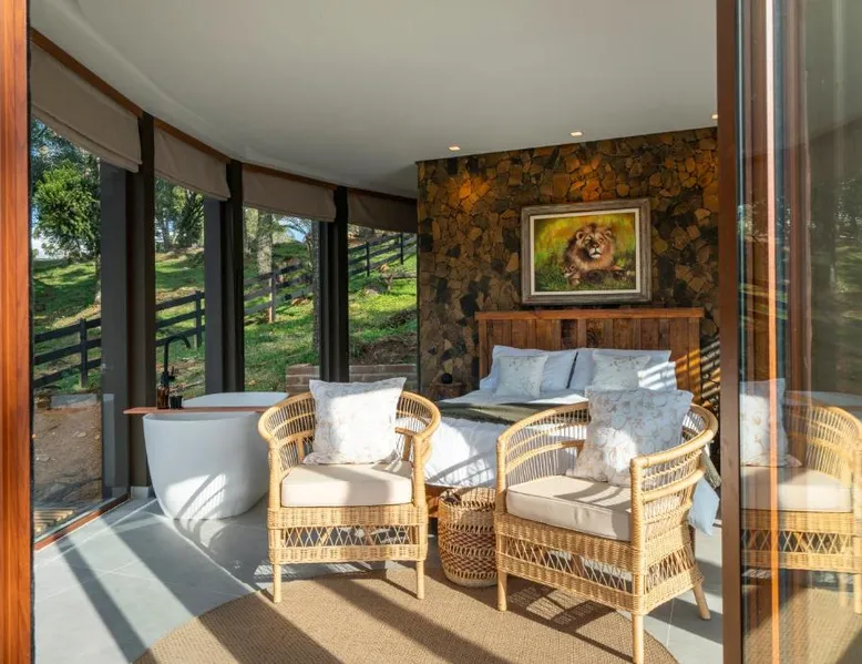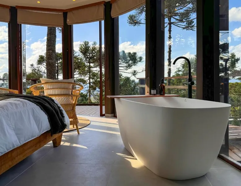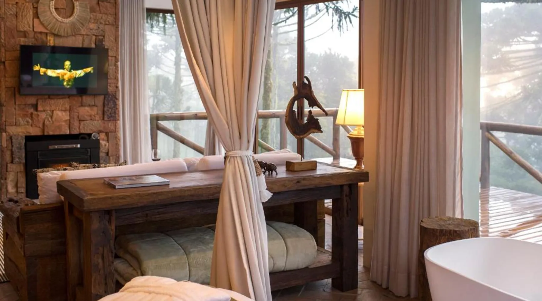 Comfortable Accommodations: Bulawayo Lodge in Urubici offers comfortable bed and breakfast accommodations with air-conditioning, balconies, and private bathrooms. Each room features a dining area, TV, and free WiFi. Relaxing Facilities: Guests can enjoy a beautiful garden and terrace with mountain views. The property provides free on-site private parking and breakfast in the room, served à la carte. Convenient Location: Located 86 mi from Planalto Serrano Regional Airport, the lodge offers easy access to local attractions. Reception staff speak English and Portuguese. The spacious double room features air conditioning, a tea and coffee maker, a terrace with garden views as well as a private bathroom boasting a bath. The unit has 1 bed.