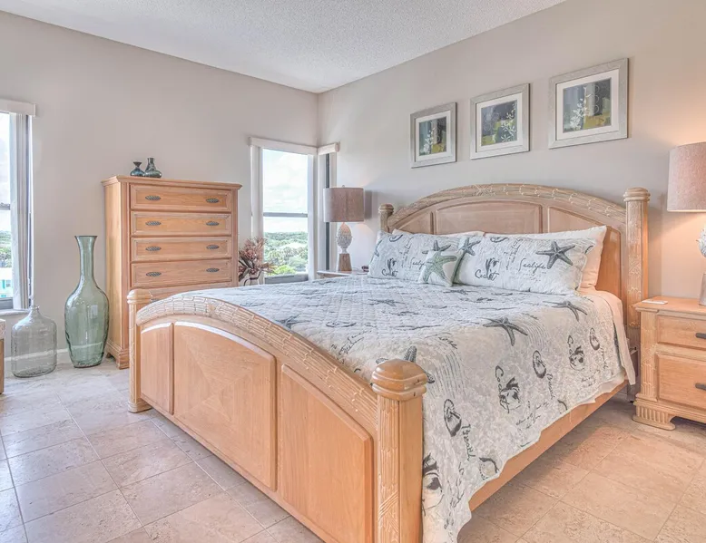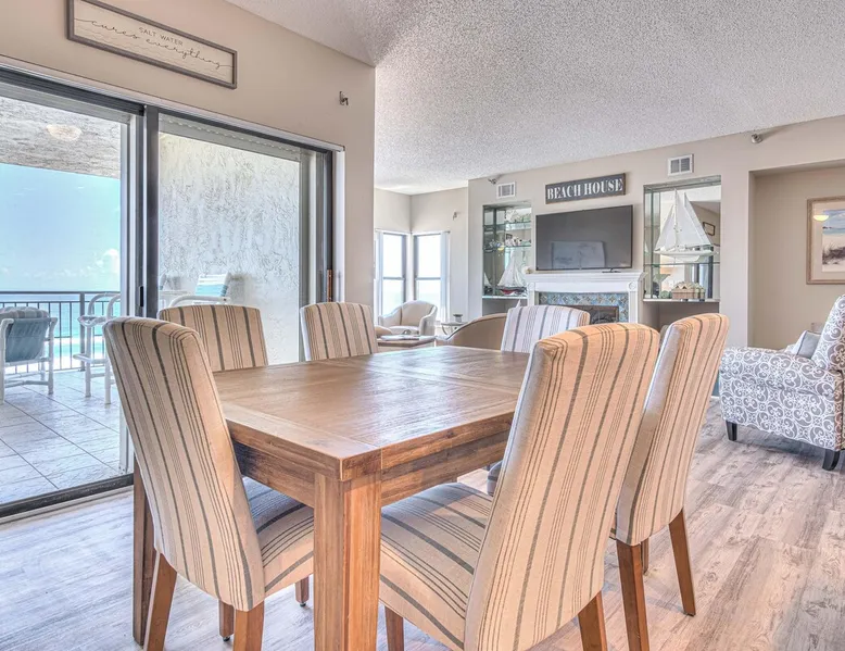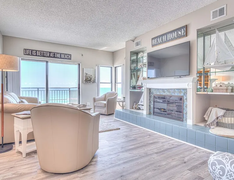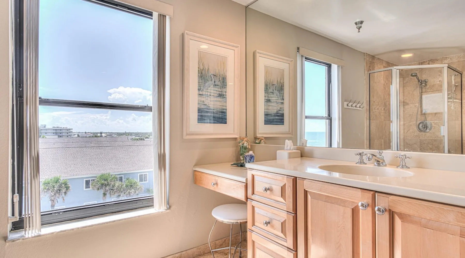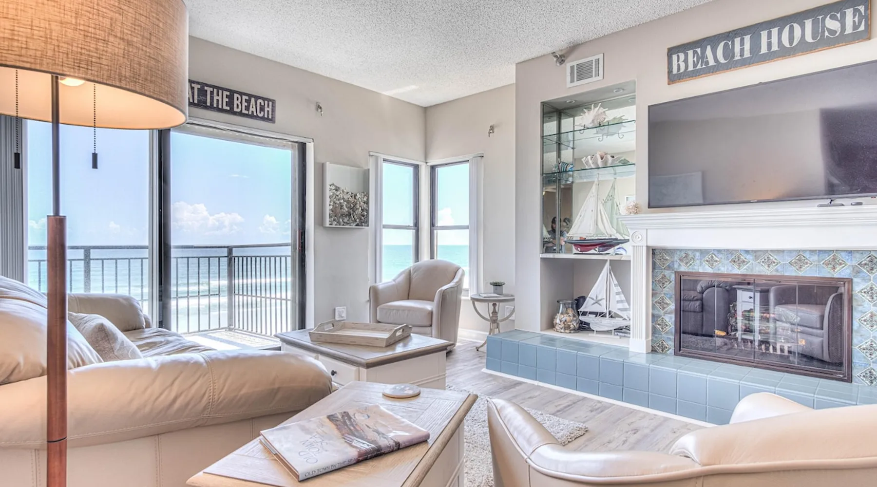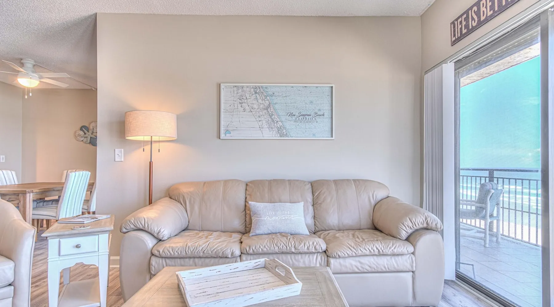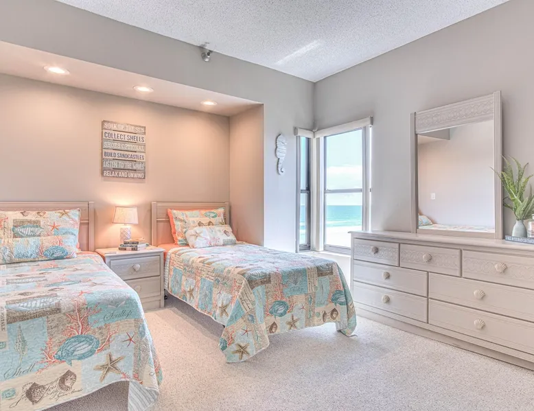 Seafire 5B - 2 bedroom 2 bath oceanfront paradise The space Welcome to your oceanfront retreat! This elegant 2-bedroom, 2-bath condo is located right on the beach, providing stunning panoramic views of the Atlantic Ocean from both the living room and kitchen. As a highly sought-after corner unit, it features a generously sized master suite with a king-size bed, ensuite bath with a walk-in shower, and a vanity area—your own personal retreat. The second bedroom, complete with two single beds, is ideal for accommodating additional guests. The second bathroom, also with a walk-in shower, is conveniently accessible from both the second bedroom and the hallway. The modern, fully equipped kitchen includes custom cabinetry and brand-new appliances—stove, oven, microwave, refrigerator, and dishwasher—giving you everything you need to whip up home-cooked meals. The dining area comfortably seats eight, creating the perfect setting for enjoying meals with loved ones while gazing out at the endless ocean. Every corner of this coastal haven radiates a peaceful, tropical ambiance, with sweeping ocean views enhancing the experience. An in unit laundry room adds extra convenience for longer stays, making this condo feel like a true home away from home. For your enjoyment, the unit comes stocked with beach towels and chairs, so you’re ready to hit the beach the moment you arrive. With every detail carefully curated for comfort and relaxation, this oceanfront escape is the perfect destination for a serene retreat or an unforgettable beach vacation with family and friends. Seafire is an intimate and private condo community that offers the perfect blend of serene beachfront relaxation with easy access to the best dining and shopping that New Smyrna Beach has to offer, all just a short walk away. Located directly on the oceanfront, providing stunning, panoramic views of the Atlantic Ocean and the pristine white sands. You can enjoy the scenery from the oceanfront pool. With gated security, you and your guests can unwind in peace, knowing your privacy and safety are a top priority. Please note: Seafire Condominiums is a small community of just 16 residences. To ensure a peaceful environment for all, parties are not permitted, occupancy is limited to registered guests only (including pool use), and residents and visitors are asked to observe quiet hours and follow the Turtle Code.