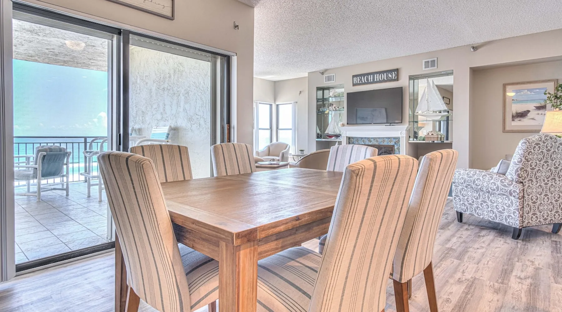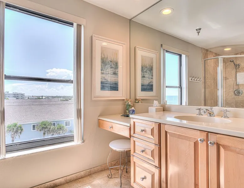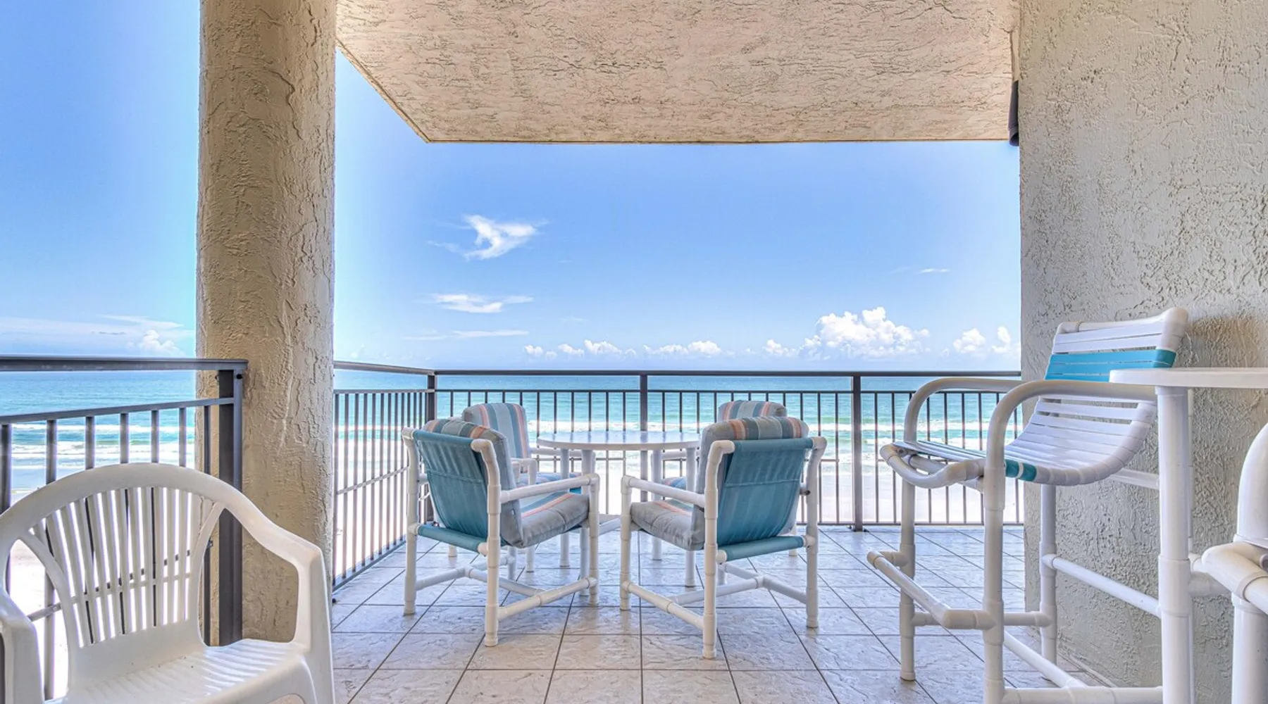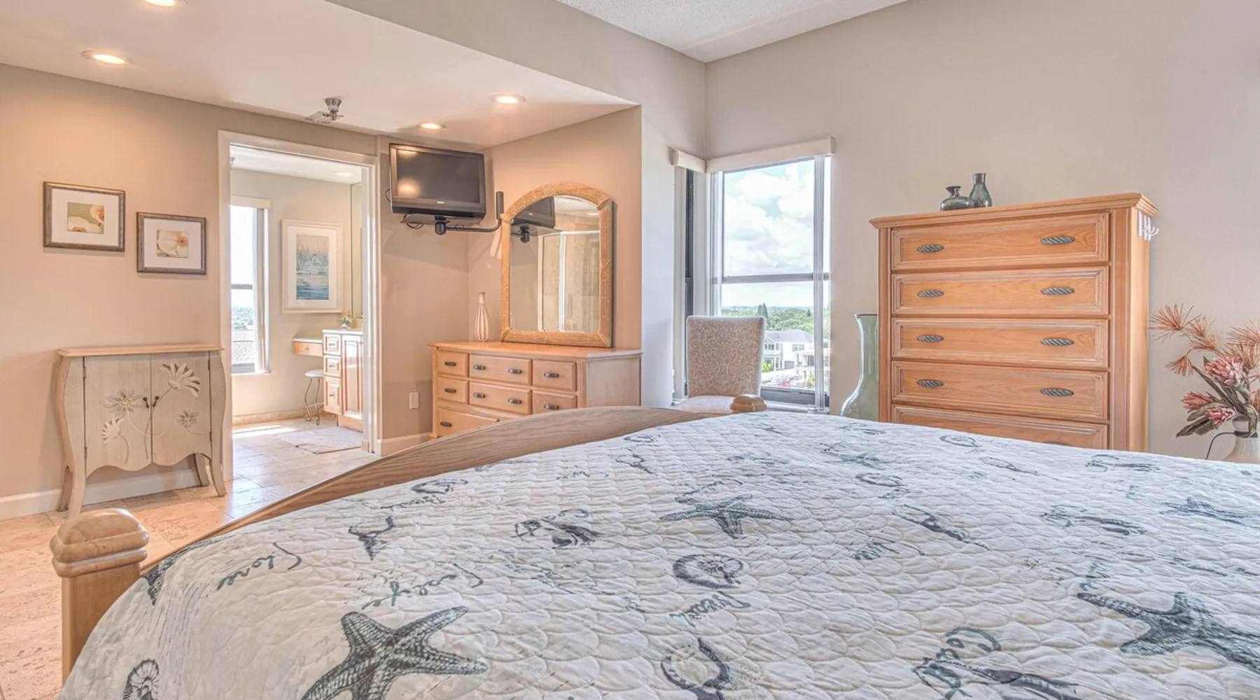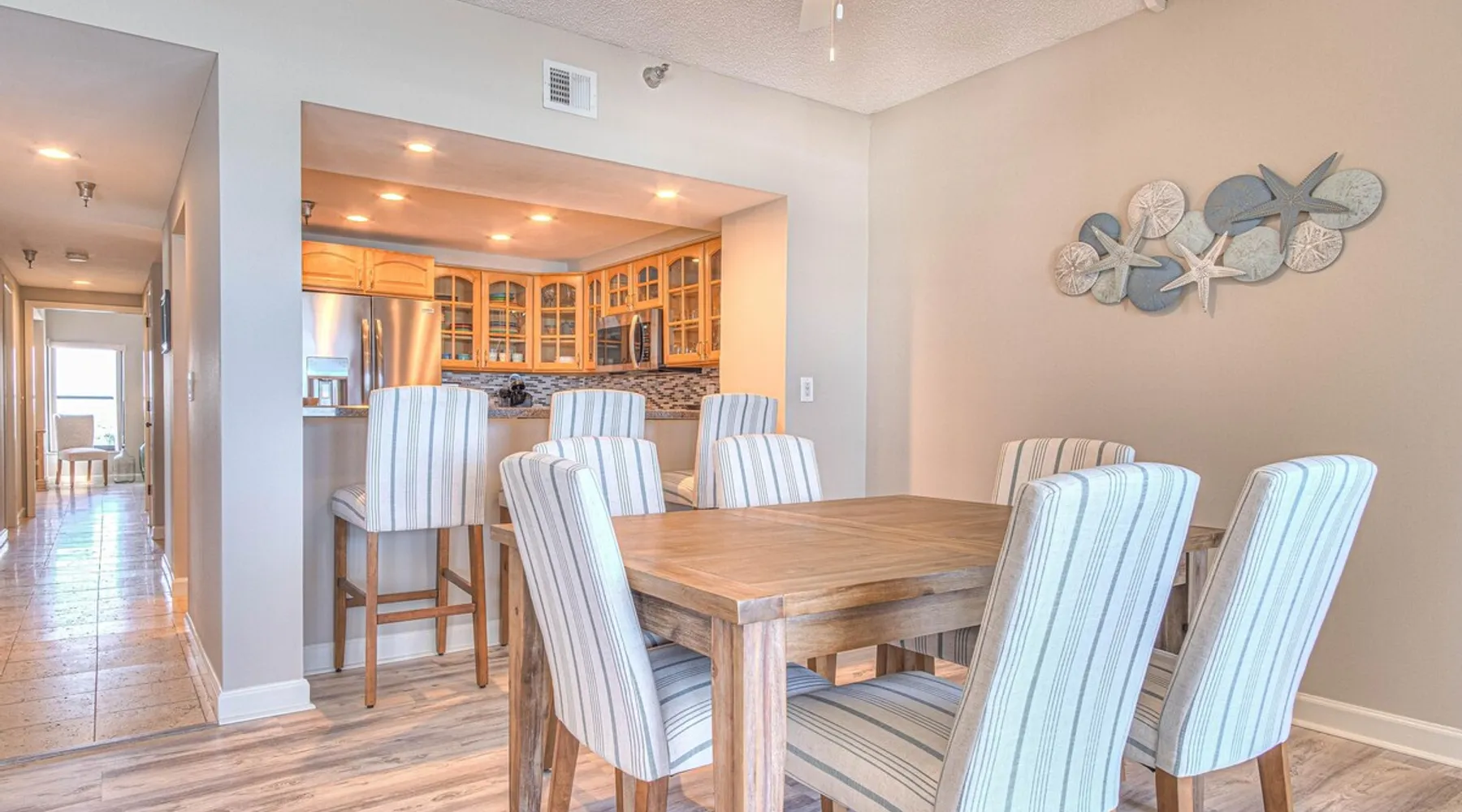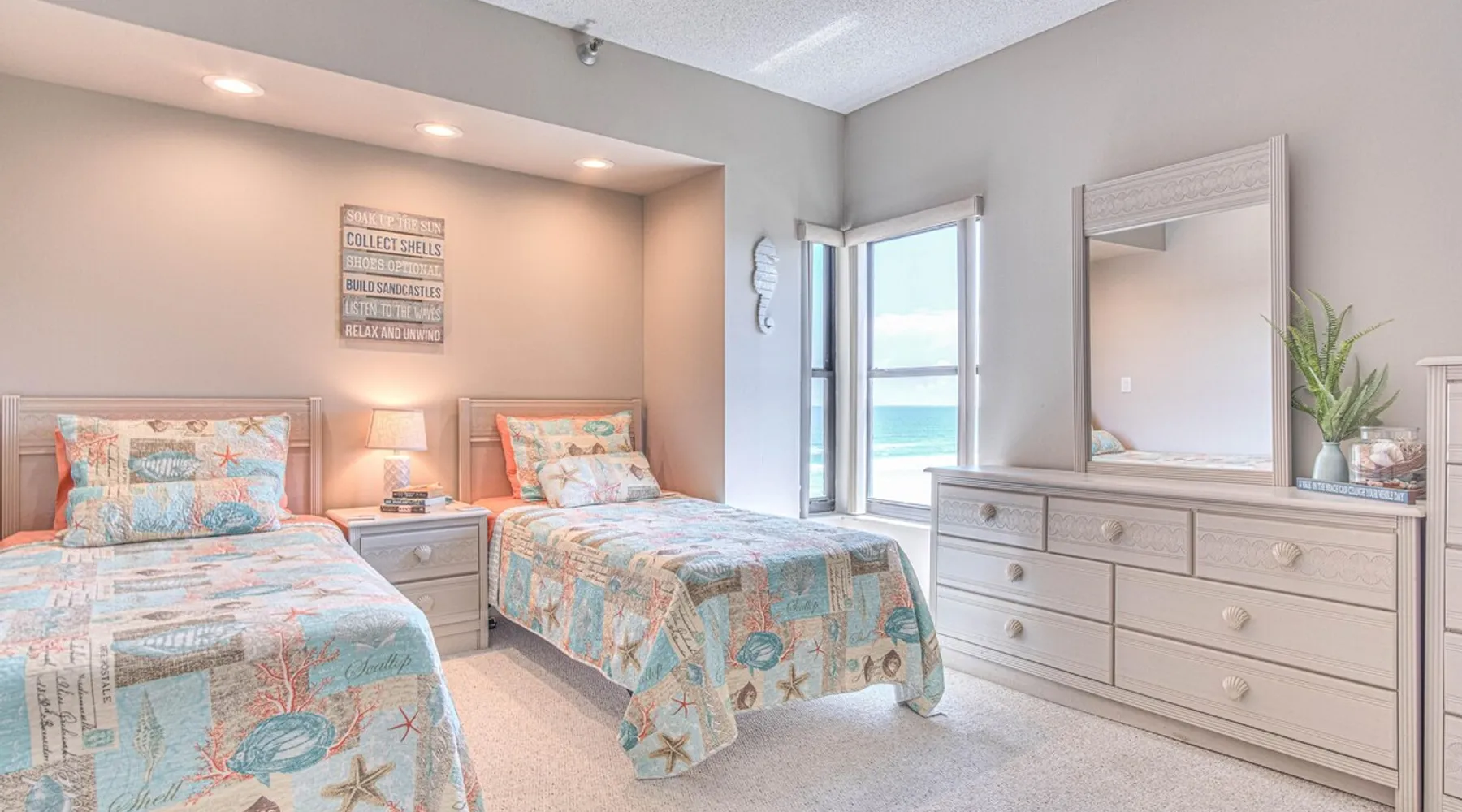 Seafire 5B - 2 bedroom 2 bath oceanfront paradise The space Welcome to your oceanfront retreat! This elegant 2-bedroom, 2-bath condo is located right on the beach, providing stunning panoramic views of the Atlantic Ocean from both the living room and kitchen. As a highly sought-after corner unit, it features a generously sized master suite with a king-size bed, ensuite bath with a walk-in shower, and a vanity area—your own personal retreat. The second bedroom, complete with two single beds, is ideal for accommodating additional guests. The second bathroom, also with a walk-in shower, is conveniently accessible from both the second bedroom and the hallway. The modern, fully equipped kitchen includes custom cabinetry and brand-new appliances—stove, oven, microwave, refrigerator, and dishwasher—giving you everything you need to whip up home-cooked meals. The dining area comfortably seats eight, creating the perfect setting for enjoying meals with loved ones while gazing out at the endless ocean. Every corner of this coastal haven radiates a peaceful, tropical ambiance, with sweeping ocean views enhancing the experience. An in unit laundry room adds extra convenience for longer stays, making this condo feel like a true home away from home. For your enjoyment, the unit comes stocked with beach towels and chairs, so you’re ready to hit the beach the moment you arrive. With every detail carefully curated for comfort and relaxation, this oceanfront escape is the perfect destination for a serene retreat or an unforgettable beach vacation with family and friends. Seafire is an intimate and private condo community that offers the perfect blend of serene beachfront relaxation with easy access to the best dining and shopping that New Smyrna Beach has to offer, all just a short walk away. Located directly on the oceanfront, providing stunning, panoramic views of the Atlantic Ocean and the pristine white sands. You can enjoy the scenery from the oceanfront pool. With gated security, you and your guests can unwind in peace, knowing your privacy and safety are a top priority. Please note: Seafire Condominiums is a small community of just 16 residences. To ensure a peaceful environment for all, parties are not permitted, occupancy is limited to registered guests only (including pool use), and residents and visitors are asked to observe quiet hours and follow the Turtle Code.
