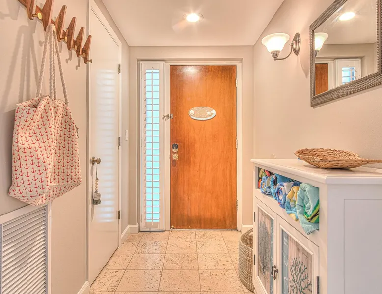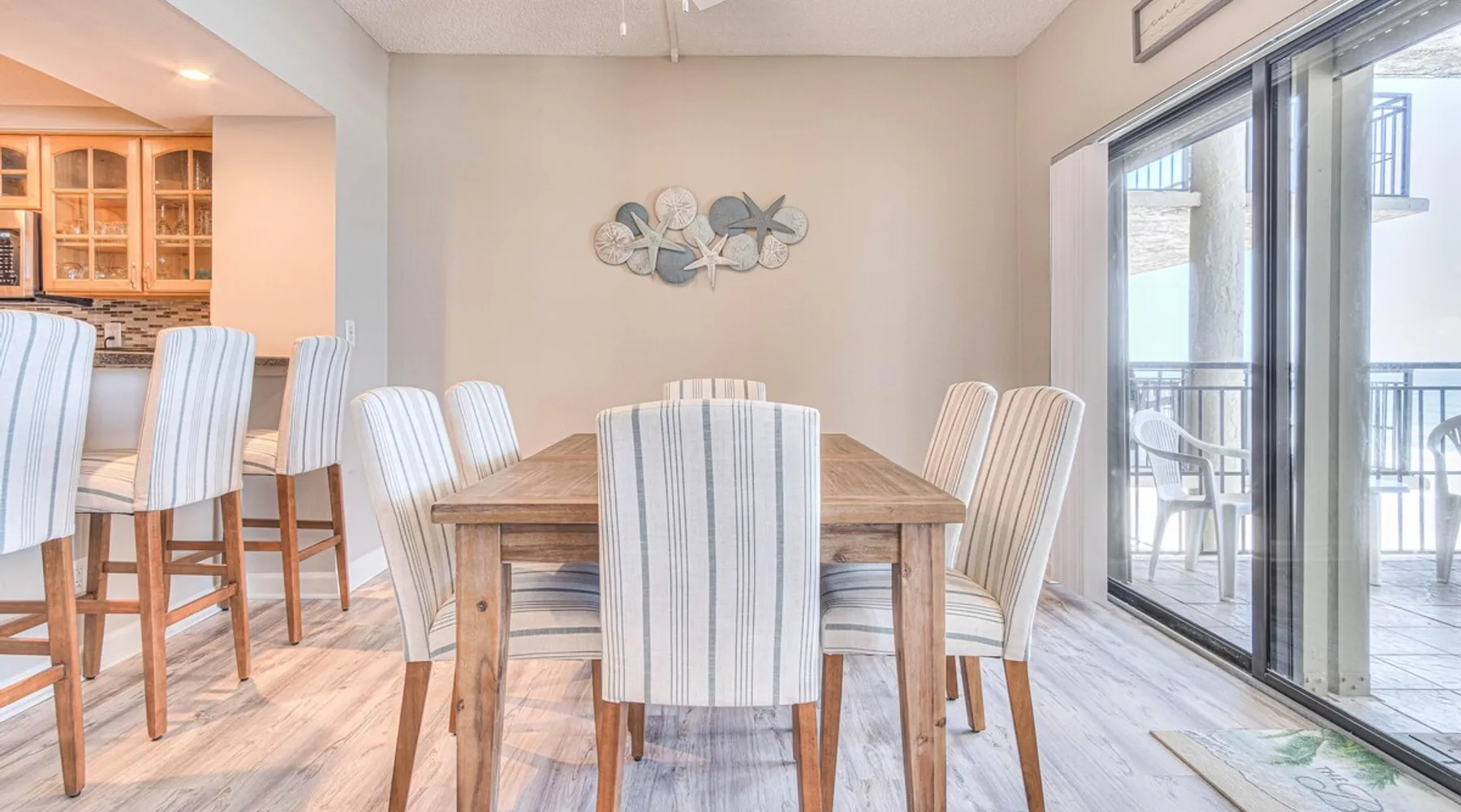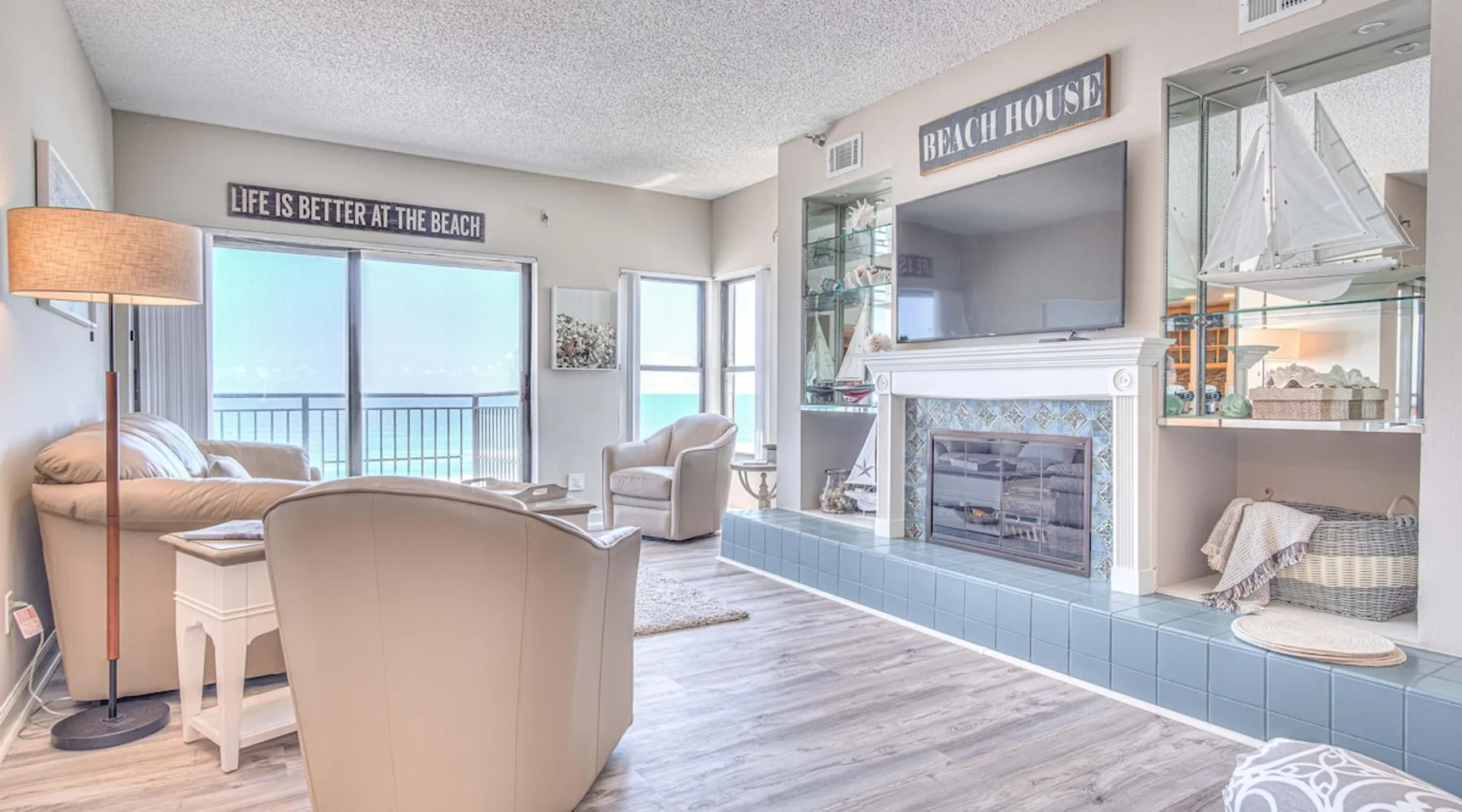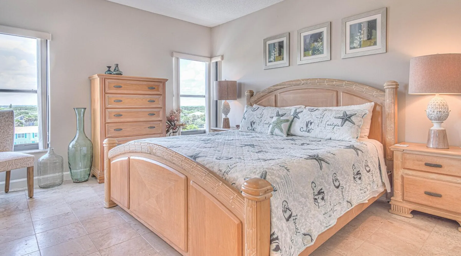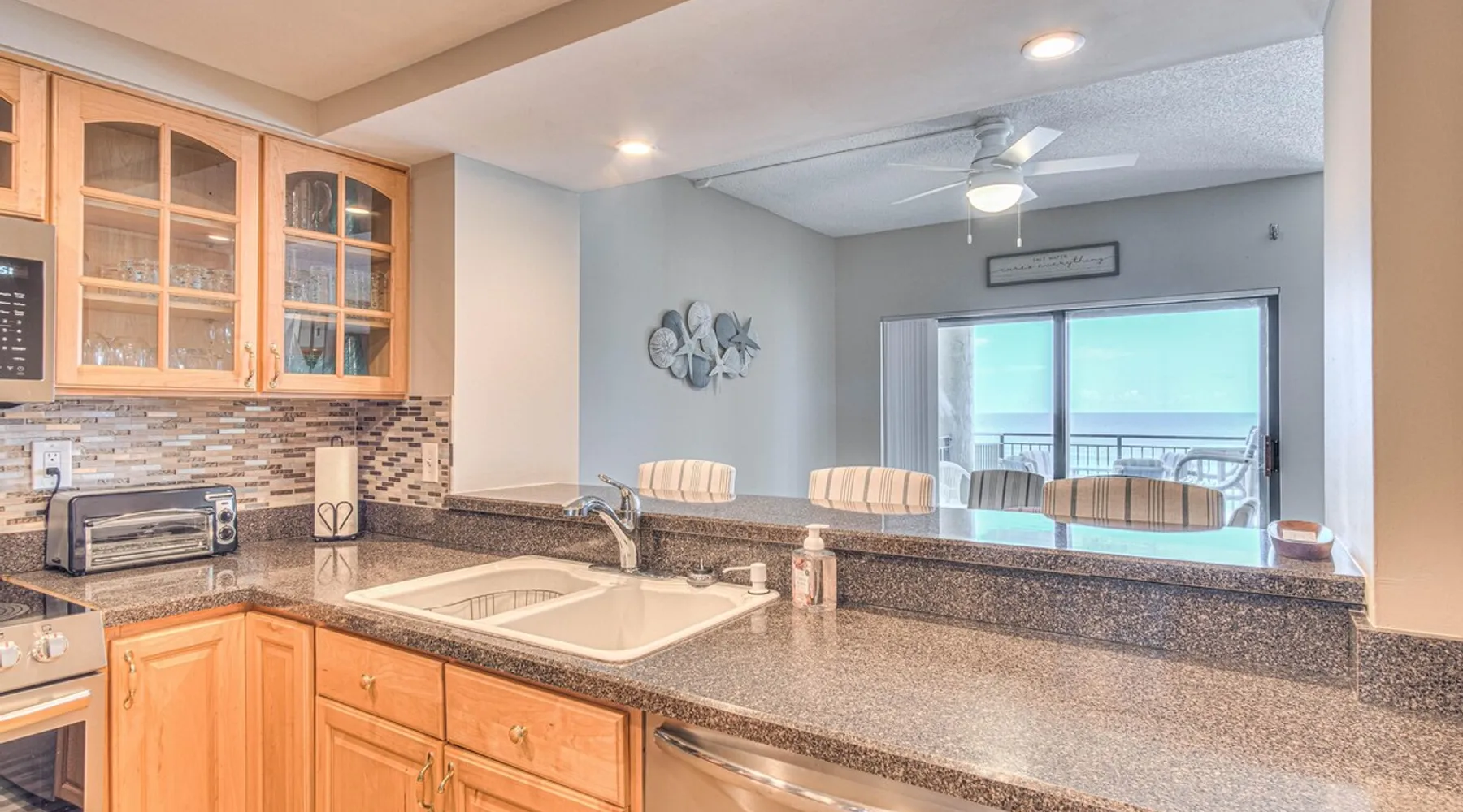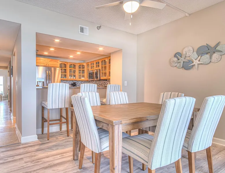 Seafire 5B - 2 bedroom 2 bath oceanfront paradise The space Welcome to your oceanfront retreat! This elegant 2-bedroom, 2-bath condo is located right on the beach, providing stunning panoramic views of the Atlantic Ocean from both the living room and kitchen. As a highly sought-after corner unit, it features a generously sized master suite with a king-size bed, ensuite bath with a walk-in shower, and a vanity area—your own personal retreat. The second bedroom, complete with two single beds, is ideal for accommodating additional guests. The second bathroom, also with a walk-in shower, is conveniently accessible from both the second bedroom and the hallway. The modern, fully equipped kitchen includes custom cabinetry and brand-new appliances—stove, oven, microwave, refrigerator, and dishwasher—giving you everything you need to whip up home-cooked meals. The dining area comfortably seats eight, creating the perfect setting for enjoying meals with loved ones while gazing out at the endless ocean. Every corner of this coastal haven radiates a peaceful, tropical ambiance, with sweeping ocean views enhancing the experience. An in unit laundry room adds extra convenience for longer stays, making this condo feel like a true home away from home. For your enjoyment, the unit comes stocked with beach towels and chairs, so you’re ready to hit the beach the moment you arrive. With every detail carefully curated for comfort and relaxation, this oceanfront escape is the perfect destination for a serene retreat or an unforgettable beach vacation with family and friends. Seafire is an intimate and private condo community that offers the perfect blend of serene beachfront relaxation with easy access to the best dining and shopping that New Smyrna Beach has to offer, all just a short walk away. Located directly on the oceanfront, providing stunning, panoramic views of the Atlantic Ocean and the pristine white sands. You can enjoy the scenery from the oceanfront pool. With gated security, you and your guests can unwind in peace, knowing your privacy and safety are a top priority. Please note: Seafire Condominiums is a small community of just 16 residences. To ensure a peaceful environment for all, parties are not permitted, occupancy is limited to registered guests only (including pool use), and residents and visitors are asked to observe quiet hours and follow the Turtle Code.
