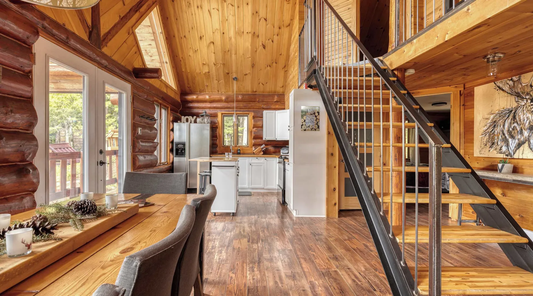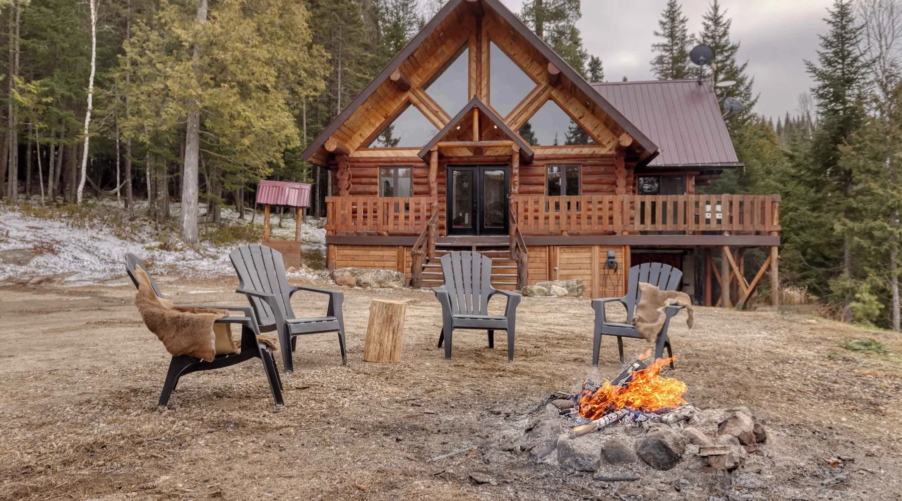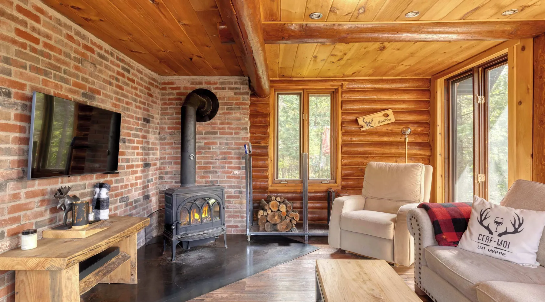 Summary: CITQ : 296366 exp : 2026-01-21 The Bo Bois Rond chalet offers a warm log cabin setting for a nature getaway. It features a second living room with a sofa bed, a wood stove, a spa, and a secret playroom for children. Pets are welcome for an additional fee. Nearby, you can enjoy snowmobile and ATV trails, equipment rentals, a golf course, and local favorites like Microbrasserie du Taureau and Resto Bar Le Central. The Space: The Bo Bois Rond chalet, located in Saint-Michel-des-Saints, is a beautiful log cabin rental that can accommodate up to 12 guests, offering a comfortable and cozy stay in the heart of nature. Ideal for families or groups of friends, it comes with plenty of amenities and facilities. Amenities: • 🔥 Indoor wood stove for a cozy atmosphere • ☕ Tassimo coffee maker for comforting coffee moments • ✨ Outdoor fireplace for pleasant evenings outdoors • 🍲 Blue gas fondue set for festive meals • 🚵 Storage shed for ATVs or snowmobiles to keep your equipment • 🎮 Secret playroom for children with a TV, perfect for games and relaxation • 🛁 Spa to unwind after a day of activities • ❄️ Air conditioning and heating • 📶 High-speed Wi-Fi Layout: • 3 comfortable bedrooms: 2 double beds, 1 queen bed, 1 single bed • Living area with 1 sofa bed • 1 bathroom with shower • Fully equipped kitchen ***Pets are welcome for an additional fee. Guest Access: ✨ Guests have access to the entire chalet, including all indoor rooms, amenities, and outdoor spaces. The property is completely private and reserved exclusively for your group, ensuring a peaceful stay. The Neighborhood: Nearby Activities: • Snowmobile and ATV trails to explore the surrounding landscapes • ATV or snowmobile rentals for trail adventures • Pontoon boat rentals to enjoy nearby lakes • Fishing boat rentals for fishing enthusiasts • Golf course for a relaxing outdoor day • Dog sledding for a unique winter experience • Microbrasserie du Taureau to discover local beers • Resto Bar Le Central for a nearby dining option The Bo Bois Rond chalet offers an idyllic setting for active or relaxing vacations with family or friends in an exceptional natural environment. Getting Around: Nearby Services: • Grocery: IGA Saint-Michel-des-Saints • Convenience store: Dépanneur du village • Pharmacy: Jean Coutu Pharmacy Other Things to Note: • Pets: accepted with conditions • Smoking: not allowed inside the chalet • Events and parties: not permitted • Please respect neighbors and maintain quiet between 10 PM and 7 AM • Firewood for the outdoor fireplace is not provided Interaction with Guests: Dedicated Customer Service by the Chaletô Management Team At Chaletô, we are committed to providing you with an exceptional experience, where customer service is our top priority. Your comfort and satisfaction are essential to us, and we are available to assist you 24/7. Our management team is dedicated to answering all your questions and needs, whether before, during, or after your stay. Whether you need local recommendations, assistance with a special request, or simply advice to enhance your visit, we are here to help at every step. We firmly believe that every detail matters, and we are committed to making your experience at the chalet as memorable as possible. Feel free to reach out to us anytime for any request or concern – your well-being is our utmost priority. Book with confidence and let us take care of the rest. With the Chaletô management team, you’re in good hands!
