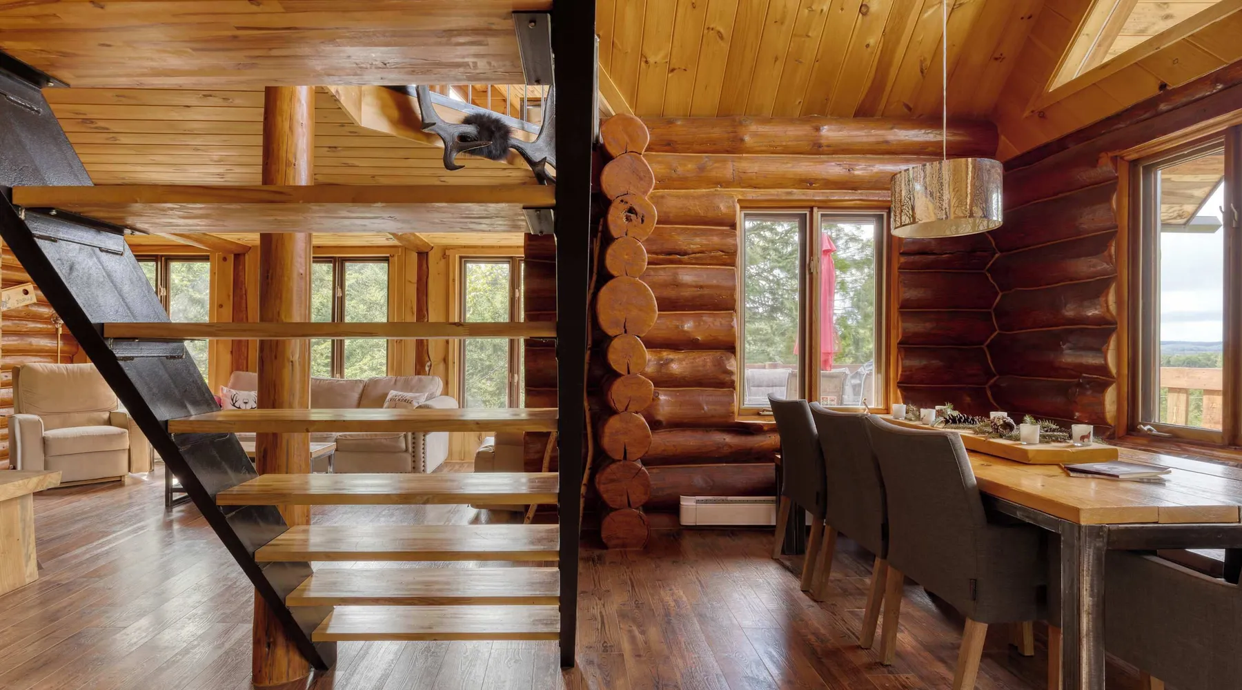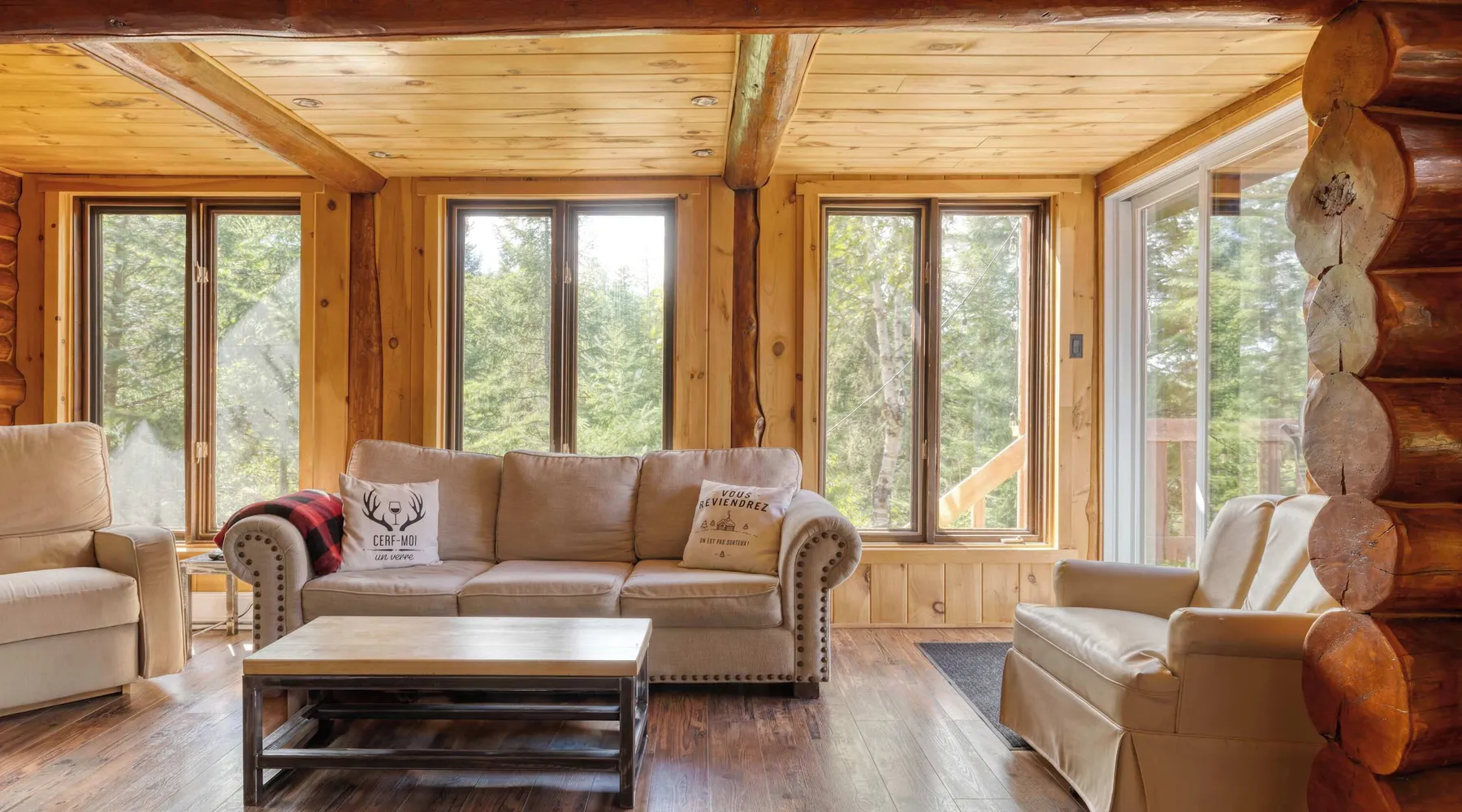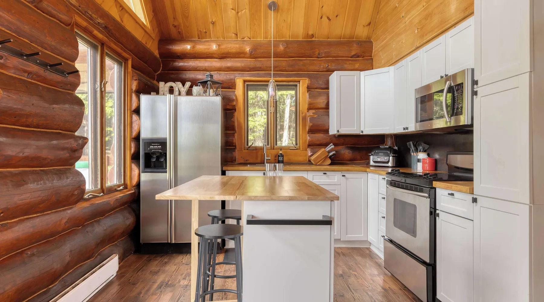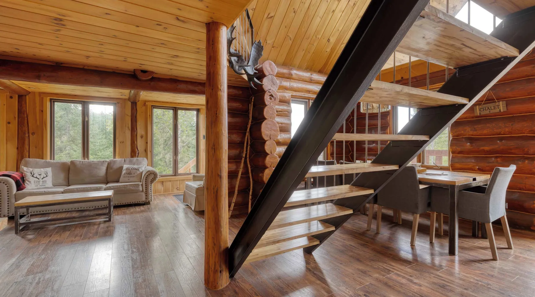 Summary: CITQ : 296366 exp : 2026-01-21 The Bo Bois Rond chalet offers a warm log cabin setting for a nature getaway. It features a second living room with a sofa bed, a wood stove, a spa, and a secret playroom for children. Pets are welcome for an additional fee. Nearby, you can enjoy snowmobile and ATV trails, equipment rentals, a golf course, and local favorites like Microbrasserie du Taureau and Resto Bar Le Central. The Space: The Bo Bois Rond chalet, located in Saint-Michel-des-Saints, is a beautiful log cabin rental that can accommodate up to 12 guests, offering a comfortable and cozy stay in the heart of nature. Ideal for families or groups of friends, it comes with plenty of amenities and facilities. Amenities: • 🔥 Indoor wood stove for a cozy atmosphere • ☕ Tassimo coffee maker for comforting coffee moments • ✨ Outdoor fireplace for pleasant evenings outdoors • 🍲 Blue gas fondue set for festive meals • 🚵 Storage shed for ATVs or snowmobiles to keep your equipment • 🎮 Secret playroom for children with a TV, perfect for games and relaxation • 🛁 Spa to unwind after a day of activities • ❄️ Air conditioning and heating • 📶 High-speed Wi-Fi Layout: • 3 comfortable bedrooms: 2 double beds, 1 queen bed, 1 single bed • Living area with 1 sofa bed • 1 bathroom with shower • Fully equipped kitchen ***Pets are welcome for an additional fee. Guest Access: ✨ Guests have access to the entire chalet, including all indoor rooms, amenities, and outdoor spaces. The property is completely private and reserved exclusively for your group, ensuring a peaceful stay. The Neighborhood: Nearby Activities: • Snowmobile and ATV trails to explore the surrounding landscapes • ATV or snowmobile rentals for trail adventures • Pontoon boat rentals to enjoy nearby lakes • Fishing boat rentals for fishing enthusiasts • Golf course for a relaxing outdoor day • Dog sledding for a unique winter experience • Microbrasserie du Taureau to discover local beers • Resto Bar Le Central for a nearby dining option The Bo Bois Rond chalet offers an idyllic setting for active or relaxing vacations with family or friends in an exceptional natural environment. Getting Around: Nearby Services: • Grocery: IGA Saint-Michel-des-Saints • Convenience store: Dépanneur du village • Pharmacy: Jean Coutu Pharmacy Other Things to Note: • Pets: accepted with conditions • Smoking: not allowed inside the chalet • Events and parties: not permitted • Please respect neighbors and maintain quiet between 10 PM and 7 AM • Firewood for the outdoor fireplace is not provided Interaction with Guests: Dedicated Customer Service by the Chaletô Management Team At Chaletô, we are committed to providing you with an exceptional experience, where customer service is our top priority. Your comfort and satisfaction are essential to us, and we are available to assist you 24/7. Our management team is dedicated to answering all your questions and needs, whether before, during, or after your stay. Whether you need local recommendations, assistance with a special request, or simply advice to enhance your visit, we are here to help at every step. We firmly believe that every detail matters, and we are committed to making your experience at the chalet as memorable as possible. Feel free to reach out to us anytime for any request or concern – your well-being is our utmost priority. Book with confidence and let us take care of the rest. With the Chaletô management team, you’re in good hands!