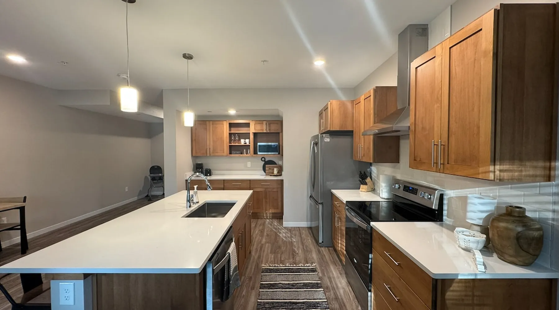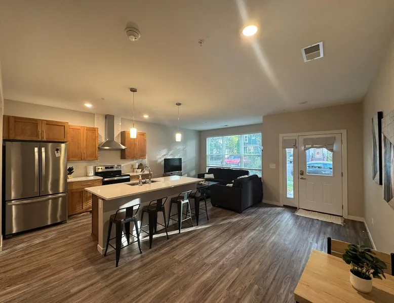 Welcome to Your Home Away from Home in Fargo! Discover the perfect blend of comfort and convenience at our stunning townhouse. Nestled in a prime location near North Dakota State University (NDSU) and downtown Fargo, this modern retreat offers everything you need for an unforgettable stay. The space Property Highlights: Spacious Living: This beautiful townhouse boasts 3 bedrooms and 3 bathrooms, providing ample space for families, friends, or business travelers. The open-concept main floor features a large kitchen with custom cabinets and stone countertops, perfect for cooking and entertaining. Modern Amenities: Enjoy the convenience of in-unit laundry, central air conditioning, and forced air heating. The property also includes a heated, attached garage, ensuring your vehicle stays warm during Fargo s chilly winters. Comfortable Bedrooms: All three bedrooms are located on the second floor, offering privacy and tranquility. The master bedroom includes an en-suite bathroom, while the other two bedrooms share a well-appointed bathroom. Relaxation and Recreation: The second floor also features a lounge/office/family room area, ideal for unwinding after a day of exploring Fargo. Whether you are catching up on work or enjoying a movie night, this space is designed for your comfort. Pet-Friendly: We welcome some pets! Pets are subject to the owner s approval and additional fees may apply. Please inquire with the age, weight, and breed of your pet and we will let you know if approved, and the additional fees that may apply. If your pet is approved, it can not be left unattended in the unit. Location, Location, Location: Proximity to NDSU: Just a short walk from North Dakota State University, our townhouse is perfect for visiting families, alumni, or anyone attending events at the university. Downtown Fargo: Explore the vibrant downtown area, filled with unique shops, delicious restaurants, and exciting entertainment options. From local breweries to cultural attractions, there s something for everyone. Outdoor Activities: Fargo offers a variety of outdoor activities, from parks and trails to golf courses and more. Enjoy a leisurely stroll along the Red River or take a day trip to nearby attractions. Why Choose Us? Exceptional Comfort: Our townhouse is designed with your comfort in mind, featuring modern amenities and stylish decor. Convenient Location: With easy access to NDSU, downtown Fargo, and major highways, you'll be perfectly situated to explore all that Fargo has to offer. Affordable Luxury: Experience the best of Fargo without breaking the bank. Our competitive rates and top-notch amenities make this townhouse an excellent choice for your stay. Book your stay today and experience the perfect blend of comfort, convenience, and style. We look forward to hosting you!