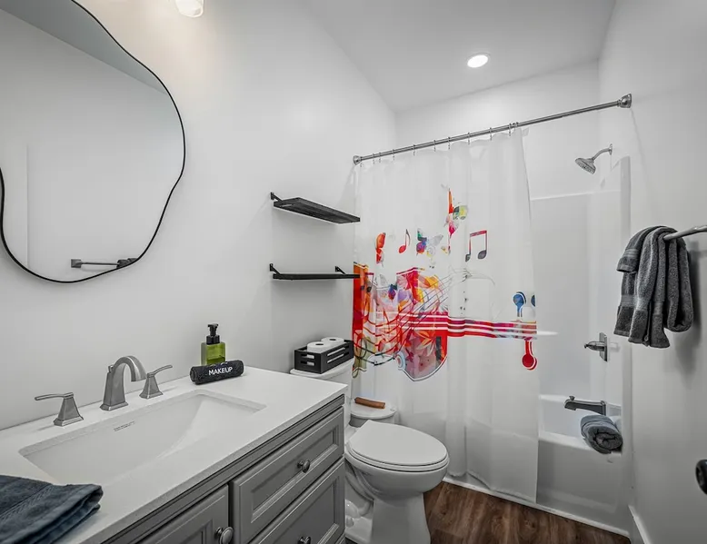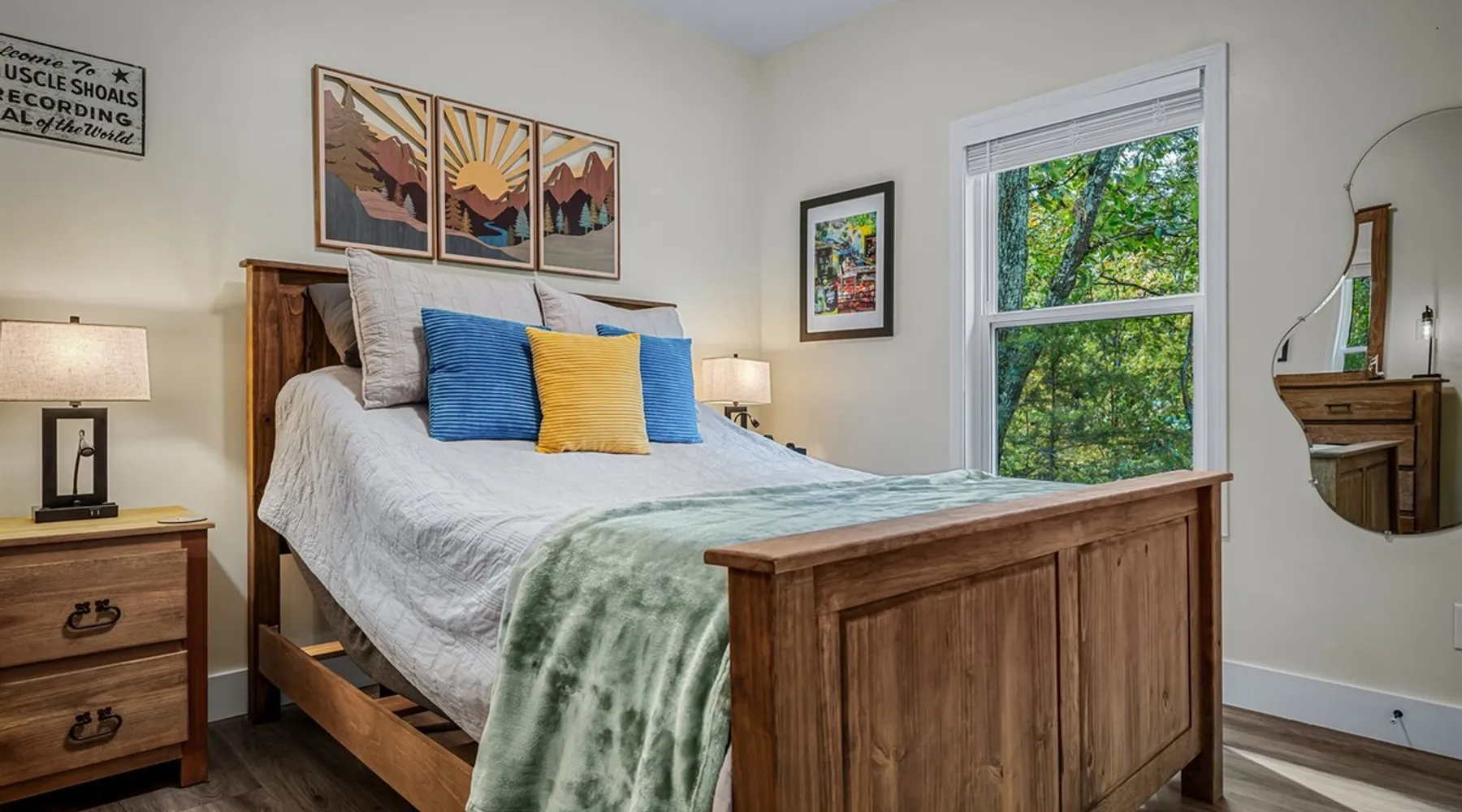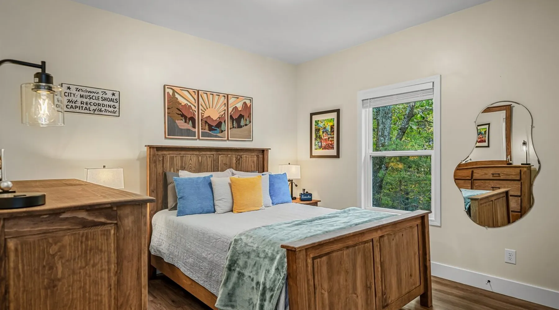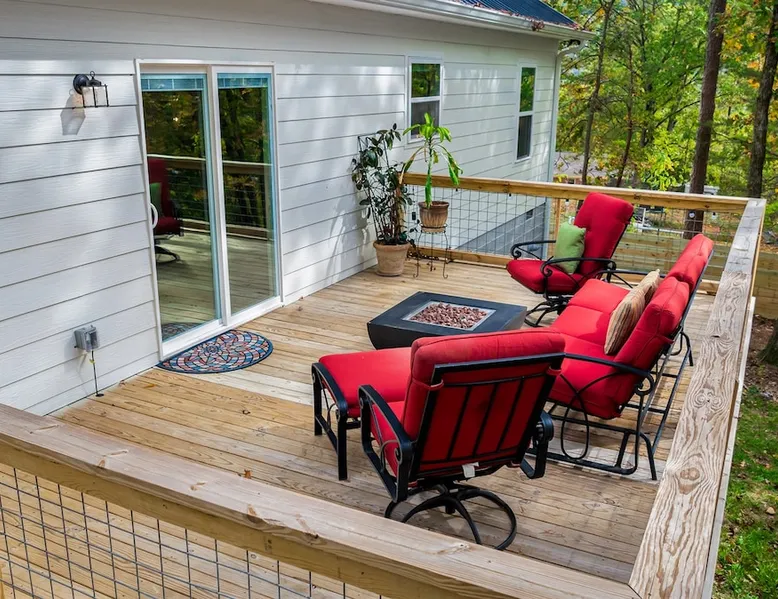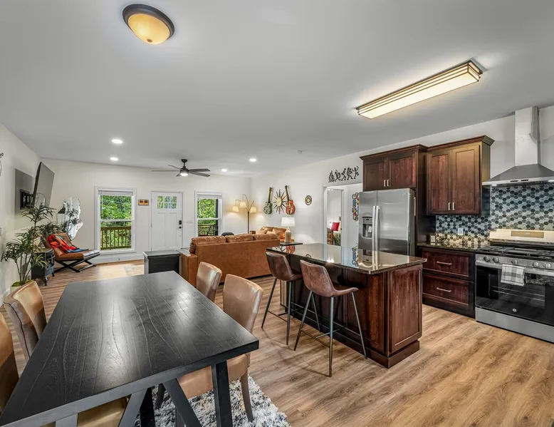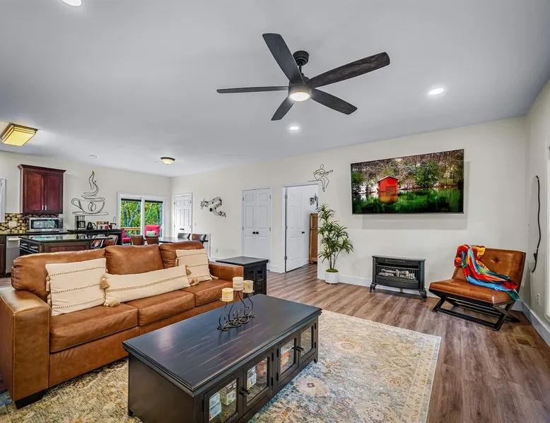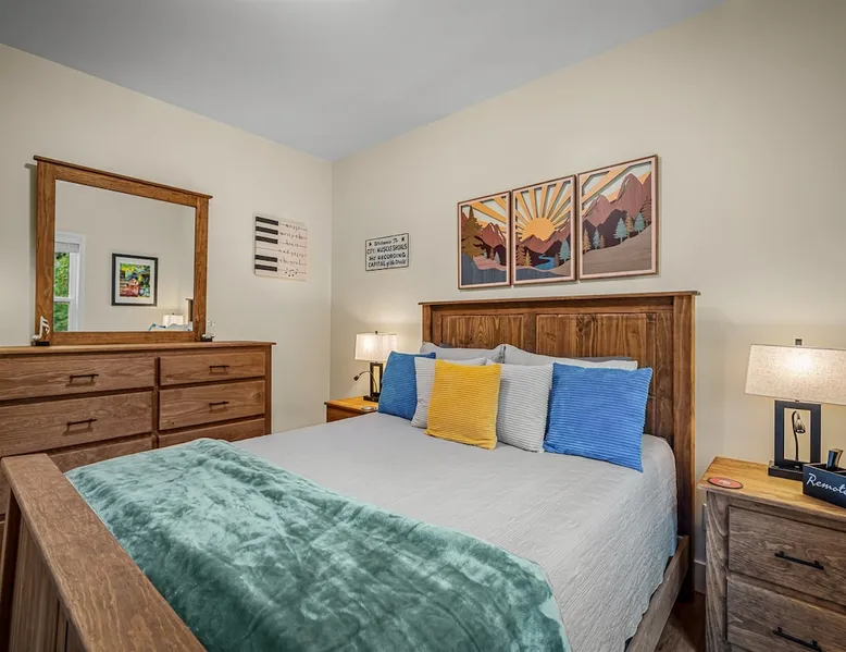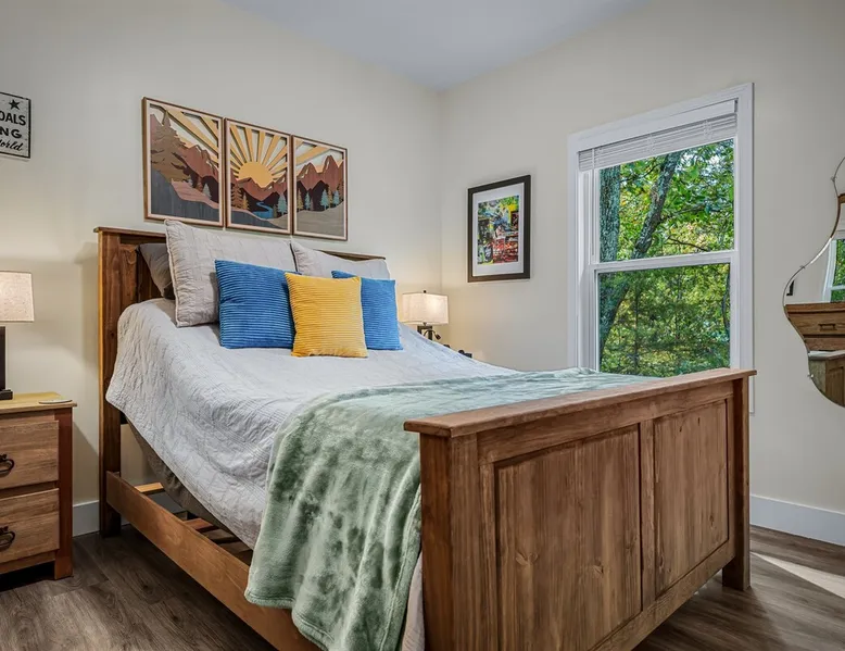 Melody Ridge in Downtown Fort Payne | Fast Wi-Fi | 4 Smart TVs | Office Area | Gas Log Fireplace | Laundry Area | 2 Full Bathrooms | King Suite | Walk-In Shower | Large Soaking Tub | Dog Friendly | Vacation, Corporate and Extended Stays | Hosts up to 6 Guests Escape to the newly-built Melody Ridge in Downtown Fort Payne! Landscaping and an optional no-stairs entrance are coming soon! The space Melody Ridge in Downtown Fort Payne | Fast Wi-Fi | 4 Smart TVs | Office Area | Gas Log Fireplace | Laundry Area | 2 Full Bathrooms | King Suite | Walk-In Shower | Large Soaking Tub | Dog Friendly | Vacation, Corporate and Extended Stays | Hosts up to 6 Guests Escape to the newly-built Melody Ridge in Downtown Fort Payne! Melody Ridge, the retreat property owners’ personal family vacation home, offers a centrally-located peaceful retreat experience with lots of amenities! Explore nearby waterfalls, parks, shops, and restaurants, or just enjoy the peace that this destination retreat property offers guests. Renew, refresh, and be restored! **THE RETREAT PROPERTY** This home is located in Downtown Fort Payne with distant views of nearby Lookout Mountain. There is a private concrete driveway and parking area for 2 vehicles, as well as a space for turning your vehicle around. A privacy fence lines the retreat property on both sides between neighbors, with an open entrance and open, natural views into the back yard and surrounding woods! There are 6 stairs leading to the spacious front porch. This covered porch invites you to relax and take in the fresh mountain air, rain or shine. Step through the front door to the main living area that welcomes you with comfortable lounge seating for 6 guests. Entertainment enthusiasts will appreciate the Fast Wi-Fi and 75" HD Smart TV for streaming your favorite subscribed channels. With corporate guests and remote workspaces in mind, each of the 4 large televisions in this home provide screen-sharing and live-conferencing capabilities. And in this area, it’s very common for opposing football team fans to watch “the big game” in separate locations, so this home is here for it! Also in the living area is a gas log stove fireplace for cool mornings at the mountain :) Directly next to the living area is the dining area and kitchen. The well-equipped kitchen has granite countertops, stainless appliances, dishes, drinking glasses, utensils, pots, pans, and spices for your home-away-from home cooking needs. The homeowners love to travel, and this home has so many extras that they also love to find when they are choosing a vacation rental home. A large kitchen island offers a fantastic preparation and serving area for family meals, and there is indoor dining space for up to 6 with a table and 4 chairs, as well as 2 stools. There is also a coffee station with a 12-cup coffee maker and an electric water kettle for hot teas. Next to the Dining Area, there is a laundry room with a washer and dryer, ironing board available for your convenience, as well as an electric steamer. A significant highlight of this home is the spacious primary bedroom suite. It has a very comfortable king-sized bed with a MLiLY Fusion Luxe/ Hybrid mattress, with a cooling cover and medium/plush feel to help every guest rest well. There is also a large 65" HD Smart TV for movie nights in and even a private remote workspace in the corner with an office desk and chair. Adjoining the primary bedroom is the en-suite primary bathroom, complete with a 2-sink vanity. The customized walk-in shower, large soaking tub and towel warmer offer a spa-like experience for those seeking relaxation after a day of adventures atop Lookout Mountain. Whether you seek a quick revitalizing shower or a long, indulgent soak, this space caters to your every preference. In addition to the primary bedroom suite, there are two additional bedrooms. Each has a comfortable queen bed with a 10” Dreamer, memory foam mattress, closet and dresser storage - as well as a 50" HD Smart TV. Both bedrooms also have bedside tables and lamps with USB charging stations. The third bedroom has views into the backyard area and a remote-controlled adjustable bed frame that even has a massage setting for tired muscles after a day of chasing waterfalls :) *FYI: All of the beds, mattresses and sleeping pillows at Melody Ridge were purchased locally at Beds, Floors and More in Fort Payne. We get asked often by guests because they’re so comfy :) Between the second and third bedroom, there is a second full bathroom with a tub/shower combination, sink, toilet, and towel warmer. Through the sliding glass doors beside the dining area, a spacious back deck awaits you and provides the ideal setting for outdoor gathering and al fresco dining. A gas fire pit is ready for cool nights and gathering with family. WHY GUESTS LOVE THIS PEACEFUL RETREAT PROPERTY: 1) This home has a king bedroom and en-suite bathroom with walk-in shower & soaking tub! 2) It is conveniently located in Downtown Fort Payne! 3) It is very spacious with each bedroom having a large Smart TV for streaming! 4) It has a large front porch and back deck with privacy! 5) Its musical themed decor is in honor of local artists with a nod to the rich musical history of Fort Payne, Muscle Shoals and Mentone! **EXPLORE THE AREA** 1.3 miles - The Spot Coffee Shop 1.3 miles - DeKalb County Courthouse 1.1 miles - Fort Payne’s City Park 1.1 miles - Alabama Walking Trail Park .8 miles - VFW Fairgrounds 2.2 miles - Alabama Fan Club & Museum 8.7 miles - Little River Canyon National Preserve 11 miles - Mentone 8 miles - DeSoto State Park 31 miles - Unclaimed Baggage in Scottsboro, AL 40 miles - Cloudland Canyon State Park, GA 47 miles - Rock City & Ruby Falls 70 miles - Huntsville, AL FREE PARKING: There is free parking in the parking area beside this home for up to 2 vehicles (contact host for more info if additional parking needed) Be sure to check out all of our favorite attractions and dining spots i