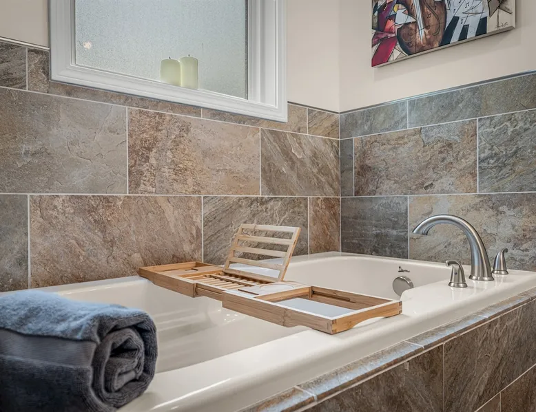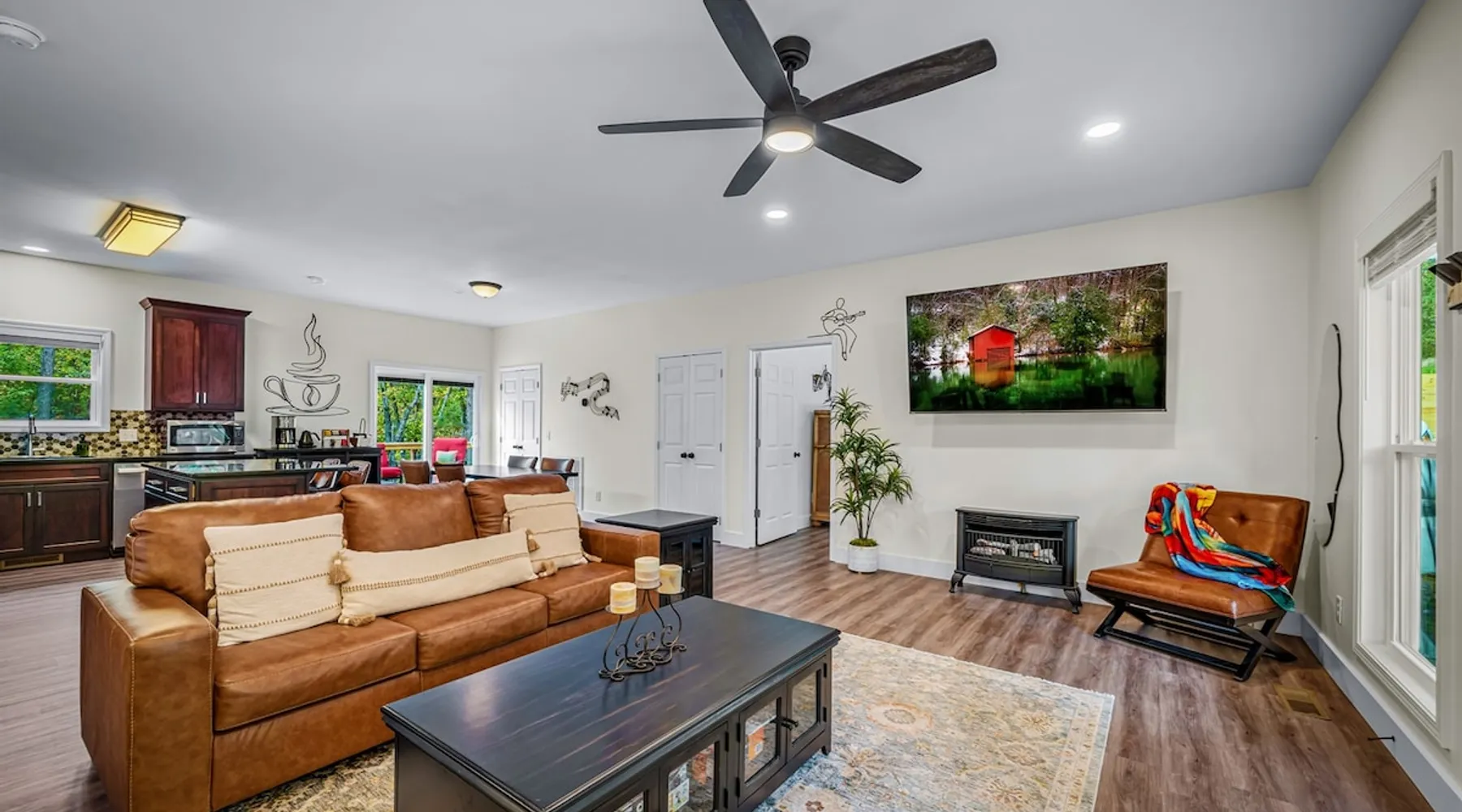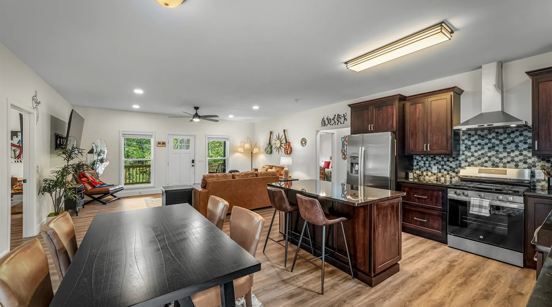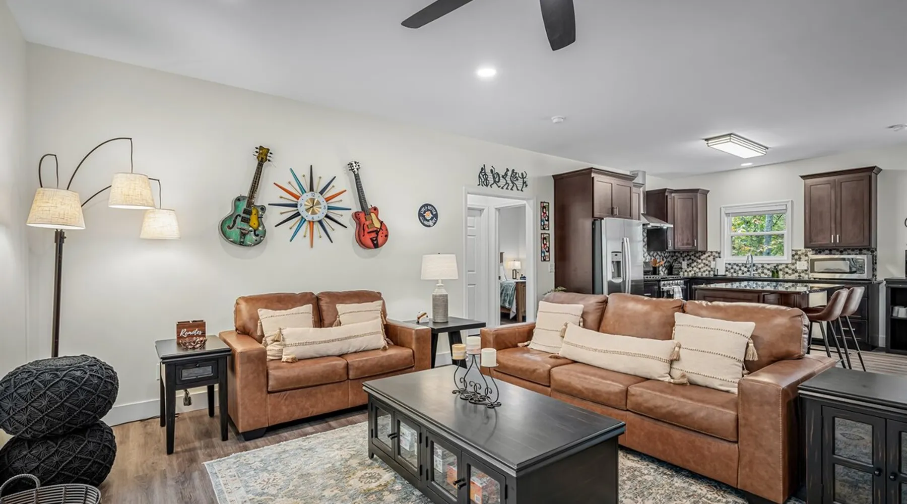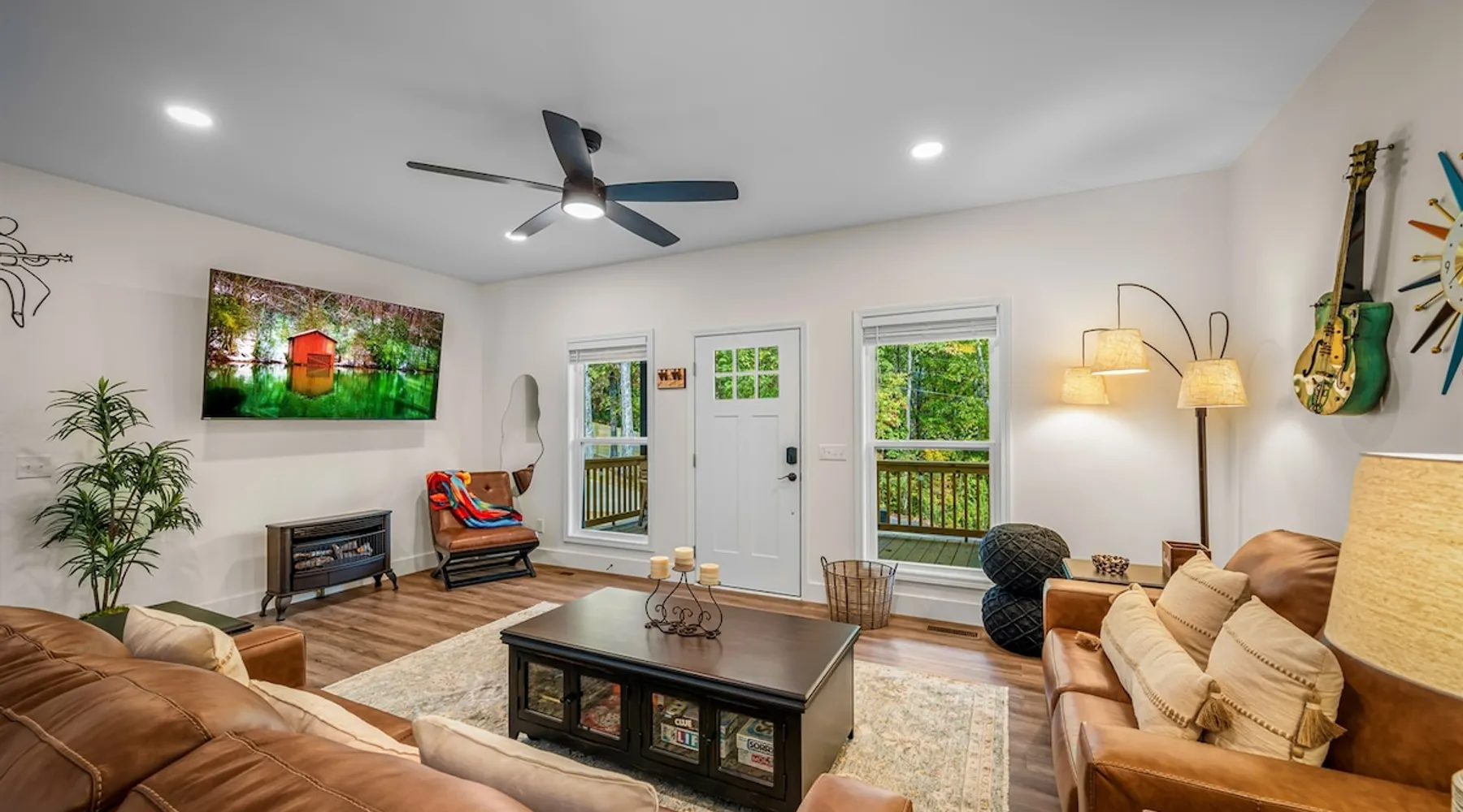Melody Ridge in Downtown Fort Payne | Fast Wi-Fi | 4 Smart TVs | Office Area | Gas Log Fireplace | Laundry Area | 2 Full Bathrooms | King Suite | Walk-In Shower | Large Soaking Tub | Dog Friendly | Vacation, Corporate and Extended Stays | Hosts up to 6 Guests Escape to the newly-built Melody Ridge in Downtown Fort Payne! Landscaping and an optional no-stairs entrance are coming soon! The space Melody Ridge in Downtown Fort Payne | Fast Wi-Fi | 4 Smart TVs | Office Area | Gas Log Fireplace | Laundry Area | 2 Full Bathrooms | King Suite | Walk-In Shower | Large Soaking Tub | Dog Friendly | Vacation, Corporate and Extended Stays | Hosts up to 6 Guests Escape to the newly-built Melody Ridge in Downtown Fort Payne! Melody Ridge, the retreat property owners’ personal family vacation home, offers a centrally-located peaceful retreat experience with lots of amenities! Explore nearby waterfalls, parks, shops, and restaurants, or just enjoy the peace that this destination retreat property offers guests. Renew, refresh, and be restored! **THE RETREAT PROPERTY** This home is located in Downtown Fort Payne with distant views of nearby Lookout Mountain. There is a private concrete driveway and parking area for 2 vehicles, as well as a space for turning your vehicle around. A privacy fence lines the retreat property on both sides between neighbors, with an open entrance and open, natural views into the back yard and surrounding woods! There are 6 stairs leading to the spacious front porch. This covered porch invites you to relax and take in the fresh mountain air, rain or shine. Step through the front door to the main living area that welcomes you with comfortable lounge seating for 6 guests. Entertainment enthusiasts will appreciate the Fast Wi-Fi and 75" HD Smart TV for streaming your favorite subscribed channels. With corporate guests and remote workspaces in mind, each of the 4 large televisions in this home provide screen-sharing and live-conferencing capabilities. And in this area, it’s very common for opposing football team fans to watch “the big game” in separate locations, so this home is here for it! Also in the living area is a gas log stove fireplace for cool mornings at the mountain :) Directly next to the living area is the dining area and kitchen. The well-equipped kitchen has granite countertops, stainless appliances, dishes, drinking glasses, utensils, pots, pans, and spices for your home-away-from home cooking needs. The homeowners love to travel, and this home has so many extras that they also love to find when they are choosing a vacation rental home. A large kitchen island offers a fantastic preparation and serving area for family meals, and there is indoor dining space for up to 6 with a table and 4 chairs, as well as 2 stools. There is also a coffee station with a 12-cup coffee maker and an electric water kettle for hot teas. Next to the Dining Area, there is a laundry room with a washer and dryer, ironing board available for your convenience, as well as an electric steamer. A significant highlight of this home is the spacious primary bedroom suite. It has a very comfortable king-sized bed with a MLiLY Fusion Luxe/ Hybrid mattress, with a cooling cover and medium/plush feel to help every guest rest well. There is also a large 65" HD Smart TV for movie nights in and even a private remote workspace in the corner with an office desk and chair. Adjoining the primary bedroom is the en-suite primary bathroom, complete with a 2-sink vanity. The customized walk-in shower, large soaking tub and towel warmer offer a spa-like experience for those seeking relaxation after a day of adventures atop Lookout Mountain. Whether you seek a quick revitalizing shower or a long, indulgent soak, this space caters to your every preference. In addition to the primary bedroom suite, there are two additional bedrooms. Each has a comfortable queen bed with a 10” Dreamer, memory foam mattress, closet and dresser storage - as well as a 50" HD Smart TV. Both bedrooms also have bedside tables and lamps with USB charging stations. The third bedroom has views into the backyard area and a remote-controlled adjustable bed frame that even has a massage setting for tired muscles after a day of chasing waterfalls :) *FYI: All of the beds, mattresses and sleeping pillows at Melody Ridge were purchased locally at Beds, Floors and More in Fort Payne. We get asked often by guests because they’re so comfy :) Between the second and third bedroom, there is a second full bathroom with a tub/shower combination, sink, toilet, and towel warmer. Through the sliding glass doors beside the dining area, a spacious back deck awaits you and provides the ideal setting for outdoor gathering and al fresco dining. A gas fire pit is ready for cool nights and gathering with family. WHY GUESTS LOVE THIS PEACEFUL RETREAT PROPERTY: 1) This home has a king bedroom and en-suite bathroom with walk-in shower & soaking tub! 2) It is conveniently located in Downtown Fort Payne! 3) It is very spacious with each bedroom having a large Smart TV for streaming! 4) It has a large front porch and back deck with privacy! 5) Its musical themed decor is in honor of local artists with a nod to the rich musical history of Fort Payne, Muscle Shoals and Mentone! **EXPLORE THE AREA** 1.3 miles - The Spot Coffee Shop 1.3 miles - DeKalb County Courthouse 1.1 miles - Fort Payne’s City Park 1.1 miles - Alabama Walking Trail Park .8 miles - VFW Fairgrounds 2.2 miles - Alabama Fan Club & Museum 8.7 miles - Little River Canyon National Preserve 11 miles - Mentone 8 miles - DeSoto State Park 31 miles - Unclaimed Baggage in Scottsboro, AL 40 miles - Cloudland Canyon State Park, GA 47 miles - Rock City & Ruby Falls 70 miles - Huntsville, AL FREE PARKING: There is free parking in the parking area beside this home for up to 2 vehicles (contact host for more info if additional parking needed) Be sure to check out all of our favorite attractions and dining spots i