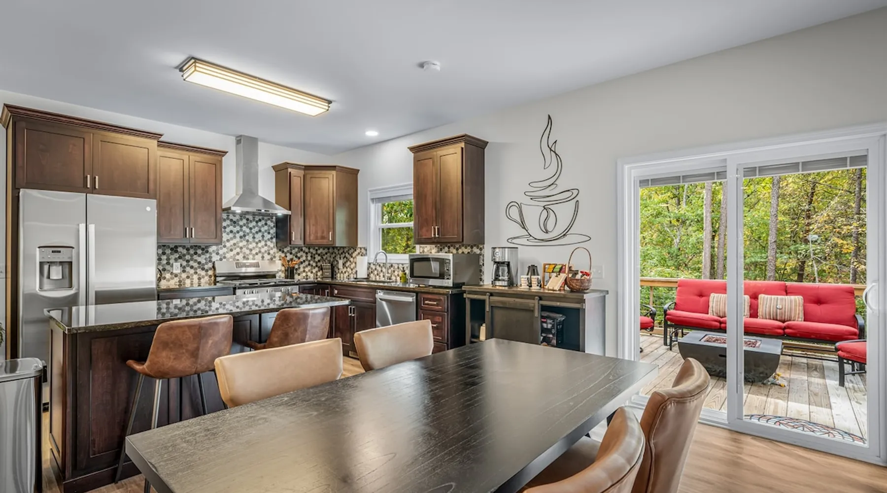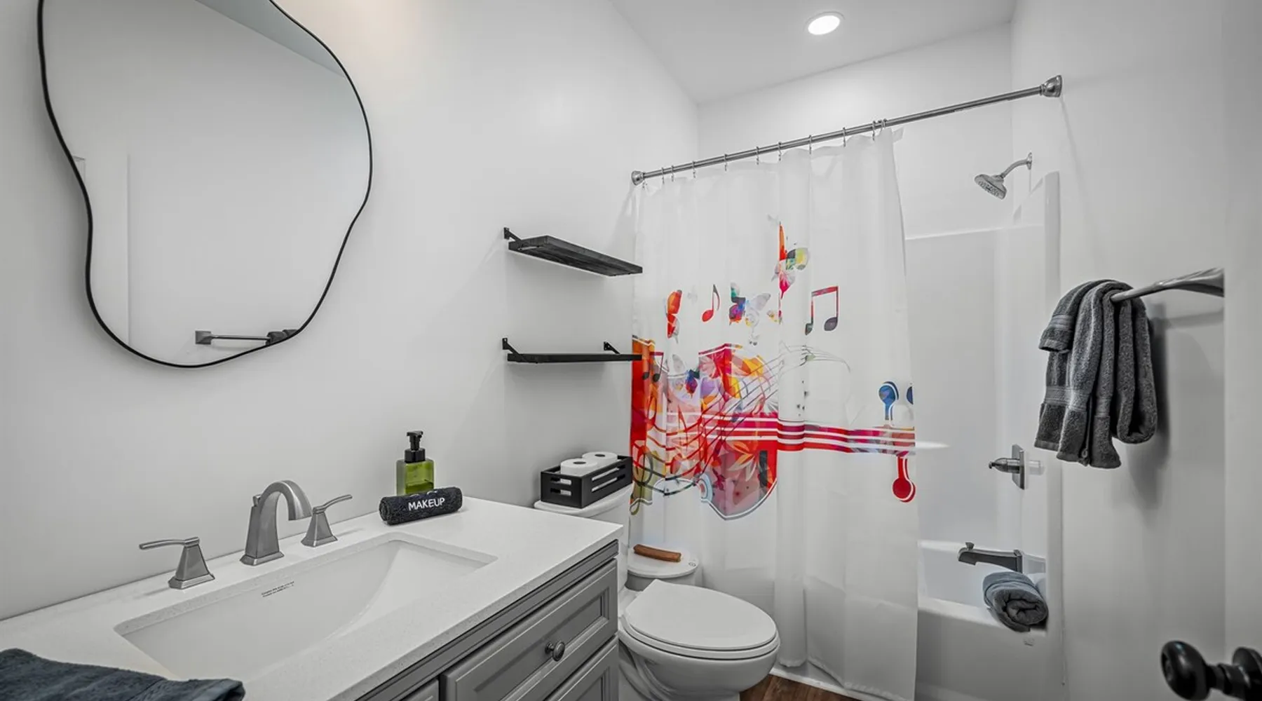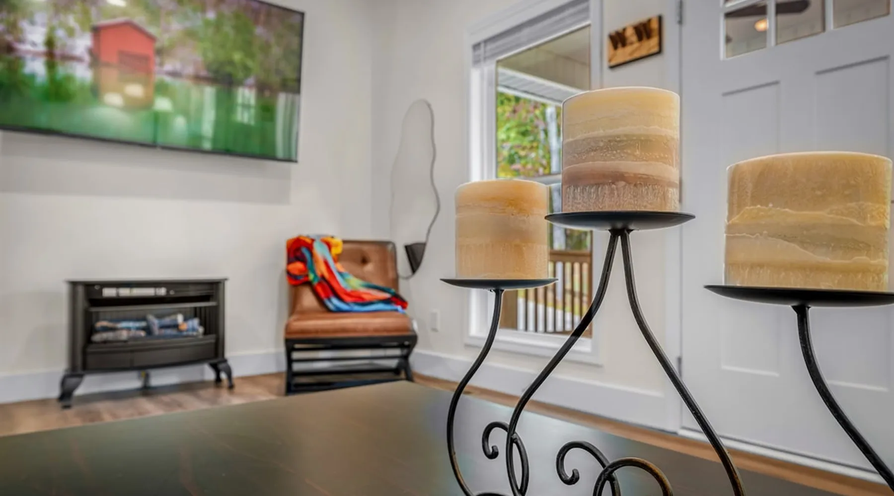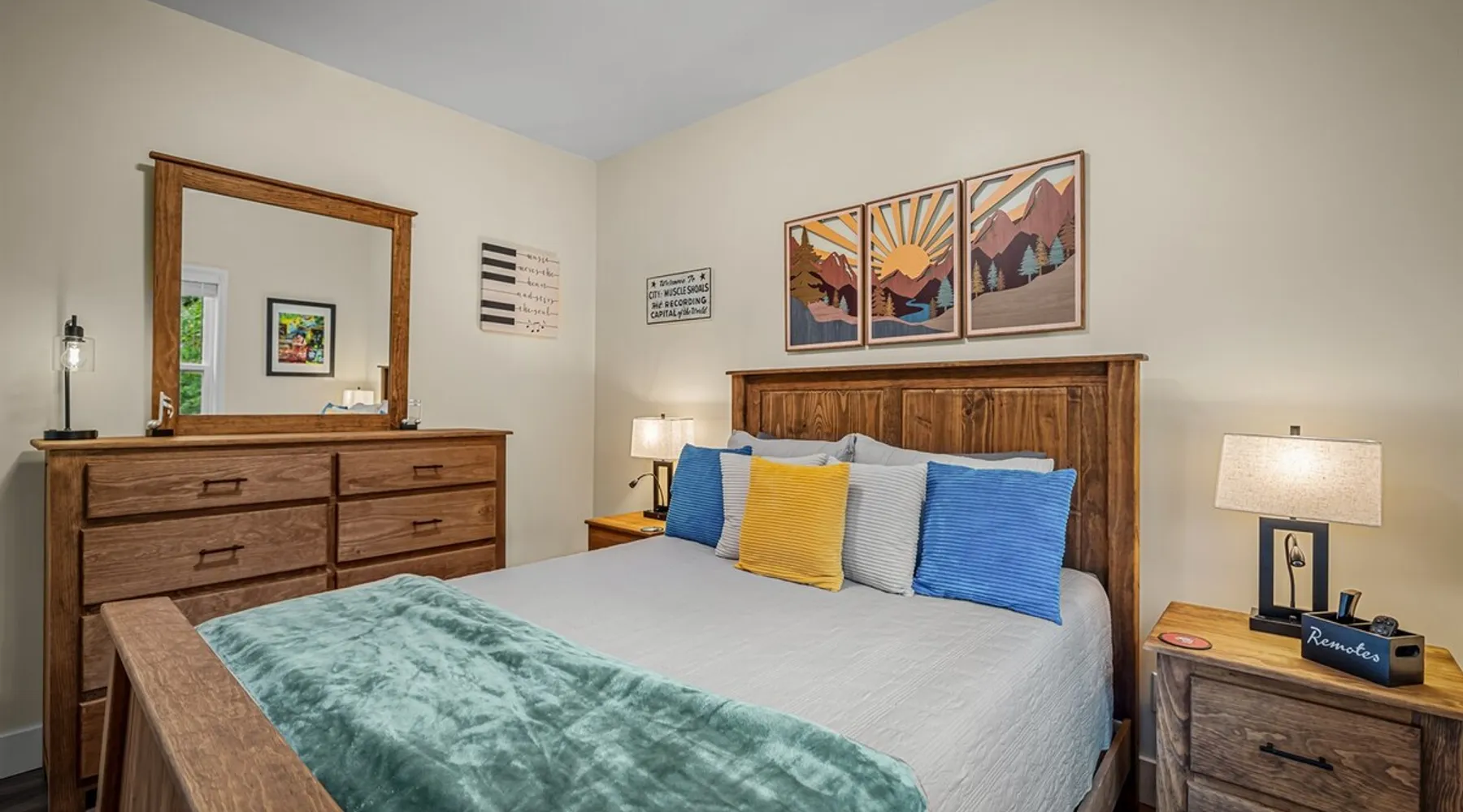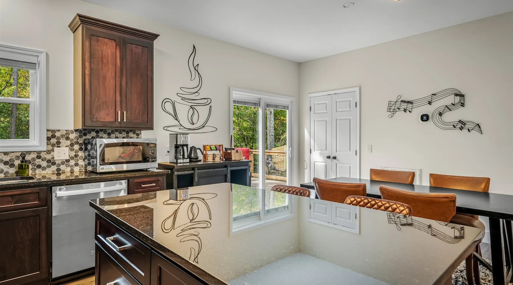 Melody Ridge in Downtown Fort Payne | Fast Wi-Fi | 4 Smart TVs | Office Area | Gas Log Fireplace | Laundry Area | 2 Full Bathrooms | King Suite | Walk-In Shower | Large Soaking Tub | Dog Friendly | Vacation, Corporate and Extended Stays | Hosts up to 6 Guests Escape to the newly-built Melody Ridge in Downtown Fort Payne! Landscaping and an optional no-stairs entrance are coming soon! The space Melody Ridge in Downtown Fort Payne | Fast Wi-Fi | 4 Smart TVs | Office Area | Gas Log Fireplace | Laundry Area | 2 Full Bathrooms | King Suite | Walk-In Shower | Large Soaking Tub | Dog Friendly | Vacation, Corporate and Extended Stays | Hosts up to 6 Guests Escape to the newly-built Melody Ridge in Downtown Fort Payne! Melody Ridge, the retreat property owners’ personal family vacation home, offers a centrally-located peaceful retreat experience with lots of amenities! Explore nearby waterfalls, parks, shops, and restaurants, or just enjoy the peace that this destination retreat property offers guests. Renew, refresh, and be restored! **THE RETREAT PROPERTY** This home is located in Downtown Fort Payne with distant views of nearby Lookout Mountain. There is a private concrete driveway and parking area for 2 vehicles, as well as a space for turning your vehicle around. A privacy fence lines the retreat property on both sides between neighbors, with an open entrance and open, natural views into the back yard and surrounding woods! There are 6 stairs leading to the spacious front porch. This covered porch invites you to relax and take in the fresh mountain air, rain or shine. Step through the front door to the main living area that welcomes you with comfortable lounge seating for 6 guests. Entertainment enthusiasts will appreciate the Fast Wi-Fi and 75" HD Smart TV for streaming your favorite subscribed channels. With corporate guests and remote workspaces in mind, each of the 4 large televisions in this home provide screen-sharing and live-conferencing capabilities. And in this area, it’s very common for opposing football team fans to watch “the big game” in separate locations, so this home is here for it! Also in the living area is a gas log stove fireplace for cool mornings at the mountain :) Directly next to the living area is the dining area and kitchen. The well-equipped kitchen has granite countertops, stainless appliances, dishes, drinking glasses, utensils, pots, pans, and spices for your home-away-from home cooking needs. The homeowners love to travel, and this home has so many extras that they also love to find when they are choosing a vacation rental home. A large kitchen island offers a fantastic preparation and serving area for family meals, and there is indoor dining space for up to 6 with a table and 4 chairs, as well as 2 stools. There is also a coffee station with a 12-cup coffee maker and an electric water kettle for hot teas. Next to the Dining Area, there is a laundry room with a washer and dryer, ironing board available for your convenience, as well as an electric steamer. A significant highlight of this home is the spacious primary bedroom suite. It has a very comfortable king-sized bed with a MLiLY Fusion Luxe/ Hybrid mattress, with a cooling cover and medium/plush feel to help every guest rest well. There is also a large 65" HD Smart TV for movie nights in and even a private remote workspace in the corner with an office desk and chair. Adjoining the primary bedroom is the en-suite primary bathroom, complete with a 2-sink vanity. The customized walk-in shower, large soaking tub and towel warmer offer a spa-like experience for those seeking relaxation after a day of adventures atop Lookout Mountain. Whether you seek a quick revitalizing shower or a long, indulgent soak, this space caters to your every preference. In addition to the primary bedroom suite, there are two additional bedrooms. Each has a comfortable queen bed with a 10” Dreamer, memory foam mattress, closet and dresser storage - as well as a 50" HD Smart TV. Both bedrooms also have bedside tables and lamps with USB charging stations. The third bedroom has views into the backyard area and a remote-controlled adjustable bed frame that even has a massage setting for tired muscles after a day of chasing waterfalls :) *FYI: All of the beds, mattresses and sleeping pillows at Melody Ridge were purchased locally at Beds, Floors and More in Fort Payne. We get asked often by guests because they’re so comfy :) Between the second and third bedroom, there is a second full bathroom with a tub/shower combination, sink, toilet, and towel warmer. Through the sliding glass doors beside the dining area, a spacious back deck awaits you and provides the ideal setting for outdoor gathering and al fresco dining. A gas fire pit is ready for cool nights and gathering with family. WHY GUESTS LOVE THIS PEACEFUL RETREAT PROPERTY: 1) This home has a king bedroom and en-suite bathroom with walk-in shower & soaking tub! 2) It is conveniently located in Downtown Fort Payne! 3) It is very spacious with each bedroom having a large Smart TV for streaming! 4) It has a large front porch and back deck with privacy! 5) Its musical themed decor is in honor of local artists with a nod to the rich musical history of Fort Payne, Muscle Shoals and Mentone! **EXPLORE THE AREA** 1.3 miles - The Spot Coffee Shop 1.3 miles - DeKalb County Courthouse 1.1 miles - Fort Payne’s City Park 1.1 miles - Alabama Walking Trail Park .8 miles - VFW Fairgrounds 2.2 miles - Alabama Fan Club & Museum 8.7 miles - Little River Canyon National Preserve 11 miles - Mentone 8 miles - DeSoto State Park 31 miles - Unclaimed Baggage in Scottsboro, AL 40 miles - Cloudland Canyon State Park, GA 47 miles - Rock City & Ruby Falls 70 miles - Huntsville, AL FREE PARKING: There is free parking in the parking area beside this home for up to 2 vehicles (contact host for more info if additional parking needed) Be sure to check out all of our favorite attractions and dining spots i