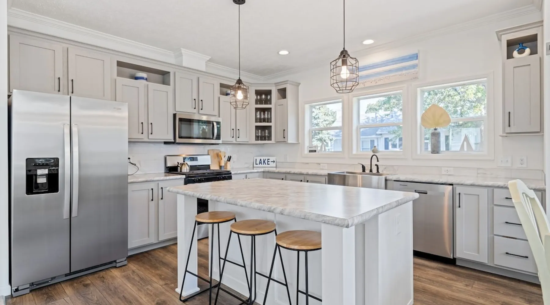 NEW~2023 Built! Welcome to The Serenity Lake Hutch. If you are searching for the perfect beach vacation spot, we are located in the heart of Port Clinton and the Lake Erie Islands. This new ranch style cottage encompasses everything you would expect in a lakeview home. You will be very close to the JetExpress to enjoy a day of Island hopping & fun! Less than 2 minutes from the Jet & downtown Port Clinton for live weekend music & festivals throughout the summer. Ask about seasonal/direct rates! The space Your very own lake house in Port Clinton, Ohio. Entering the home, you are greeted with a large open floor plan, with tall ceilings, premium furnishings and bright airy windows offering lake views. There is a spacious well-equipped Kitchen and dining room seating for 6. There are 3 bedrooms and 2 full bathrooms. The primary bedroom is a king size bed with en suite bath. The soaking Tub is great for relaxing and sipping some local wine. The second bedroom includes a queen sized bed and large closet. The 3rd bedroom includes double sized bunk beds to sleep all the kids. The second bathroom is great for larger groups with a full tub/shower. From the Living room you can get a great view of the park and lake. 3 doors down from the public beach access in Port Clinton with everyone’s beach side enjoyment. The sandy bottom and gradual sloping water depth allow for some of the best swimming in the area. Cedar Point is about 19 miles away making this location great for a day at the park. This is the perfect place to sit under the stars with a cocktail while catching glimpses of shooting stars. This house can also be rented with the house next door to sleep up to 16 total guests for a total of 6 bedrooms and 3 full bathrooms. Please send an inquiry about booking both homes. We do require a "Security/Damage Hold" for all rentals. This is not a charge and is intended for accidental damage that may happen during your stay. Message us today for possible seasonal/direct discounts! We are The Beach Hutch. Guest access Entire home is accessible with key pad entry. Check in door codes will be provided the day of your arrival after the cleaning team is complete, by 3:30PM EST to the email address on file. Other things to note Perfect base camp for Put-In-Bay or Kelley's Island touring. Island hopping or just a relaxing day at the beach. Cedar Point is a short car ride away if you are a thrill-seeker. If you love to fish, Lake Erie is known for its world-class Walleye and Perch fishing.
