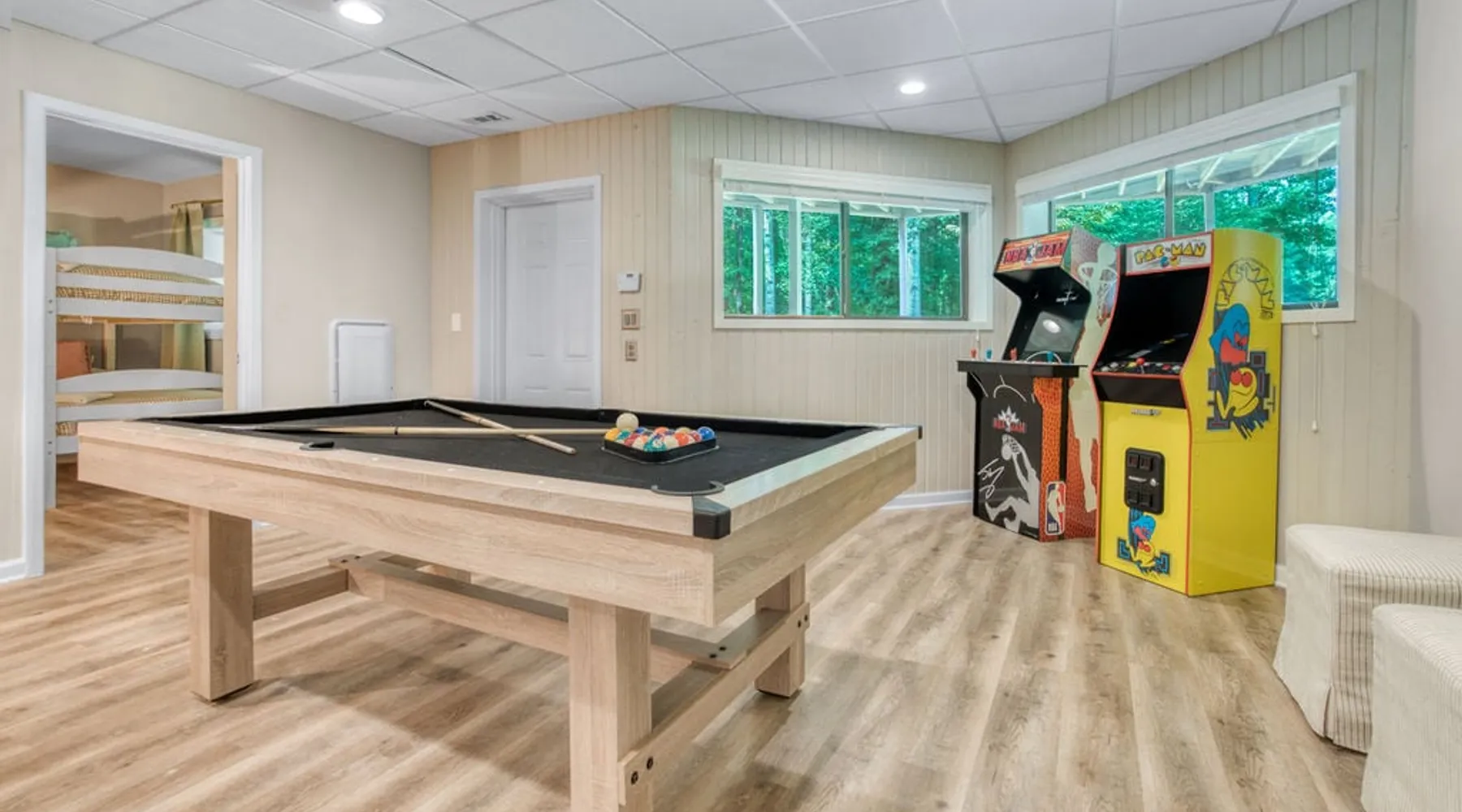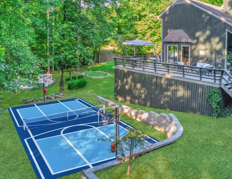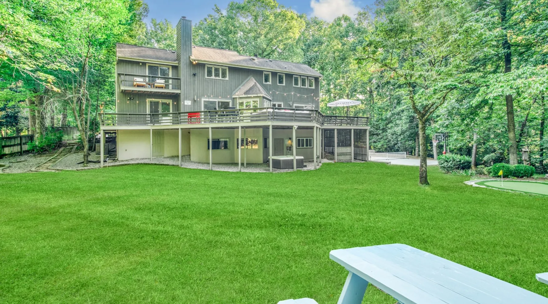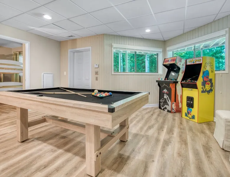 Discover the ultimate retreat in our spacious 7-bedroom home, perfect for family gatherings or group getaways. Enjoy endless fun with your own basketball and pickleball court, practice your swing on the golf putting greens, and challenge friends to arcade games. Relax on the huge deck with stunning lake views, unwind by the fire pit, or soak in the hot tub under the stars. This home combines luxury and entertainment for a memorable stay. The space **NO PARTIES, GATHERINGS, OR EVENTS** *NO CHIPPING GOLF BALLS* *LAKE NOT ACCESSIBLE* ☆☆ PLEASE READ HOUSE RULES BEFORE BOOKING IN THE HOUSE RULES SECTION (NOT HERE) ☆☆ KEY FEATURES: ☀ 7 spacious bedrooms; 1 king bed, 2 queen beds, 2 full beds, 1 full with 1 trundle bed, 6 twin bunk beds, & 1 twin with 1 trundle bed. 15 beds total plus couches! ☀ 3.5 bathrooms ☀ Modern kitchen fully equipped with stainless steel appliances ☀ Open-concept living area with ample seating & smart TVs ☀ Dining space that comfortably seats 10, plus additional seating at the countertop & outdoor dining area ☀ STUNNING backyard with endless amenities; private basketball/pickleball court, golf putting greens, pool, hot tub, fire pit, pool table, ping pong, BBQ grill, corn hole, & more! Whether you're seeking a peaceful retreat or an action-packed adventure, this property offers the best of both worlds. Book your stay today and experience the ultimate in comfort, luxury, and fun! Guest access ☆☆ BEDROOMS ☆☆ This spacious home offers 7 beautifully appointed bedrooms, providing a comfortable retreat: Bedroom 1: King bed Bedroom 2: Queen bed Bedroom 3: Queen bed Bedroom 4: Full with Full trundle bed Bedroom 5: Two Full beds Bedroom 6: Three Twin bunk bed sets (6 beds) Bedroom 7: Twin with trundle bed ☆☆ BATHROOMS ☆☆ With 3.5 well-equipped bathrooms, there's ample space for everyone to refresh and relax after a day of adventure or relaxation by the lake. ☆☆ KITCHEN & DINING ☆☆ The fully-equipped modern kitchen features stainless steel appliances and an open-concept design, making it easy to prepare meals and enjoy quality time together. The dining area comfortably seats 10 guests, with additional seating at the countertop and outdoor dining area. ☆☆ LIVING ROOM ☆☆ The open-concept living room offers plenty of comfortable seating and smart TVs, providing the perfect space to unwind after a day of fun. The seamless flow from the kitchen to the living area makes it easy to gather for games, conversation, or simply relaxing in front of the TV. ☆☆ OUTDOOR SPACE ☆☆ The main attraction of this home - WOW! This yard is HUGE and has everything you and your family/friends could ask for: ☀ Hot tub ☀ Golf Putting Greens ☀ Pickleball Court ☀ Basketball Court ☀ Fire pit (wood-burning) ☀ Corn Hole ☀ Sunbathing chairs ☀ Outdoor lounge seating ☀ Outdoor dining tables ☀ BBQ grill There is so much to do here, that all of your friends & family will be thoroughly entertained throughout your entire stay. No matter the season, this resort-style backyard has it all. Book your stay with us today and you will NOT be disappointed. Get ready for a vacation you will never forget! ★☆ Book Now & Let Us Take Care Of You In Jamestown! ☆★ Other things to note ☆☆ PLEASE READ HOUSE RULES BEFORE BOOKING IN THE HOUSE RULES SECTION (NOT HERE)☆☆ **NO PARTIES, GATHERINGS, OR EVENTS** This property includes security features, such as Schlage smart locks and Ring floodlight cameras, and noise decibel detectors for your safety and peace of mind. We are pet-friendly! Pet Fee is $150, max of 2, under 50 lbs each. Pool is not heated. Although it remains uncovered throughout the year, the pool is not available for use from September to May. We'd like to set your expectations that the pool temperature will continue to be determined by the weather temperature, as this is a major contributing factor. PARKING: - ALL cars must park in the driveway which has a maximum of FOUR (4) cars - Do NOT park on the street in from our direct neighbors. The neighbors will TOW you. - Do NOT park on the street directly in front of the driveway **NO PARTIES, GATHERINGS, OR EVENTS** ☆☆ PLEASE READ HOUSE RULES BEFORE BOOKING IN THE HOUSE RULES SECTION (NOT HERE)☆☆