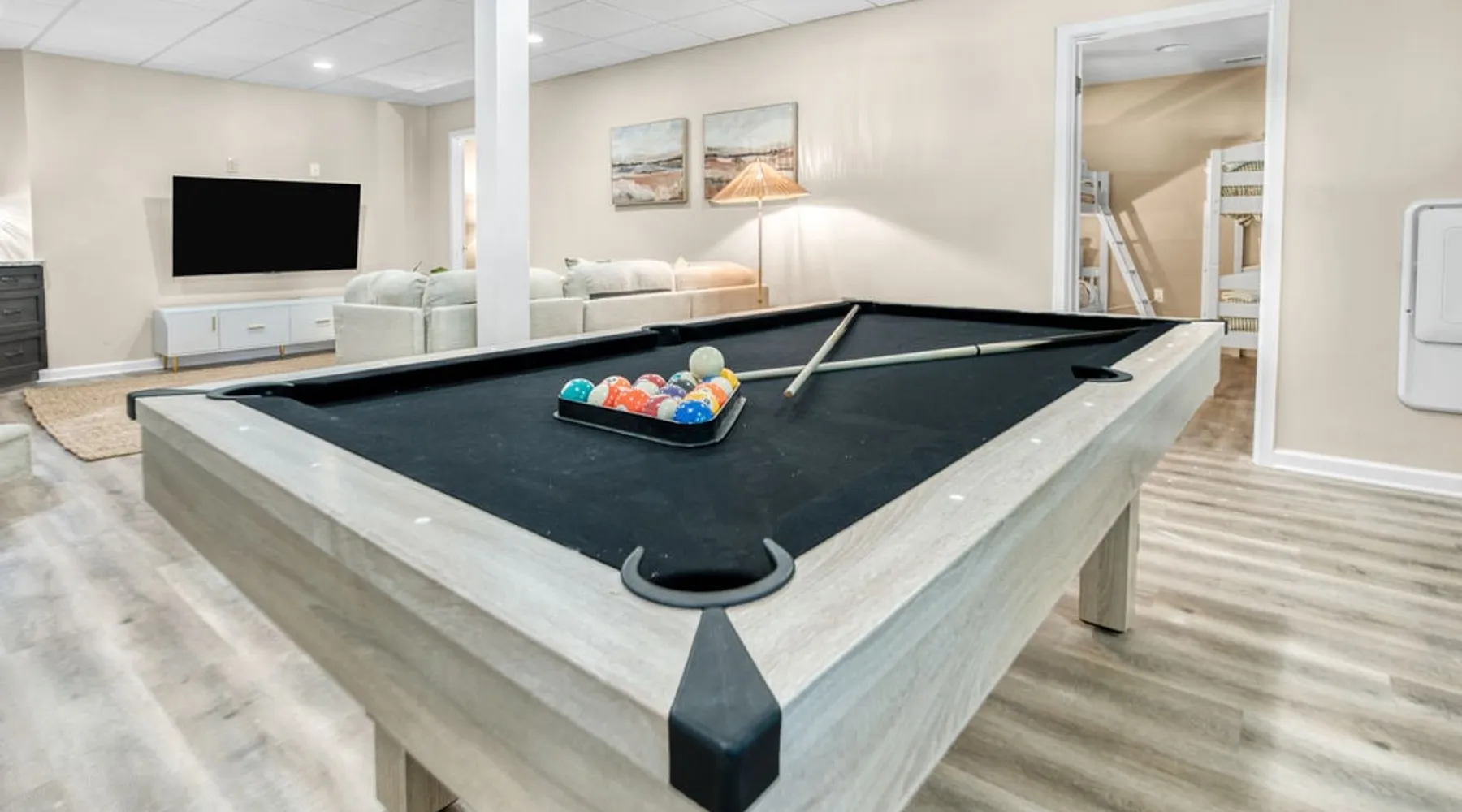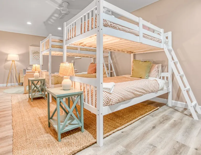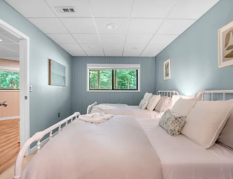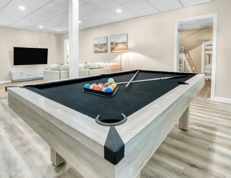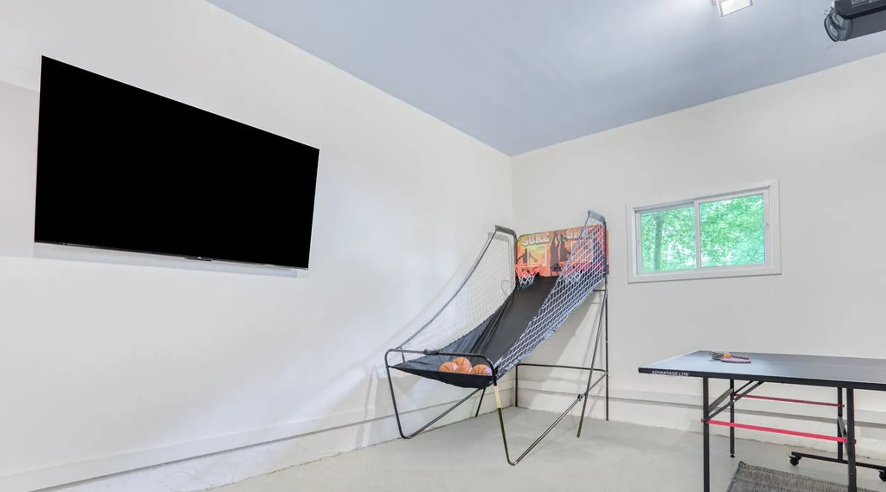 Discover the ultimate retreat in our spacious 7-bedroom home, perfect for family gatherings or group getaways. Enjoy endless fun with your own basketball and pickleball court, practice your swing on the golf putting greens, and challenge friends to arcade games. Relax on the huge deck with stunning lake views, unwind by the fire pit, or soak in the hot tub under the stars. This home combines luxury and entertainment for a memorable stay. The space **NO PARTIES, GATHERINGS, OR EVENTS** *NO CHIPPING GOLF BALLS* *LAKE NOT ACCESSIBLE* ☆☆ PLEASE READ HOUSE RULES BEFORE BOOKING IN THE HOUSE RULES SECTION (NOT HERE) ☆☆ KEY FEATURES: ☀ 7 spacious bedrooms; 1 king bed, 2 queen beds, 2 full beds, 1 full with 1 trundle bed, 6 twin bunk beds, & 1 twin with 1 trundle bed. 15 beds total plus couches! ☀ 3.5 bathrooms ☀ Modern kitchen fully equipped with stainless steel appliances ☀ Open-concept living area with ample seating & smart TVs ☀ Dining space that comfortably seats 10, plus additional seating at the countertop & outdoor dining area ☀ STUNNING backyard with endless amenities; private basketball/pickleball court, golf putting greens, pool, hot tub, fire pit, pool table, ping pong, BBQ grill, corn hole, & more! Whether you're seeking a peaceful retreat or an action-packed adventure, this property offers the best of both worlds. Book your stay today and experience the ultimate in comfort, luxury, and fun! Guest access ☆☆ BEDROOMS ☆☆ This spacious home offers 7 beautifully appointed bedrooms, providing a comfortable retreat: Bedroom 1: King bed Bedroom 2: Queen bed Bedroom 3: Queen bed Bedroom 4: Full with Full trundle bed Bedroom 5: Two Full beds Bedroom 6: Three Twin bunk bed sets (6 beds) Bedroom 7: Twin with trundle bed ☆☆ BATHROOMS ☆☆ With 3.5 well-equipped bathrooms, there's ample space for everyone to refresh and relax after a day of adventure or relaxation by the lake. ☆☆ KITCHEN & DINING ☆☆ The fully-equipped modern kitchen features stainless steel appliances and an open-concept design, making it easy to prepare meals and enjoy quality time together. The dining area comfortably seats 10 guests, with additional seating at the countertop and outdoor dining area. ☆☆ LIVING ROOM ☆☆ The open-concept living room offers plenty of comfortable seating and smart TVs, providing the perfect space to unwind after a day of fun. The seamless flow from the kitchen to the living area makes it easy to gather for games, conversation, or simply relaxing in front of the TV. ☆☆ OUTDOOR SPACE ☆☆ The main attraction of this home - WOW! This yard is HUGE and has everything you and your family/friends could ask for: ☀ Hot tub ☀ Golf Putting Greens ☀ Pickleball Court ☀ Basketball Court ☀ Fire pit (wood-burning) ☀ Corn Hole ☀ Sunbathing chairs ☀ Outdoor lounge seating ☀ Outdoor dining tables ☀ BBQ grill There is so much to do here, that all of your friends & family will be thoroughly entertained throughout your entire stay. No matter the season, this resort-style backyard has it all. Book your stay with us today and you will NOT be disappointed. Get ready for a vacation you will never forget! ★☆ Book Now & Let Us Take Care Of You In Jamestown! ☆★ Other things to note ☆☆ PLEASE READ HOUSE RULES BEFORE BOOKING IN THE HOUSE RULES SECTION (NOT HERE)☆☆ **NO PARTIES, GATHERINGS, OR EVENTS** This property includes security features, such as Schlage smart locks and Ring floodlight cameras, and noise decibel detectors for your safety and peace of mind. We are pet-friendly! Pet Fee is $150, max of 2, under 50 lbs each. Pool is not heated. Although it remains uncovered throughout the year, the pool is not available for use from September to May. We'd like to set your expectations that the pool temperature will continue to be determined by the weather temperature, as this is a major contributing factor. PARKING: - ALL cars must park in the driveway which has a maximum of FOUR (4) cars - Do NOT park on the street in from our direct neighbors. The neighbors will TOW you. - Do NOT park on the street directly in front of the driveway **NO PARTIES, GATHERINGS, OR EVENTS** ☆☆ PLEASE READ HOUSE RULES BEFORE BOOKING IN THE HOUSE RULES SECTION (NOT HERE)☆☆