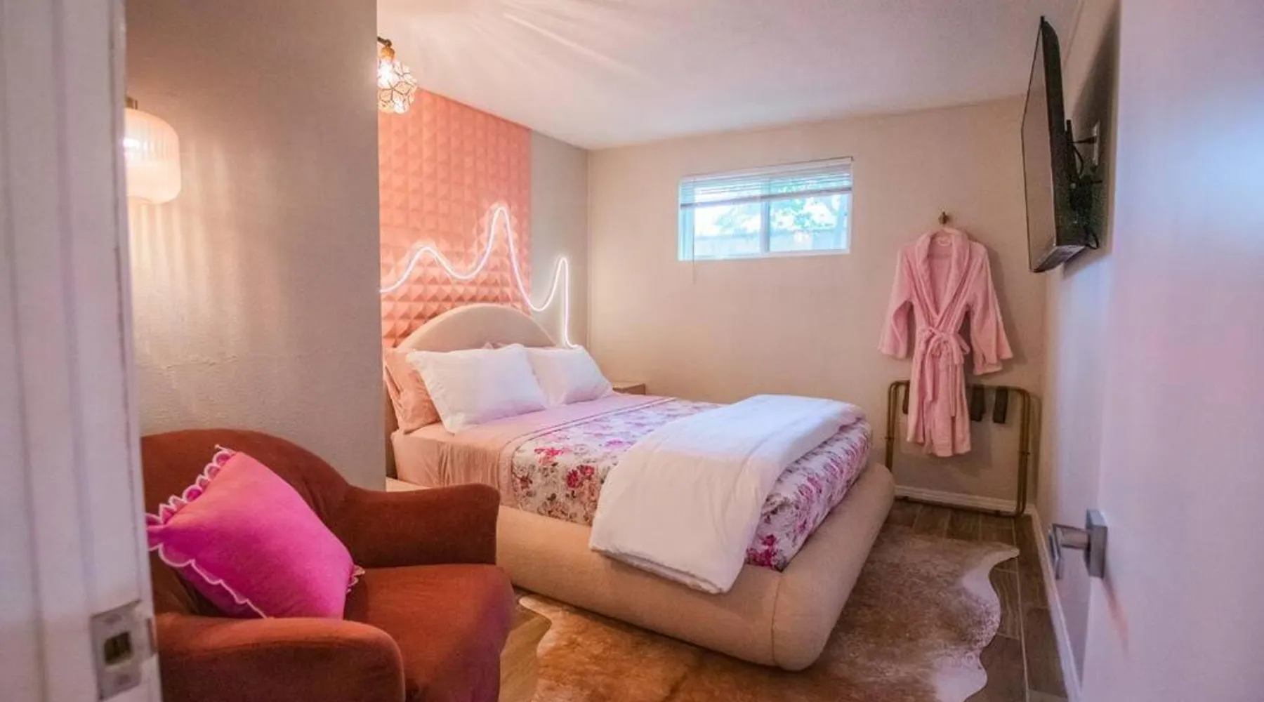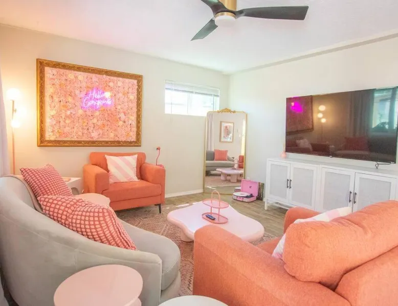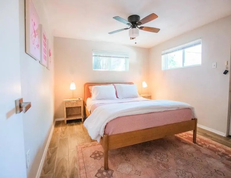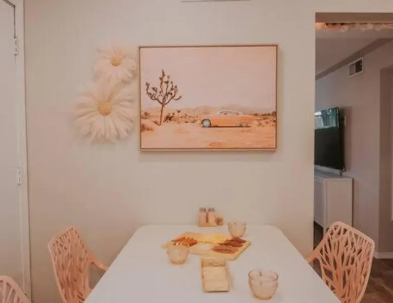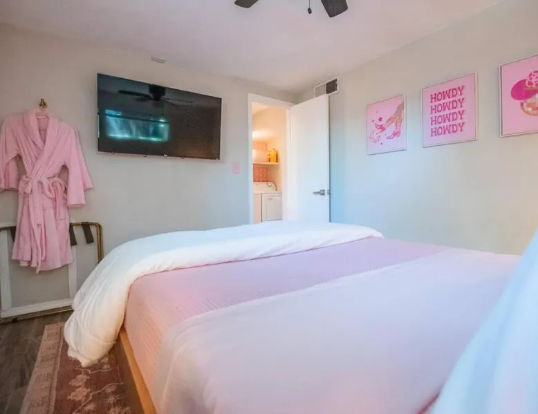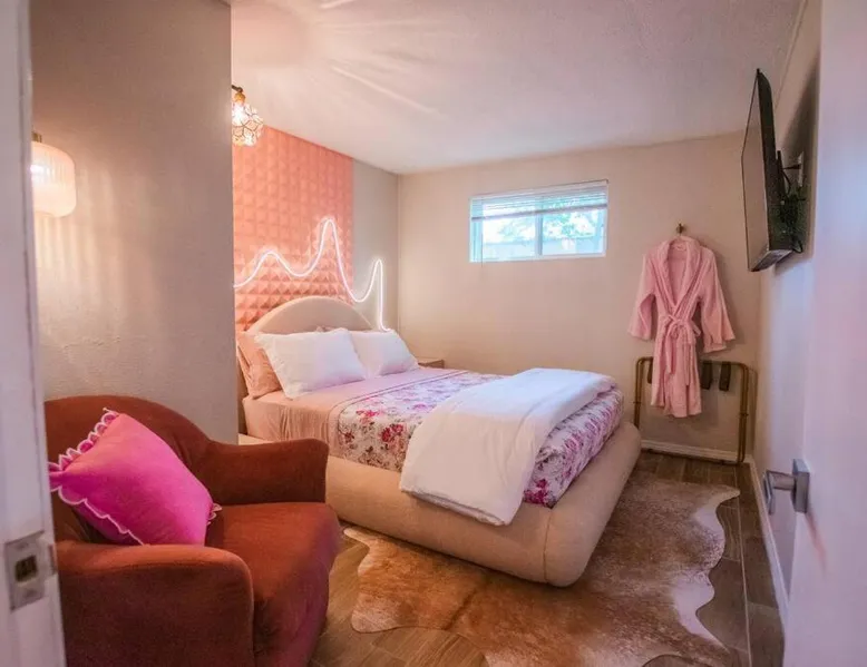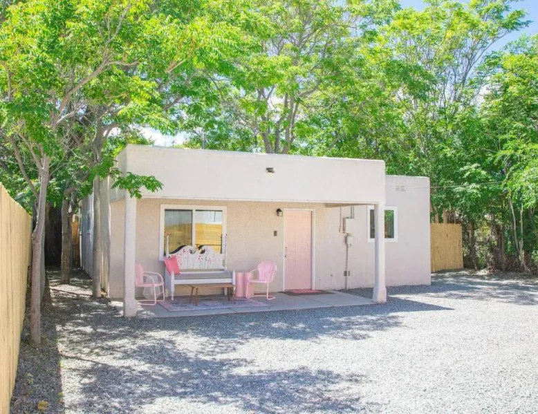 Comfortable Accommodations: 50 Shades of Pink-Hot Tub! in Albuquerque offers a holiday home with two bedrooms and a living room. The property includes air-conditioning, a fully equipped kitchen, and a washing machine. Outdoor Amenities: Guests can enjoy an outdoor fireplace, hot tub, and seating area. The property also features barbecue facilities, ensuring a relaxing outdoor experience. Convenient Facilities: The holiday home provides free WiFi, a dining table, and a TV. Additional amenities include bathrobes, free toiletries, and a hairdryer. Nearby Attractions: Located 6.2 mi from Albuquerque International Sunport, the property is close to the New Mexico Museum of Natural History and Science (2 mi) and ABQ BioPark - Zoo (2.1 mi). Highly rated by guests. This holiday home's standout feature is the hot tub. This holiday home includes 1 living room, 2 separate bedrooms and 1 bathroom with a bath and free toiletries. The well-equipped kitchen features a stovetop, a refrigerator, kitchenware and an oven. This holiday home is air-conditioned and has a seating area with a flat-screen TV, a washing machine, a tea and coffee maker, tumble dryer, as well as a barbecue. The unit has 2 beds.