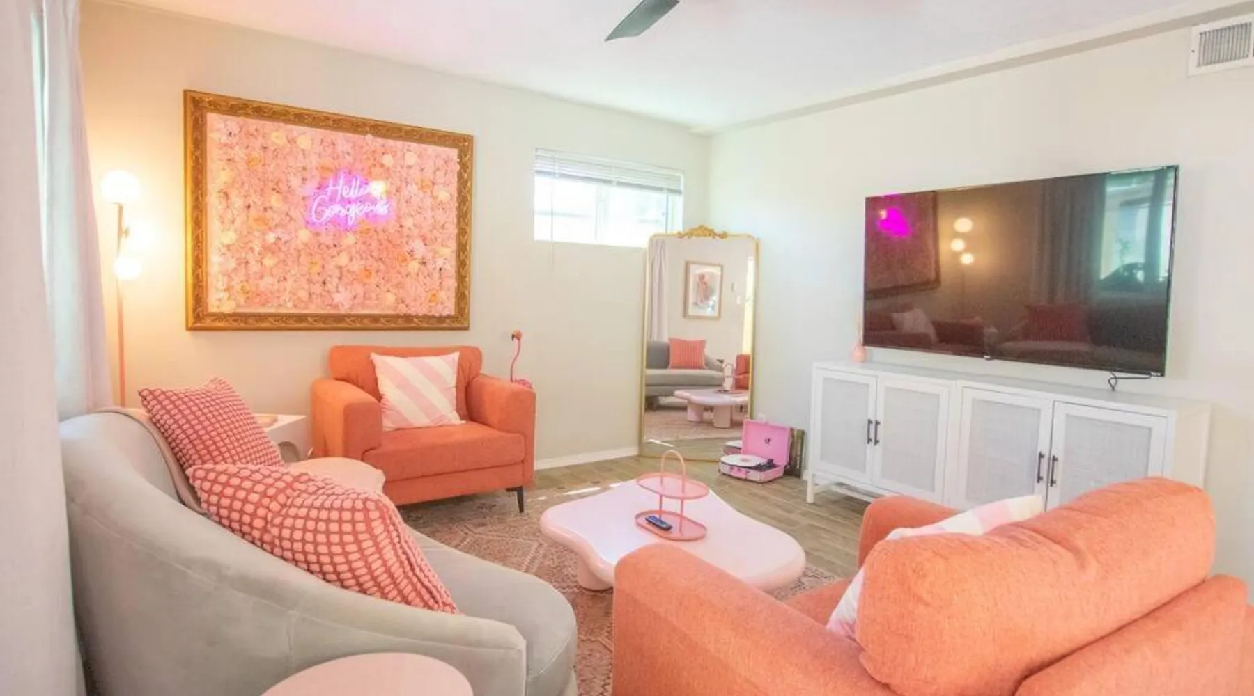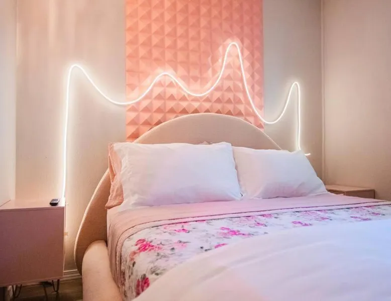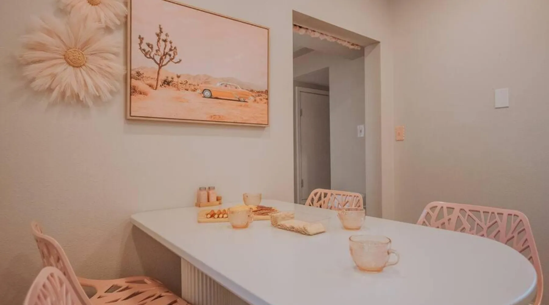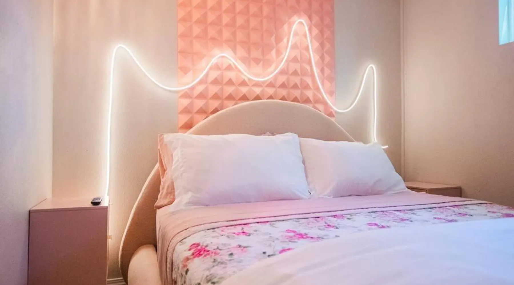 Comfortable Accommodations: 50 Shades of Pink-Hot Tub! in Albuquerque offers a holiday home with two bedrooms and a living room. The property includes air-conditioning, a fully equipped kitchen, and a washing machine. Outdoor Amenities: Guests can enjoy an outdoor fireplace, hot tub, and seating area. The property also features barbecue facilities, ensuring a relaxing outdoor experience. Convenient Facilities: The holiday home provides free WiFi, a dining table, and a TV. Additional amenities include bathrobes, free toiletries, and a hairdryer. Nearby Attractions: Located 6.2 mi from Albuquerque International Sunport, the property is close to the New Mexico Museum of Natural History and Science (2 mi) and ABQ BioPark - Zoo (2.1 mi). Highly rated by guests. This holiday home's standout feature is the hot tub. This holiday home includes 1 living room, 2 separate bedrooms and 1 bathroom with a bath and free toiletries. The well-equipped kitchen features a stovetop, a refrigerator, kitchenware and an oven. This holiday home is air-conditioned and has a seating area with a flat-screen TV, a washing machine, a tea and coffee maker, tumble dryer, as well as a barbecue. The unit has 2 beds.