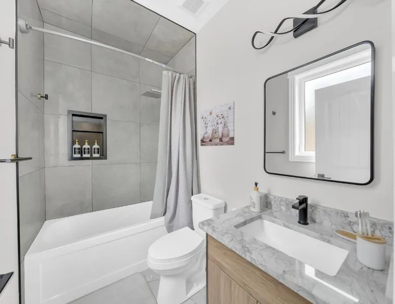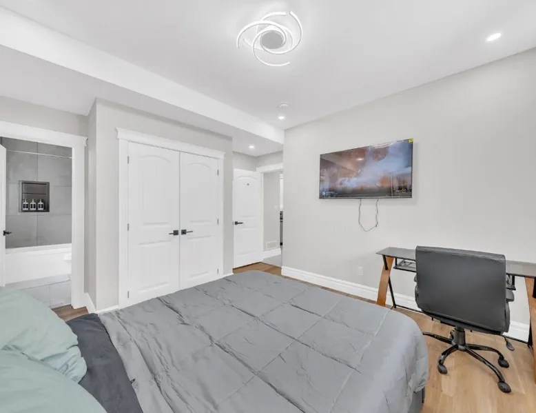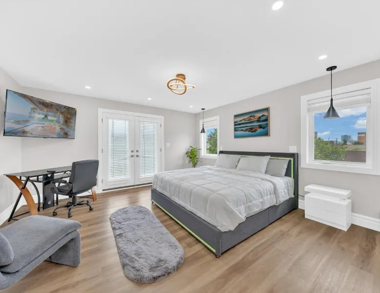 Comfortable Accommodations: 5 Bedrooms Modern Oasis in Downtown Area offers a homestay experience in Windsor, Canada. The property features family rooms with air-conditioning, parquet floors, and wardrobes. Essential Facilities: Guests enjoy free WiFi, free on-site private parking, and a balcony. Each room includes a private bathroom with a bidet, shower, and free toiletries. Convenient Location: Located 5.6 mi from Windsor International Airport, the homestay is near attractions such as TCF Center (1.9 mi) and GM World (1.2 mi). An ice-skating rink is also in the surroundings. Guest Satisfaction: Highly rated for room cleanliness, the property ensures a pleasant and comfortable stay. Offering free toiletries, this quadruple room includes a private bathroom with a bath, a shower and a bidet. This quadruple room has air conditioning, a seating area, a flat-screen TV and a balcony. The unit has 1 bed.