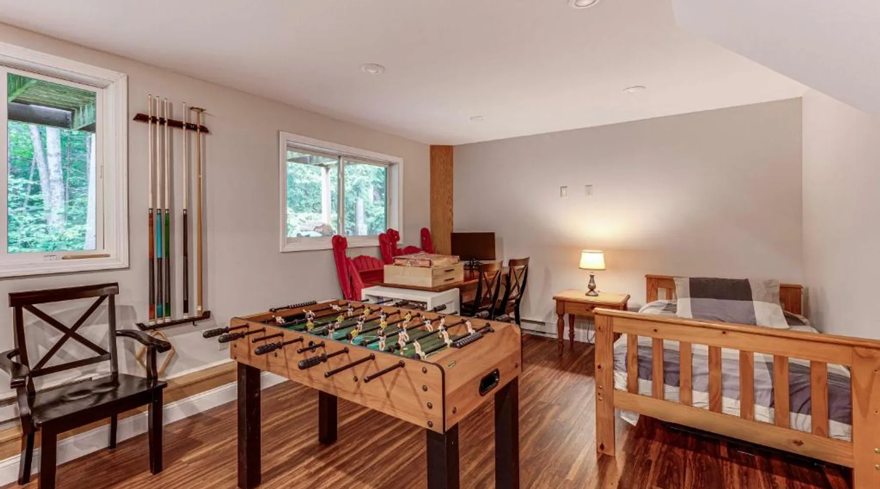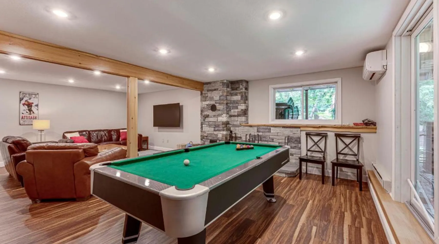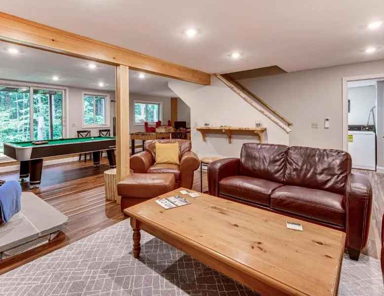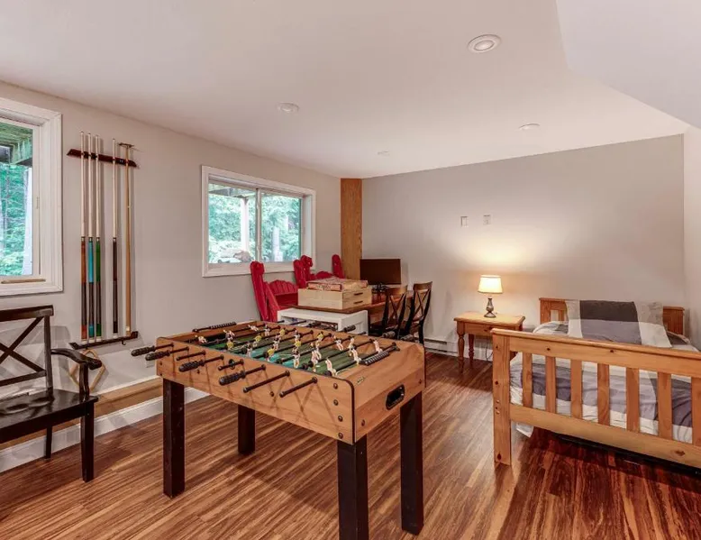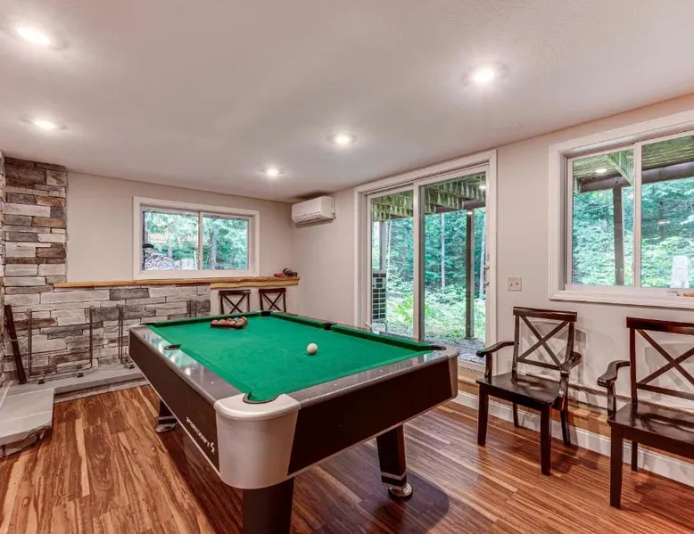 Spacious Accommodations: Bartlett Vacation Rental with Wraparound Deck! in Bartlett offers a spacious holiday home with four bedrooms and two bathrooms. The property includes a living room and a private entrance. Outdoor Amenities: Guests can enjoy an outdoor swimming pool and a games room. Free WiFi is available throughout the property. Modern Facilities: The home features air-conditioning, a fully equipped kitchen with a coffee machine, refrigerator, microwave, dishwasher, oven, stovetop, and toaster. Additional amenities include a hairdryer, free toiletries, TV, and paid on-site parking. Nearby Attractions: Located 6.2 mi from Story Land Amusement Park and 68 mi from Portland International Jetport. Other attractions include White Mountain National Forest (22 mi), Mount Washington (28 mi), and Mount Meander (11 mi). Highly rated by guests. Featuring a private entrance, this air-conditioned holiday home consists of 3 living rooms, 4 separate bedrooms and 2 bathrooms with a bath and a shower. Guests can make meals in the kitchen that is equipped with a stovetop, a refrigerator, a dishwasher and kitchenware. The spacious holiday home provides a coffee machine, tumble dryer, heating and a flat-screen TV with cable channels. The unit offers 6 beds.