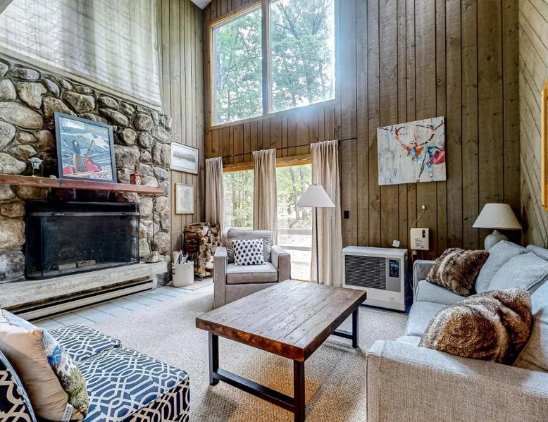 Spacious Accommodations: Snowy Peaks Hideaway in Conway offers a spacious apartment with three bedrooms and three bathrooms. The property features a fully equipped kitchen, dining area, and comfortable living spaces. Leisure Facilities: Guests can enjoy an outdoor swimming pool, heated pool, and outdoor seating area. Additional amenities include a children's playground, picnic area, and barbecue facilities. Local Attractions: Mount Meander is a 14-minute walk away, while Conway Scenic Railroad lies 0.6 mi from the property. Other nearby attractions include Story Land Amusement Park (6.8 mi) and Mount Washington (28 mi). Activities: Snowy Peaks Hideaway provides access to winter sports such as skiing and cycling. Portland International Jetport is 58 mi from the apartment. This apartment features a fireplace. The spacious apartment has 3 bedrooms and 3 bathrooms with a hairdryer and free toiletries. Guests will find a stovetop, a refrigerator, a dishwasher and kitchenware in the well-fitted kitchen. The apartment also comes with a barbecue. The apartment features a washing machine, a private entrance, a tea and coffee maker, a TV with streaming services, as well as mountain views. The unit has 3 beds.