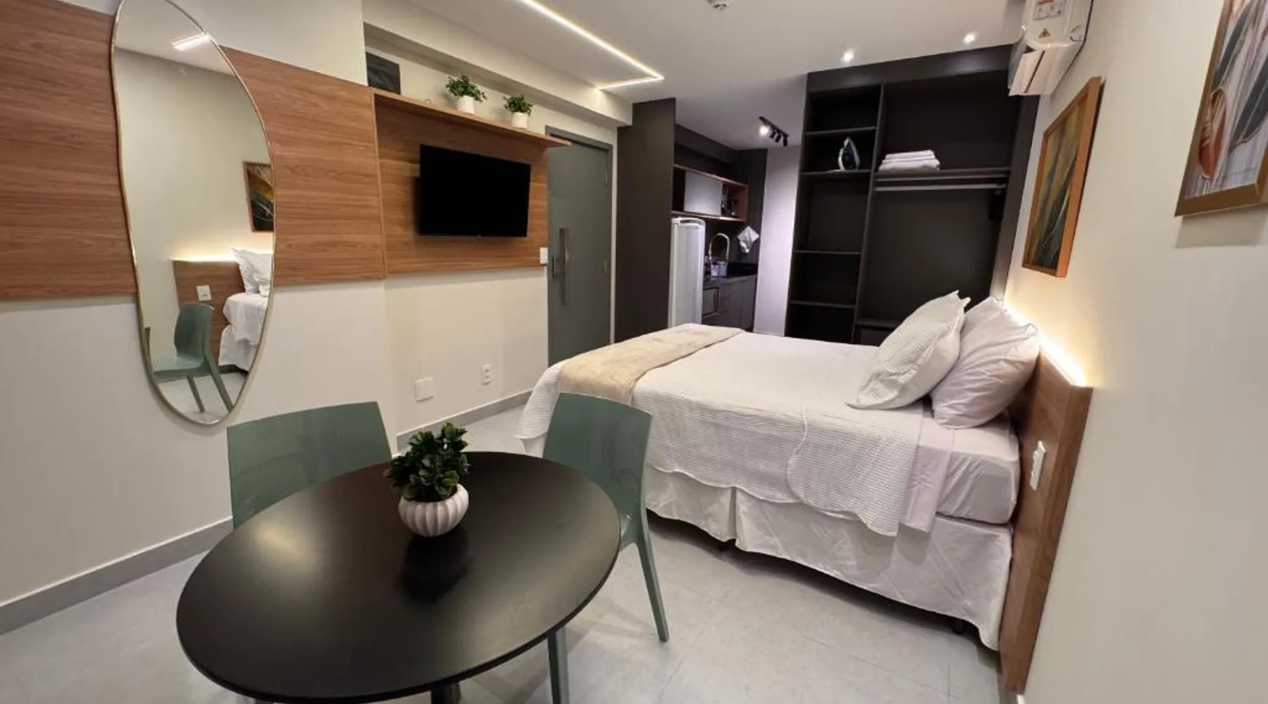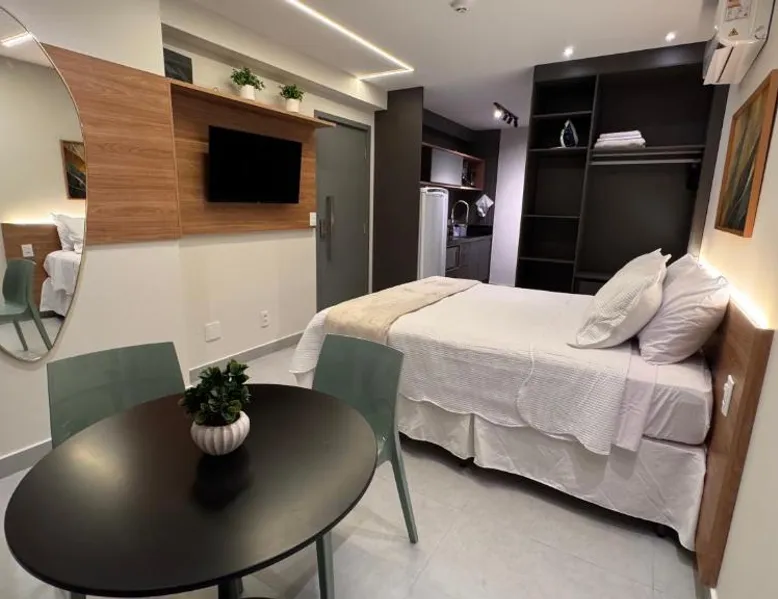 Modern Comforts: Flat na melhor localização em João Pessoa in João Pessoa offers free WiFi and a elevator. Guests enjoy sea views, air-conditioning, a kitchenette, washing machine, and a private pool. Convenient Amenities: The apartment features a fully equipped kitchen with a refrigerator, microwave, stovetop, and tea and coffee maker. Additional amenities include a dining area, work desk, and free on-site private parking. Prime Location: Located less than 0.6 mi from Manaira Beach and 11 mi from Presidente Castro Pinto International Airport. Nearby attractions include Cabo Branco Lighthouse (7.5 mi) and the Historic Center (4.3 mi). Scuba diving is available in the surroundings. Guest Satisfaction: Highly rated by guests for its excellent facilities and location. The private pool is a top feature of this apartment. The kitchen features a stovetop, a refrigerator and a microwave. The air-conditioned apartment features a flat-screen TV with satellite channels, a washing machine, a tea and coffee maker, a dining area as well as sea views. The unit has 1 bed.