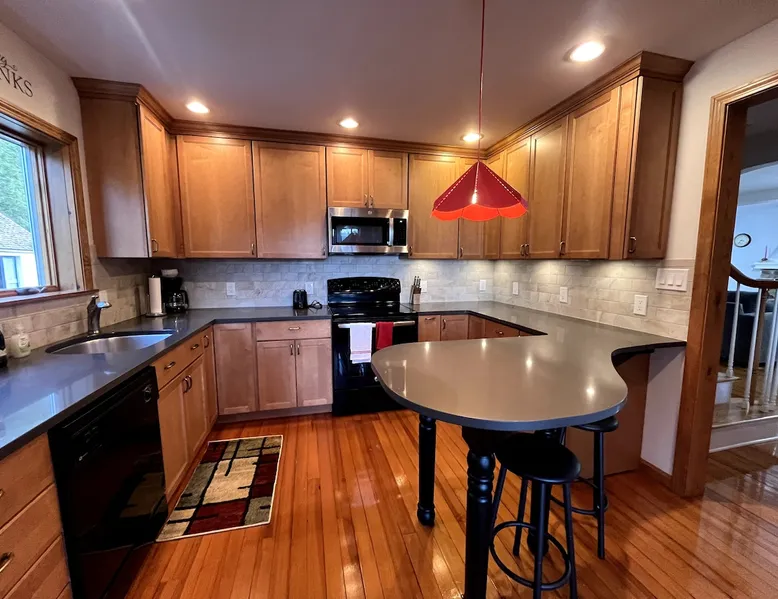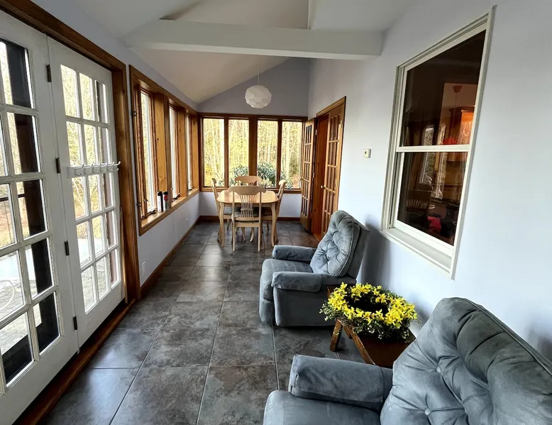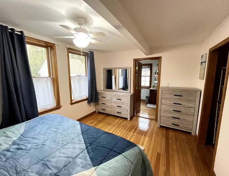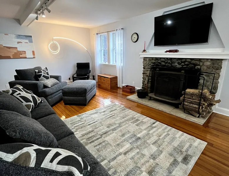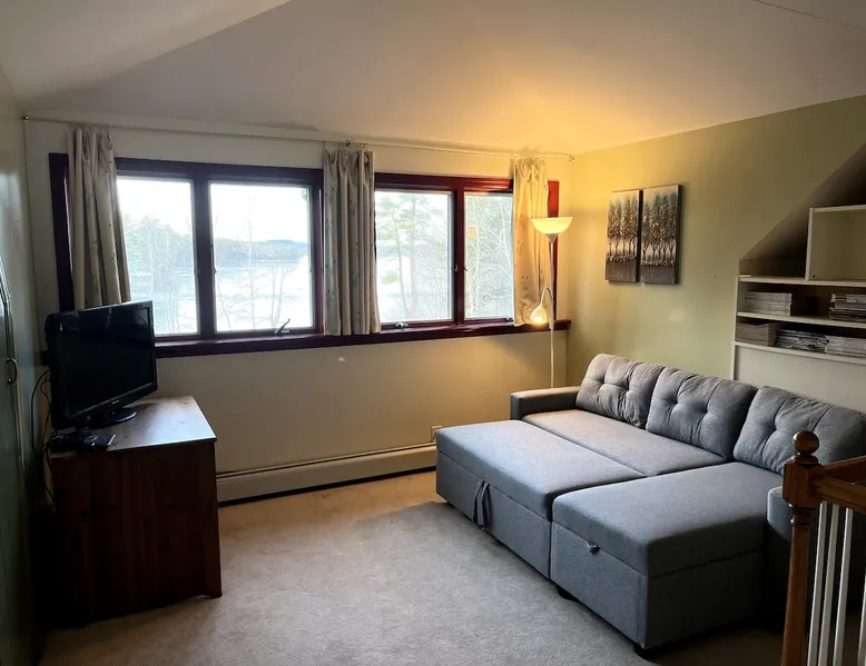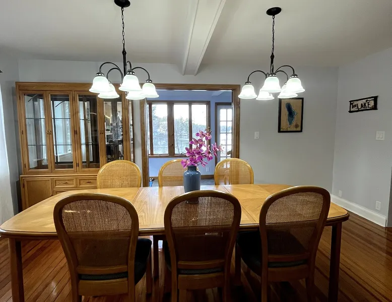 Welcome to an all season adventure! Bring the family and pets. This house is located on Pleasant Lake, with a private dock in the summer and beach. Kayaks and water toys are included. In the winter enjoy ice skating, ice fishing & bonfires. Bring your boat! A private office allows for a work friendly environment. Plenty of games including volleyball, air hockey, ping pong and board games. This house has 1 king bed, 1 queen bed, 1 sofa bed and 4 bunk beds. This is a non-smoking house.