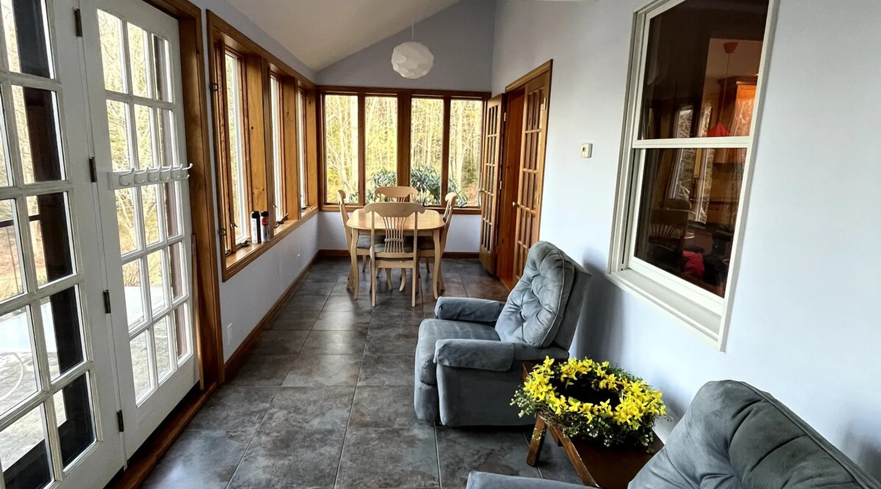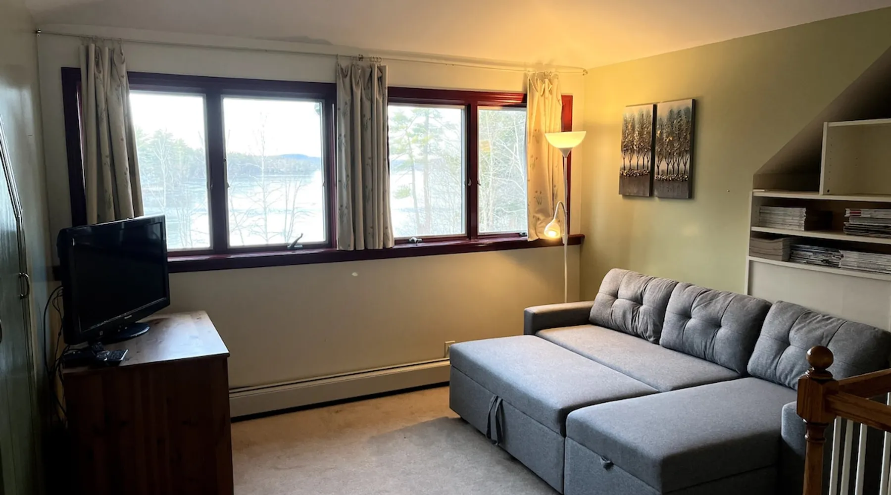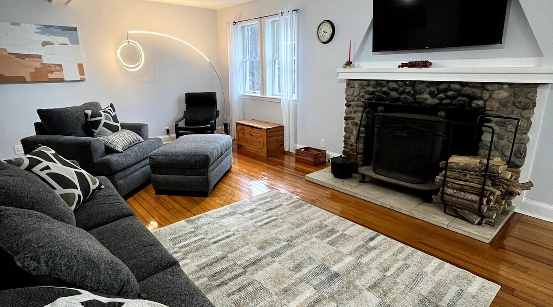Welcome to an all season adventure! Bring the family and pets. This house is located on Pleasant Lake, with a private dock in the summer and beach. Kayaks and water toys are included. In the winter enjoy ice skating, ice fishing & bonfires. Bring your boat! A private office allows for a work friendly environment. Plenty of games including volleyball, air hockey, ping pong and board games. This house has 1 king bed, 1 queen bed, 1 sofa bed and 4 bunk beds. This is a non-smoking house.