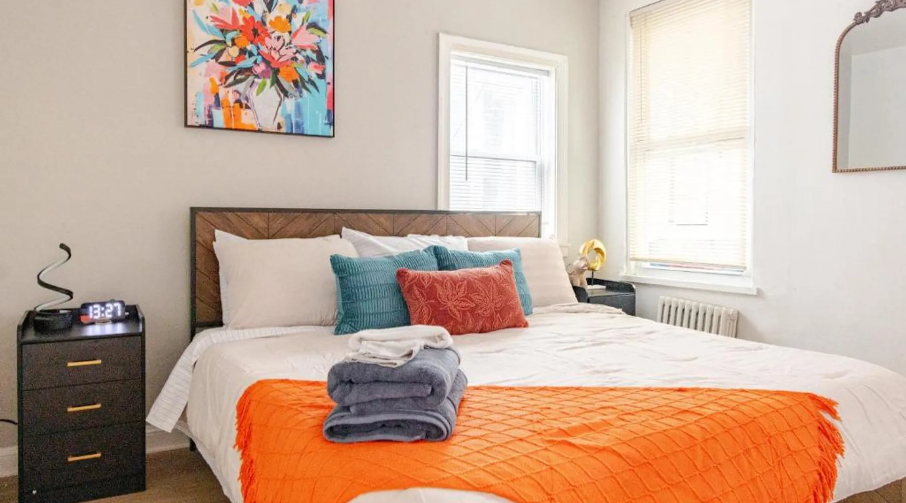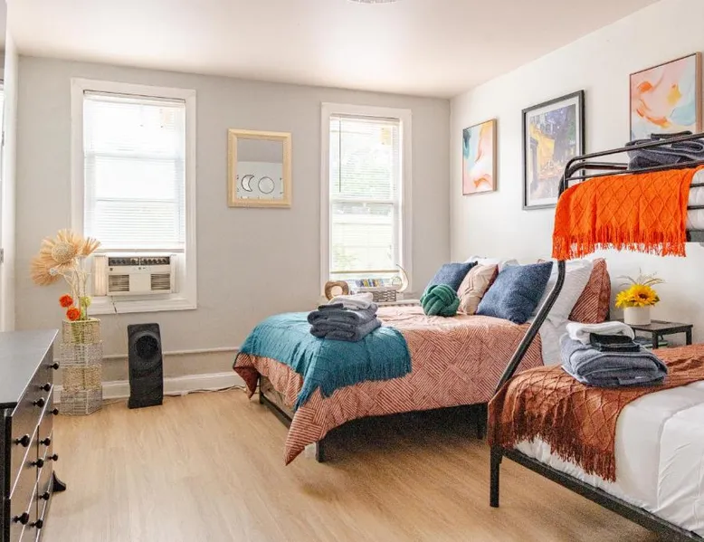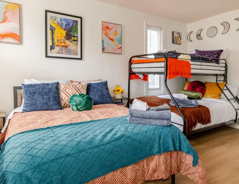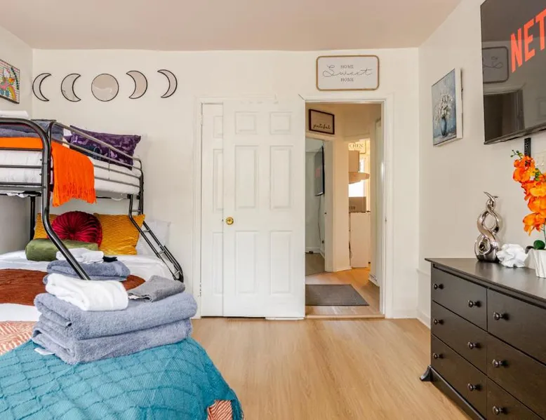 Spacious Accommodations: Stylish & Family Friendly 2BR at Washington DC with Free Parking offers a spacious apartment in Washington, DC. The property features two bedrooms and one bathroom, providing ample space for guests. Comfortable Living: Guests appreciate the room comfort, ensuring a relaxing stay. The apartment includes amenities such as air-conditioning, a fully equipped kitchen, and free WiFi, catering to all needs. Convenient Location: Located 8.1 mi from Ronald Reagan Washington National Airport, the apartment is close to attractions like Walter E Washington Convention Center (1.2 mi) and the National Mall (2.1 mi). An ice-skating rink is also in the surroundings. Highly Rated: Guests highly rate the property for its room comfort, convenient location, and friendly host. The unit has 2 beds.