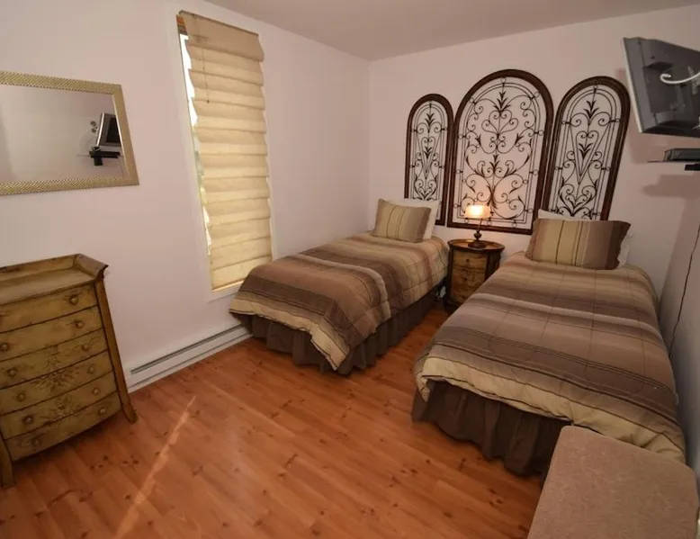 Spacious Accommodations: Gorgeous Jackson Hole Condo in Wilson offers a spacious apartment with two bedrooms and two bathrooms. The property features family rooms, a balcony with mountain views, and a private deck with a barbecue. Modern Amenities: Guests enjoy free WiFi, streaming services, a washing machine, and a fully equipped kitchen with a dishwasher and microwave. Additional amenities include a fireplace, sofa bed, and parquet floors. Convenient Location: Located 17 mi from Jackson Hole Airport, the apartment is near attractions such as Grand Teton National Park (8.7 mi) and Shooting Star Jackson Hole Golf Club (4.3 mi). Free on-site private parking is available. Highly Rated by Guests: Guests appreciate the spaciousness, mountain views, and private deck with barbecue, making it a highly rated choice. This apartment features a fireplace. This spacious apartment features a kitchen, a seating area, 2 separate bedrooms and 2 bathrooms with a walk-in shower and a bath. Guests will find a stovetop, a refrigerator, a dishwasher and kitchenware in the well-equipped kitchen. The apartment also comes with a barbecue. Boasting a balcony with mountain views, this apartment also features a washing machine and a flat-screen TV with streaming services. The unit has 3 beds.