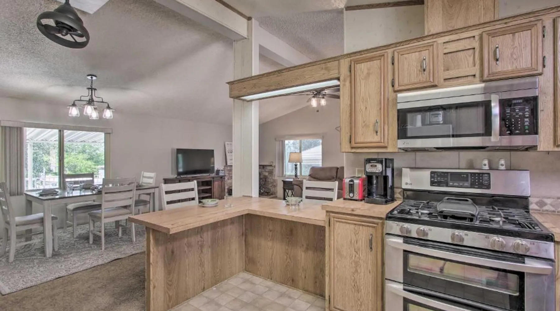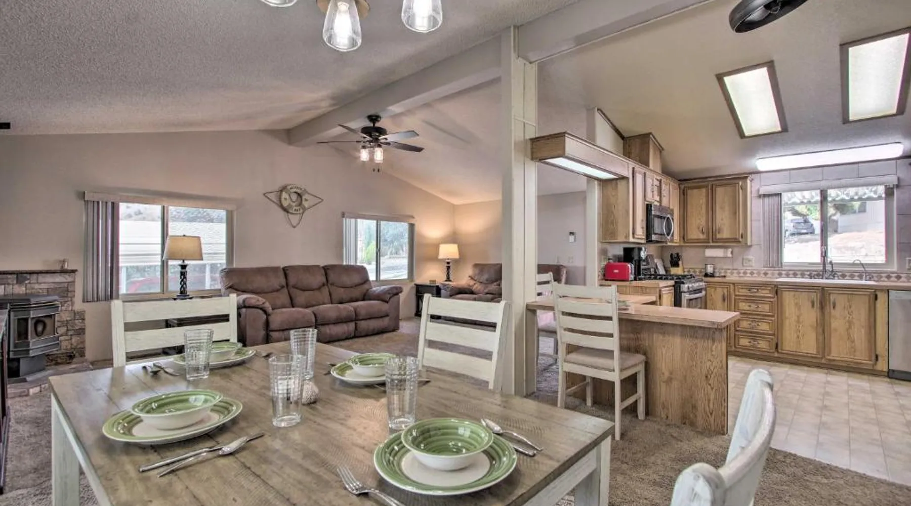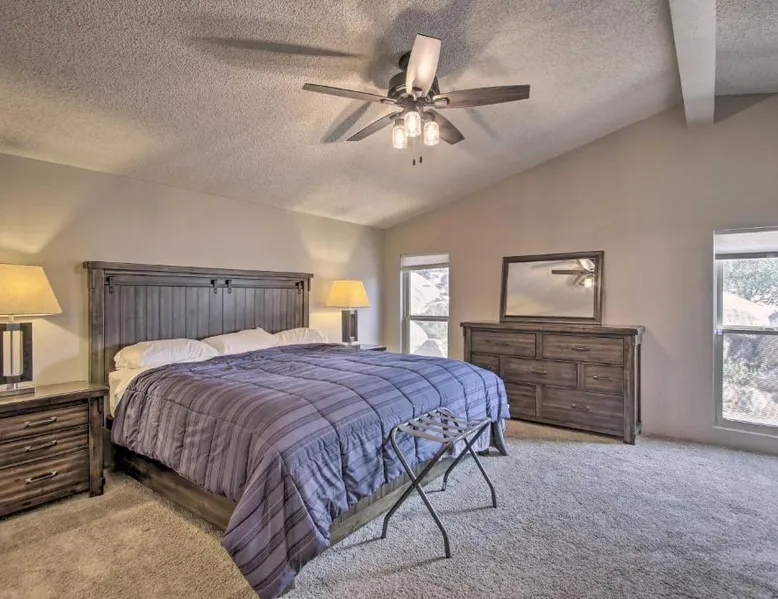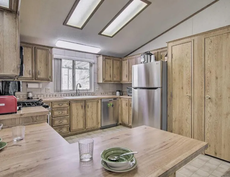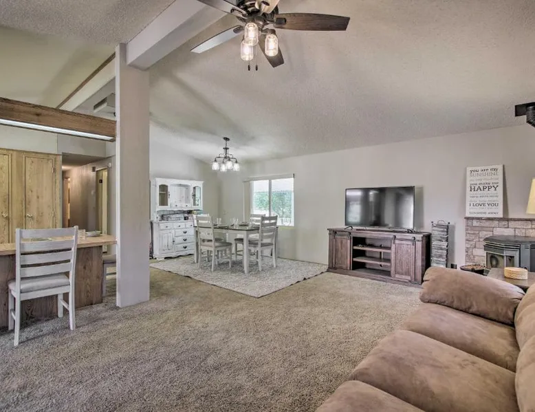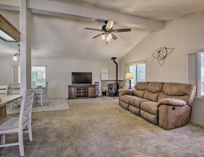 Spacious Accommodations: The Family-Friendly Home about 1 Mi to Kern River! in Wofford Heights offers a spacious holiday home with two bedrooms and two bathrooms. The living room provides ample space for relaxation. Wellness and Connectivity: Guests can enjoy a spa and wellness center and free WiFi throughout the property. The home features air-conditioning, a washing machine, and a fully equipped kitchen with modern appliances. Convenient Amenities: The property includes a fireplace, coffee machine, refrigerator, microwave, dishwasher, oven, stovetop, toaster, TV, and free toiletries. Paid on-site parking is available. Accessible Location: Meadows Field Airport is 52 mi away, providing convenient travel options. This holiday home's special feature is the fireplace. Featuring a private entrance, this air-conditioned holiday home consists of 1 living room, 2 separate bedrooms and 2 bathrooms with a bath and a shower. In the well-fitted kitchen, guests will find a stovetop, a refrigerator, a dishwasher and kitchenware. The spacious holiday home provides a washing machine, a coffee machine, a wardrobe, heating, as well as a flat-screen TV. The unit offers 3 beds.