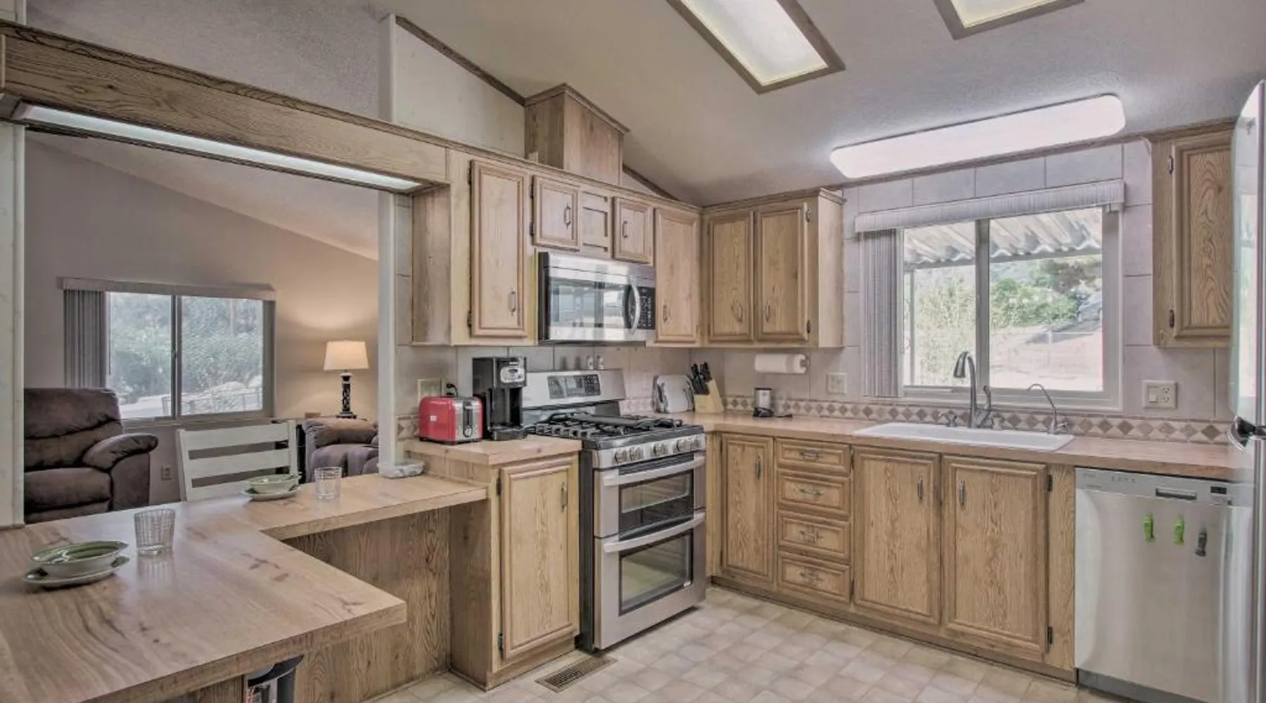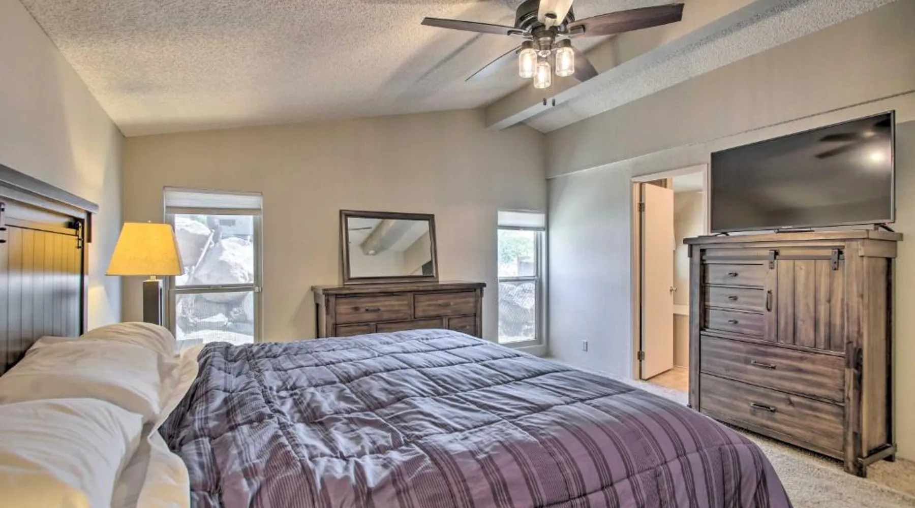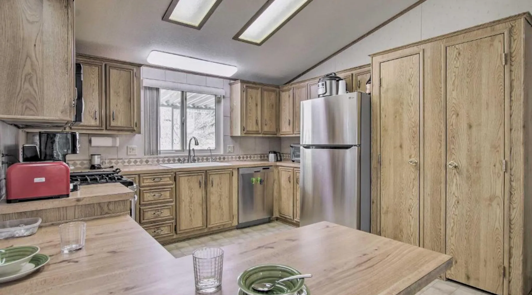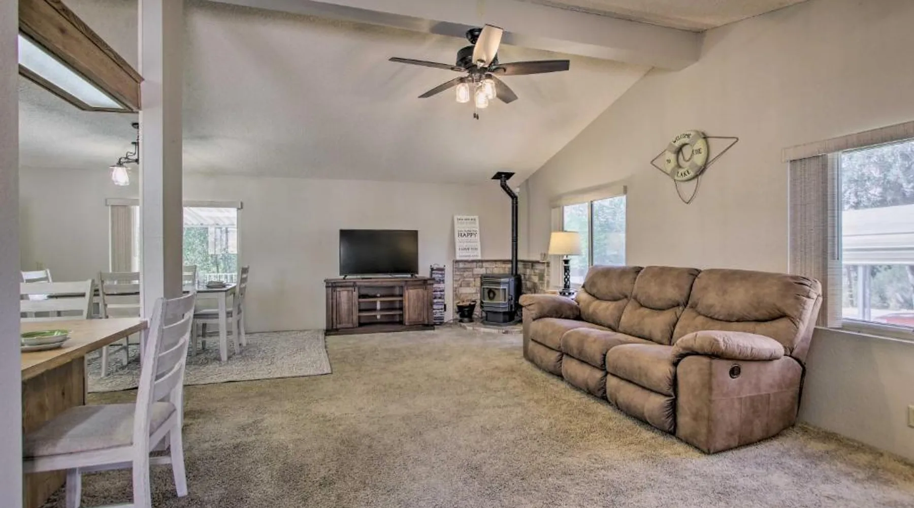 Spacious Accommodations: The Family-Friendly Home about 1 Mi to Kern River! in Wofford Heights offers a spacious holiday home with two bedrooms and two bathrooms. The living room provides ample space for relaxation. Wellness and Connectivity: Guests can enjoy a spa and wellness center and free WiFi throughout the property. The home features air-conditioning, a washing machine, and a fully equipped kitchen with modern appliances. Convenient Amenities: The property includes a fireplace, coffee machine, refrigerator, microwave, dishwasher, oven, stovetop, toaster, TV, and free toiletries. Paid on-site parking is available. Accessible Location: Meadows Field Airport is 52 mi away, providing convenient travel options. This holiday home's special feature is the fireplace. Featuring a private entrance, this air-conditioned holiday home consists of 1 living room, 2 separate bedrooms and 2 bathrooms with a bath and a shower. In the well-fitted kitchen, guests will find a stovetop, a refrigerator, a dishwasher and kitchenware. The spacious holiday home provides a washing machine, a coffee machine, a wardrobe, heating, as well as a flat-screen TV. The unit offers 3 beds.