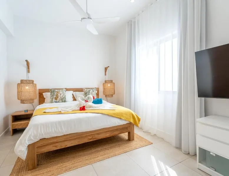 Beachfront Location: Oceanfront Getaway Grand Gaube in Grand Gaube offers direct beachfront access with stunning sea views. Guests can relax by the infinity swimming pool or enjoy the lush garden and terrace. Spacious Accommodations: The apartment features three bedrooms and three bathrooms, providing ample space for families. Each room is equipped with air-conditioning, a balcony, and a fully fitted kitchen. Amenities and Facilities: The property includes a tennis court, free WiFi, and free on-site private parking. Additional facilities include a elevator, tennis equipment hire, and family rooms. Nearby Attractions: Grand Gaube Beach is a 16-minute walk away, while Sir Seewoosagur Ramgoolam Botanical Garden and Sugar Museum are 11 mi distant. The Sir Seewoosagur Ramgoolam Airport is 45 mi from the apartment. Featuring a private entrance, this spacious apartment also is consisted of of 3 separate bedrooms, 3 bathrooms with a shower, a kitchen and a dining area. The well-equipped kitchen features a stovetop, a refrigerator, a dishwasher and kitchenware. The air-conditioned apartment offers a flat-screen TV, a washing machine, a tea and coffee maker, a wardrobe as well as sea views. The unit offers 3 beds.