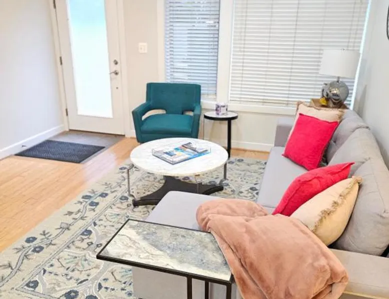 Spacious Accommodations: Chic 2 bedroom condo at 2121 in Washington offers a spacious environment with two bedrooms and a private bathroom. The property features a balcony with garden views, a fully equipped kitchen, and a dining area. Modern Amenities: Guests enjoy air-conditioning, a washing machine, and a work desk. The condo includes a patio, sofa bed, and soundproofing for added comfort. Additional amenities include a TV, microwave, dishwasher, and free toiletries. Prime Location: Located 7.5 mi from Ronald Reagan Washington National Airport and 1.2 mi from Walter E Washington Convention Center, the property is close to attractions such as the Phillips Collection (1.4 mi) and the National Mall (2.2 mi). An ice-skating rink is also nearby. Providing free toiletries, this twin/double room includes a private bathroom with a bath, a shower and a hairdryer. Guests can make meals in the kitchen that is equipped with a stovetop, a refrigerator, a dishwasher and kitchenware. The spacious air-conditioned twin/double room provides a flat-screen TV with cable channels, a washing machine, a private entrance, soundproof walls as well as garden views. The unit offers 2 beds.