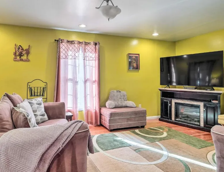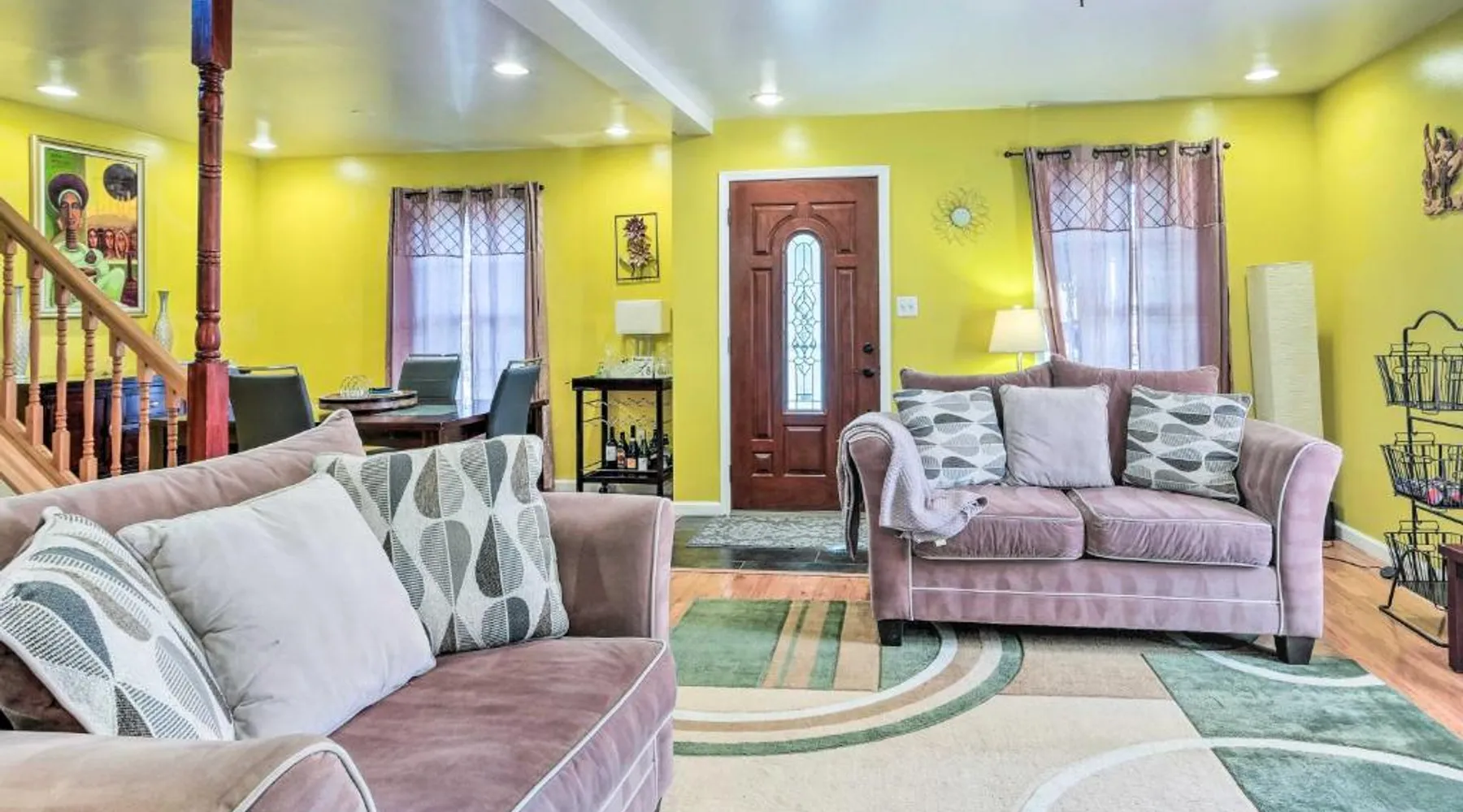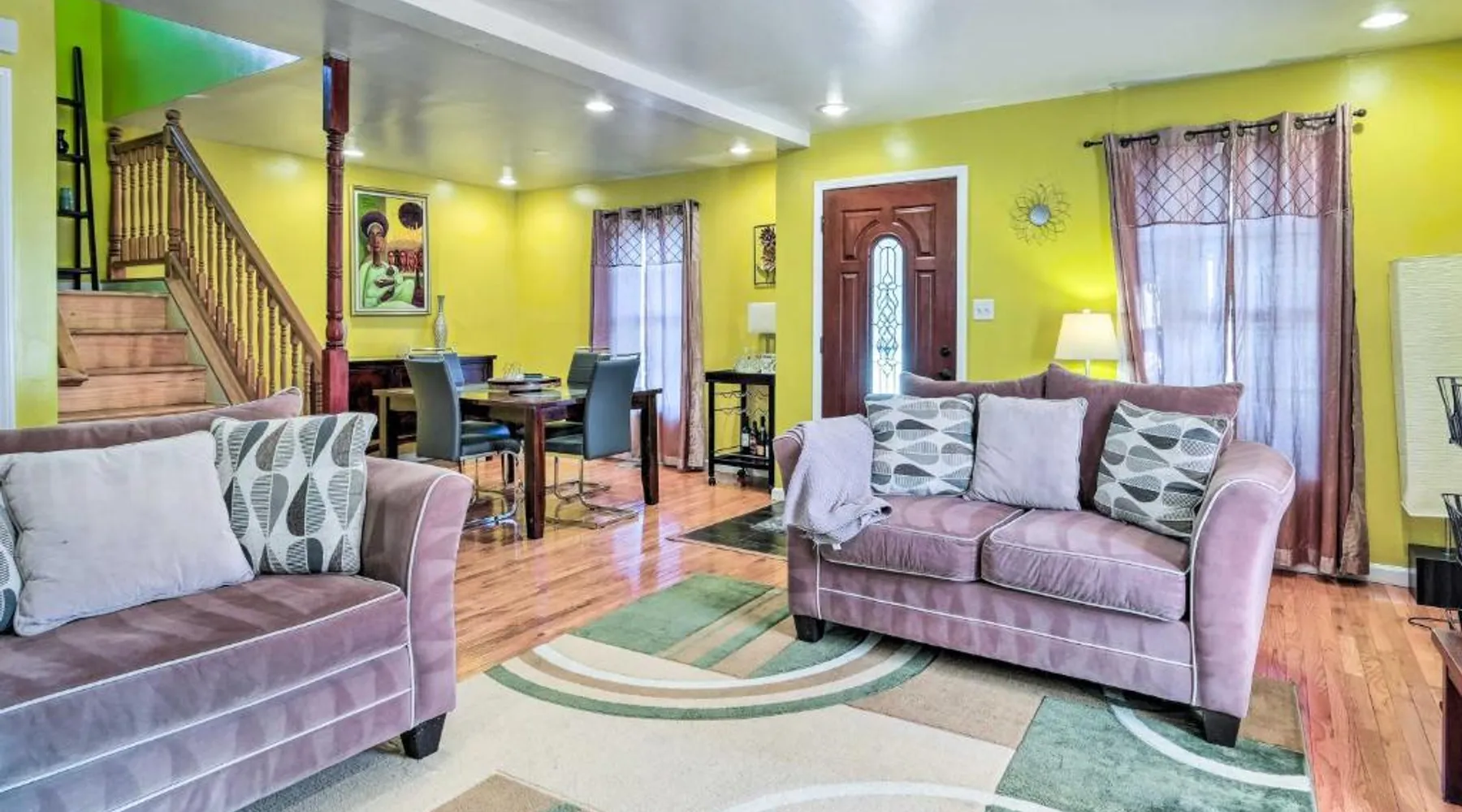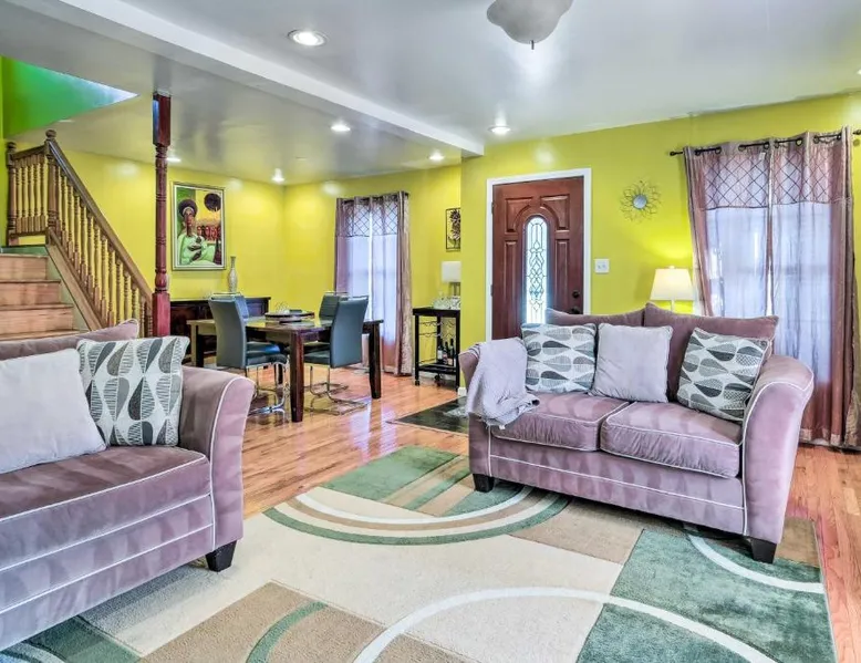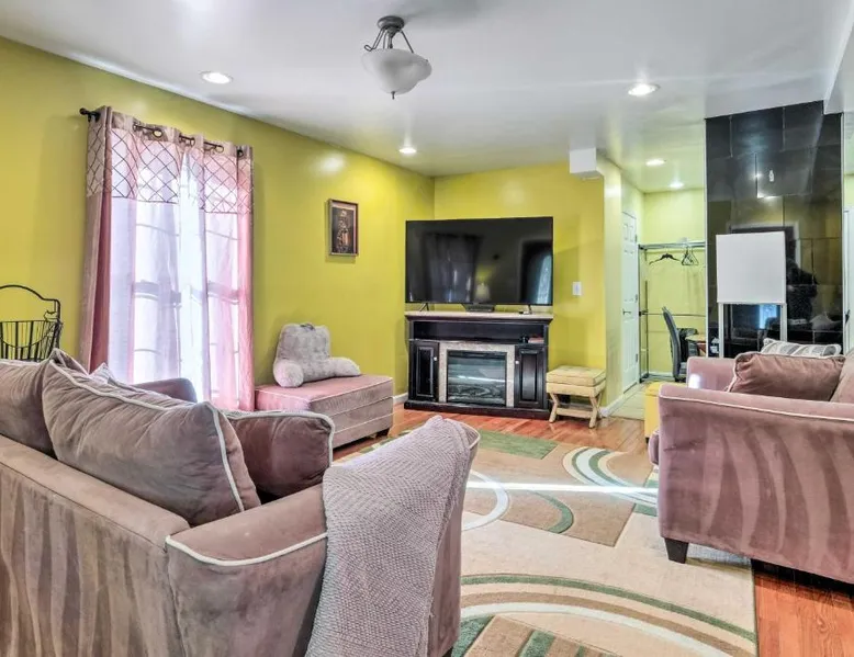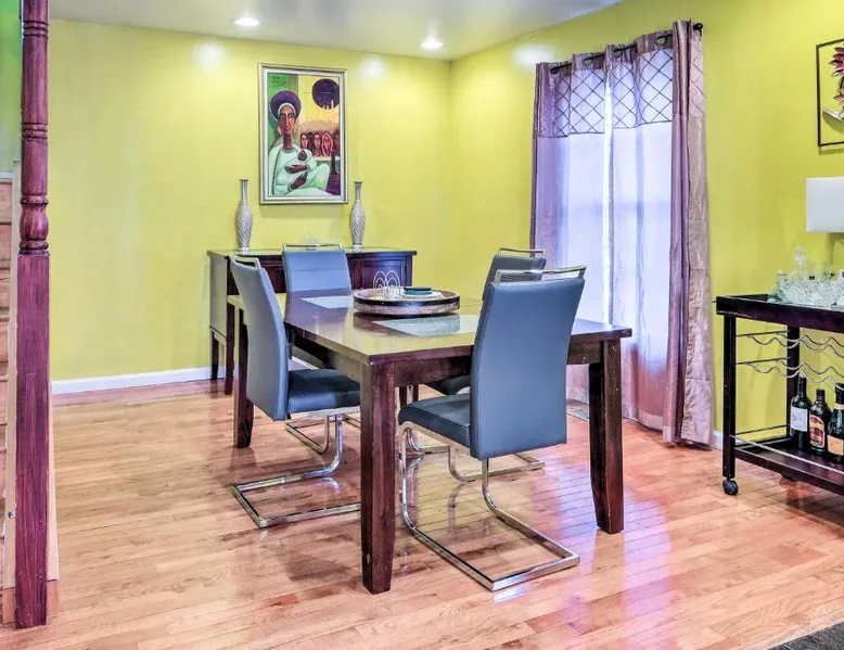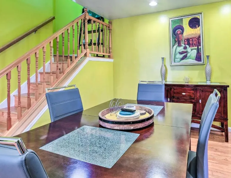 Spacious Accommodations: 5 Mi to National Mall Home in Washington DC offers a spacious holiday home with three bedrooms and three bathrooms. The property features a living room and a private entrance, ensuring comfort and privacy for all guests. Modern Amenities: Guests enjoy free WiFi, air-conditioning, and a hot tub. The fully equipped kitchen includes a coffee machine, refrigerator, microwave, dishwasher, oven, stovetop, and toaster. Additional amenities include a balcony and a TV. Convenient Location: Located 12 mi from Ronald Reagan Washington National Airport, the property is close to attractions such as Walter E Washington Convention Center and Washington Union Station, both 5 mi away. The National Mall is 5.6 mi from the home. Local Activities: An ice-skating rink is located in the surrounding area, providing entertainment for visitors during their stay. The hot tub is a top feature of this holiday home. Boasting a private entrance, this spacious holiday home also includes 1 living room, 3 separate bedrooms and 3 bathrooms with a bath. The well-equipped kitchen has a stovetop, a refrigerator, a dishwasher and kitchenware. Featuring a balcony, this holiday home also offers air conditioning, a coffee machine and a TV. The unit has 3 beds.