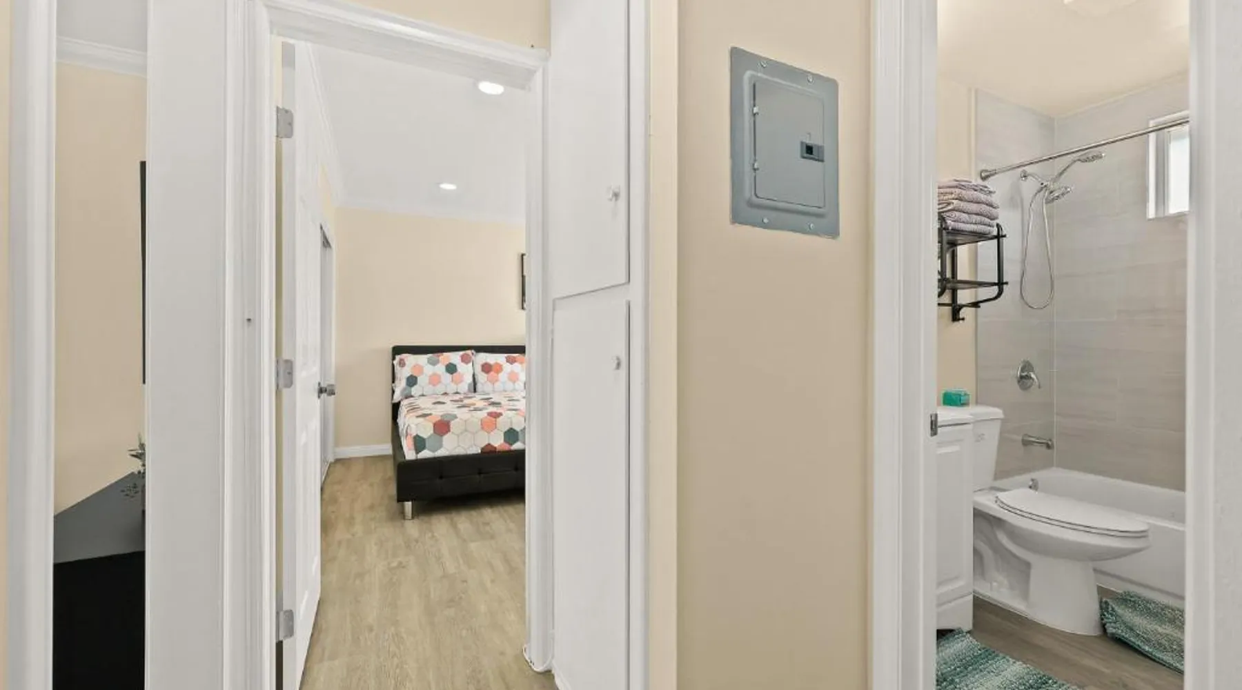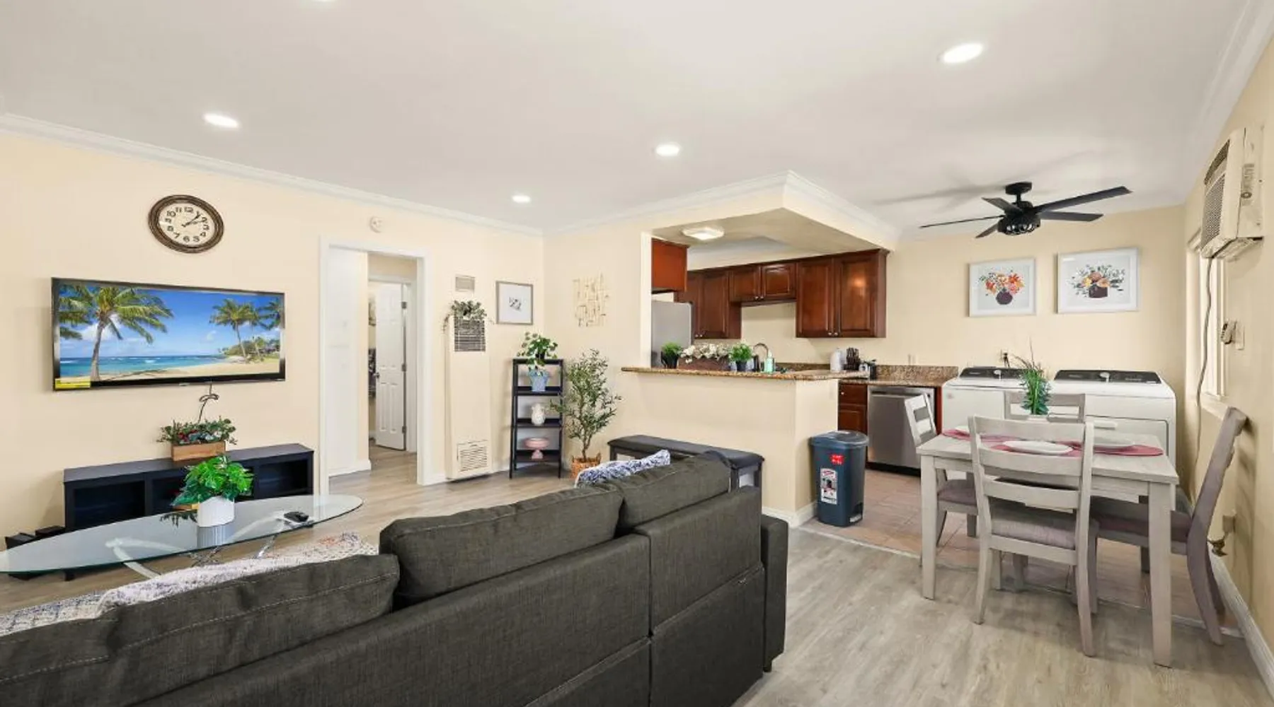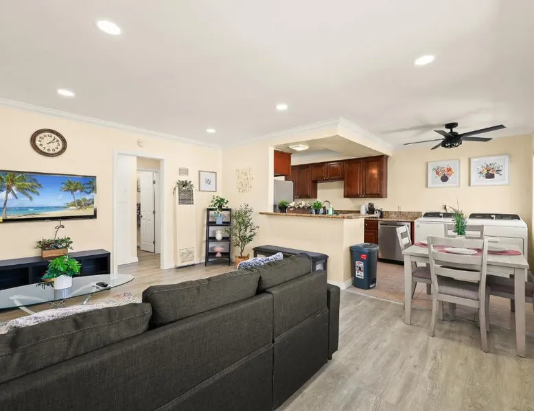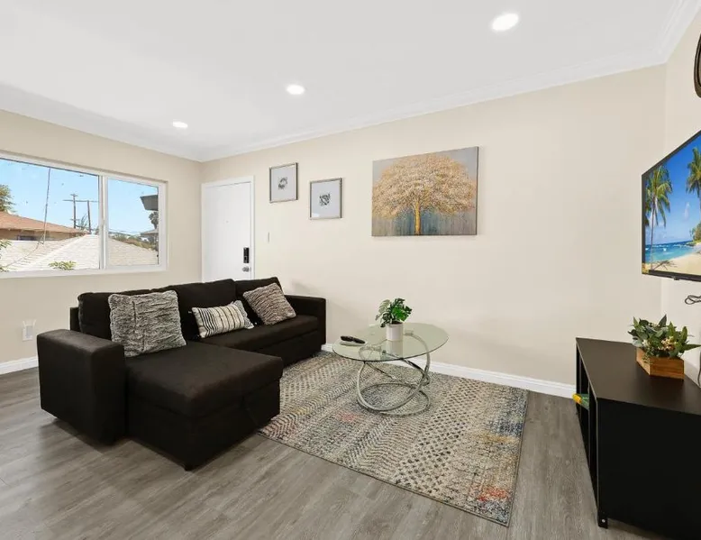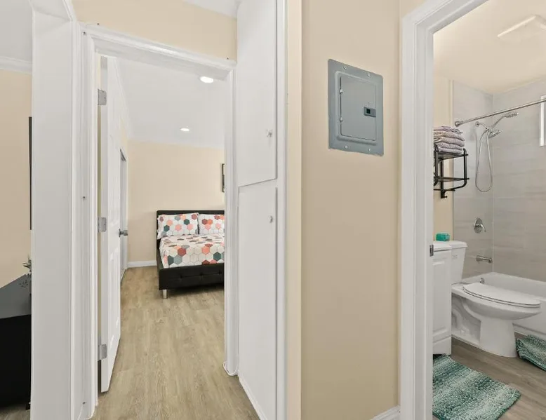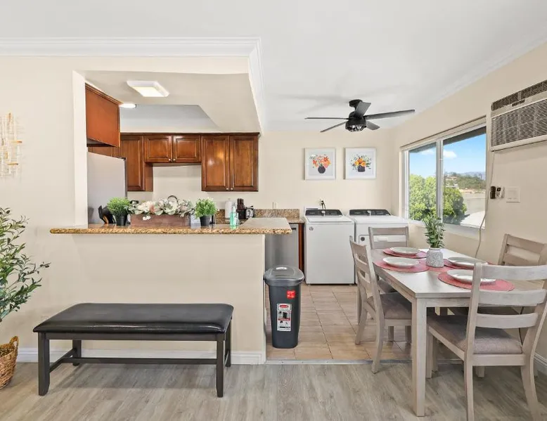 Spacious Holiday Home in Alhambra: Blissful Utopia near Downtown LA offers a spacious holiday home in Alhambra. The property features one bedroom and a living room, providing ample space for relaxation and comfort. Modern Amenities: Guests enjoy free WiFi, air-conditioning, and a fully equipped kitchen with a refrigerator, microwave, dishwasher, and oven. Additional amenities include a washing machine, dining area, and free on-site private parking. Convenient Location: Located 17 mi from Hollywood Burbank Airport, the property is near attractions such as La Union Station (5.6 mi), California Institute of Technology (6.8 mi), and Dodger Stadium (7.5 mi). Free toiletries and a hairdryer are provided for added comfort. Boasting a private entrance, this air-conditioned holiday home comes with 1 living room, 1 separate bedroom and 1 bathroom with a bath and a shower. Guests can make meals in the kitchen that features a stovetop, a refrigerator, a dishwasher and kitchenware. The spacious holiday home features a washing machine, a tea and coffee maker, a seating area, a dining area and a flat-screen TV. The unit has 3 beds.