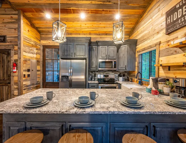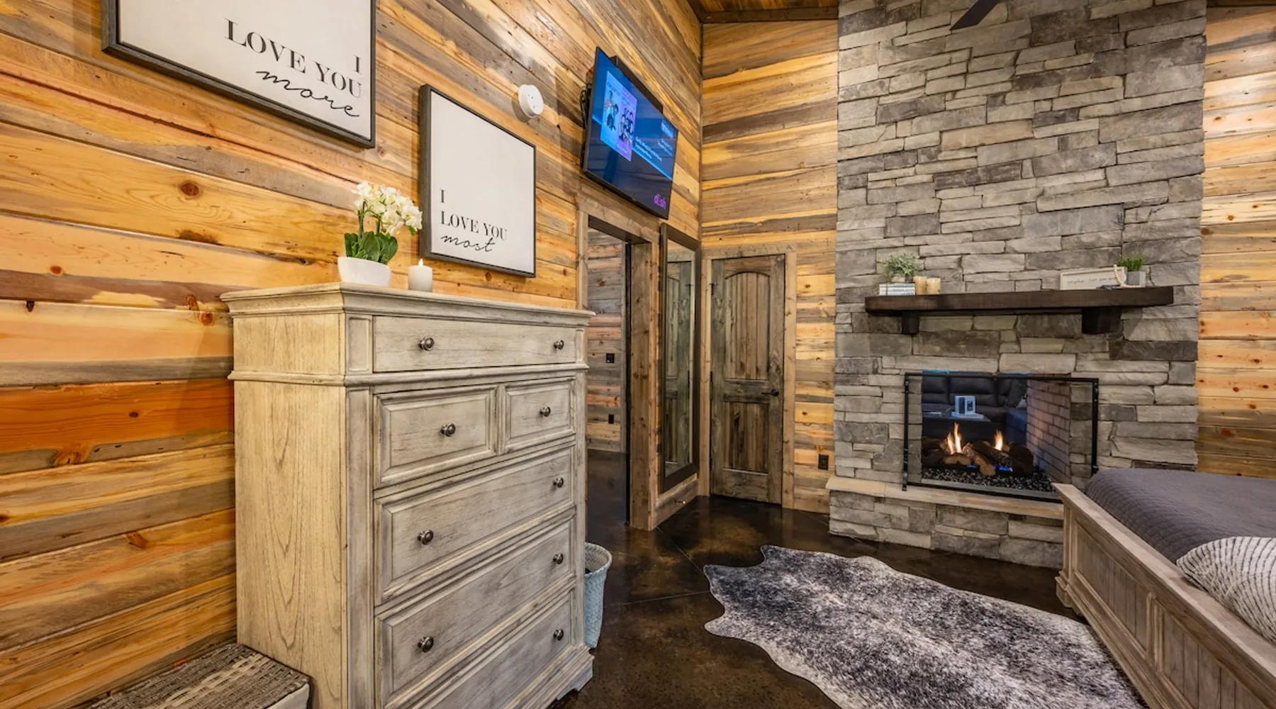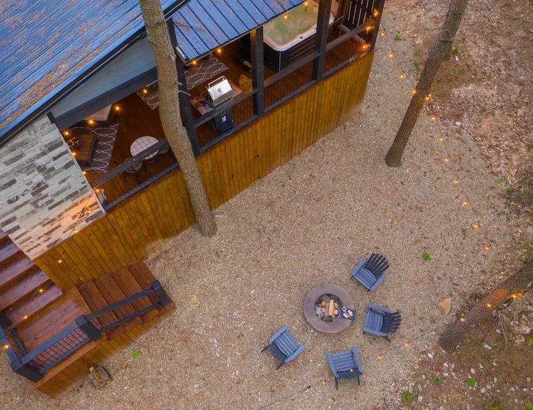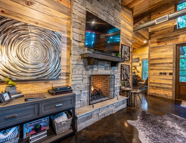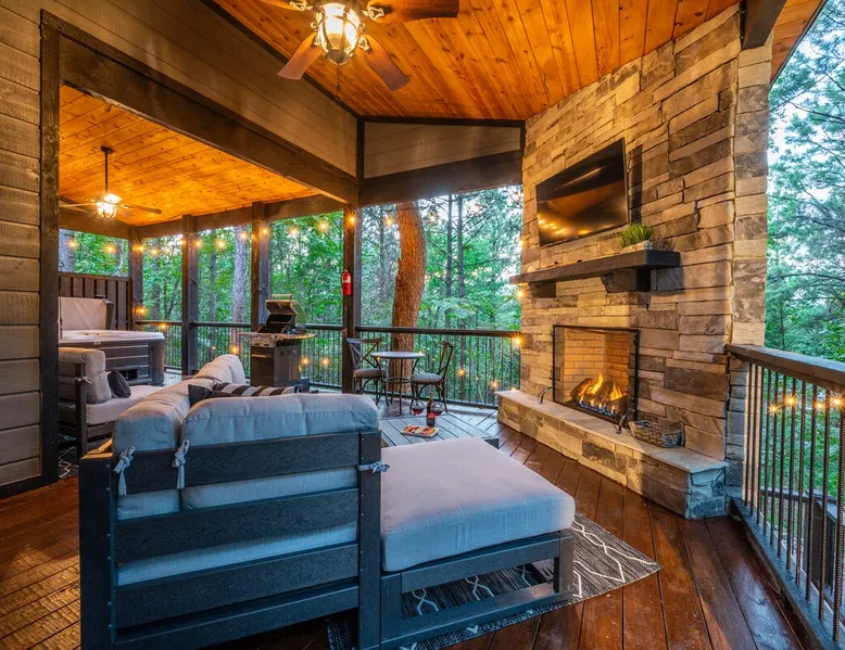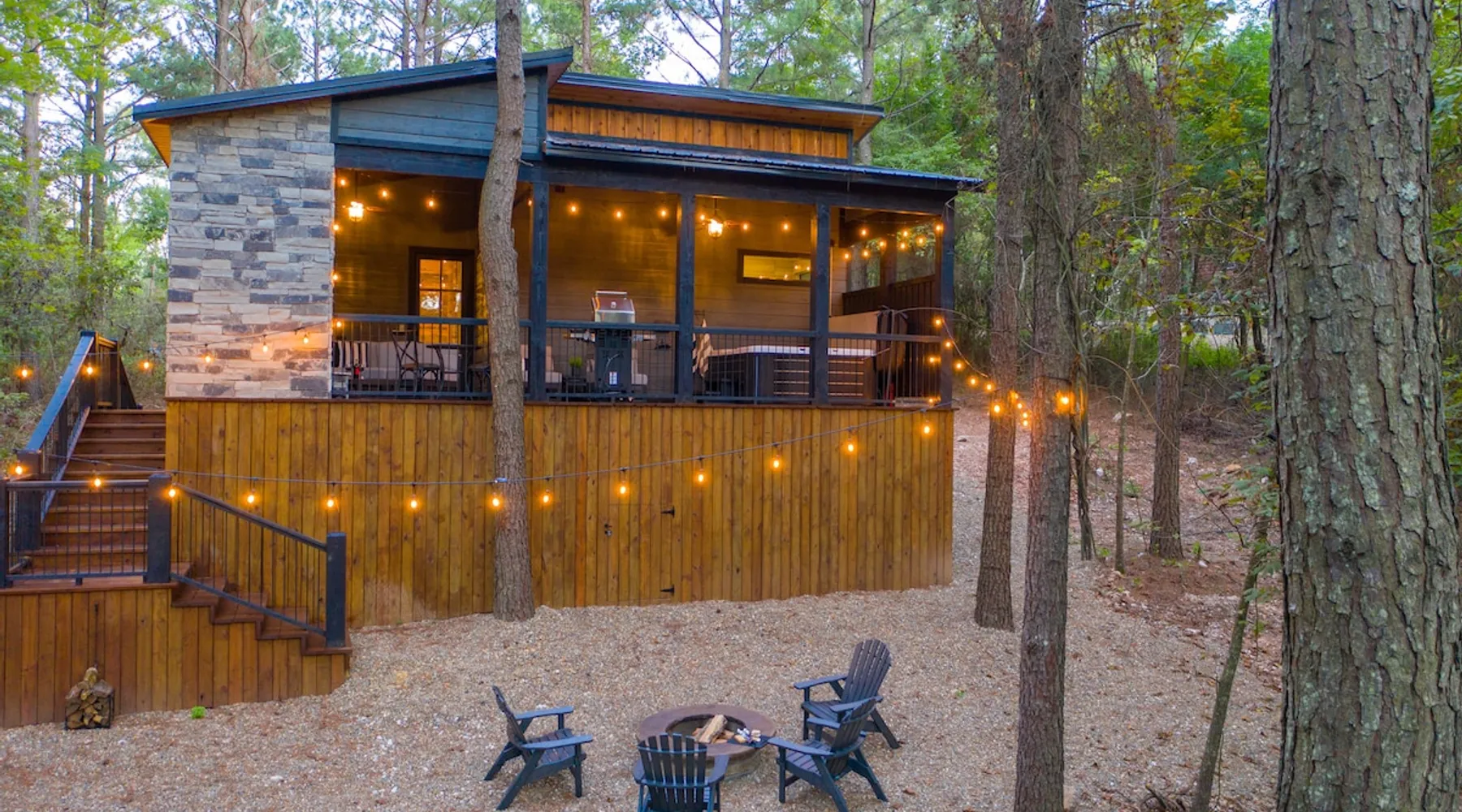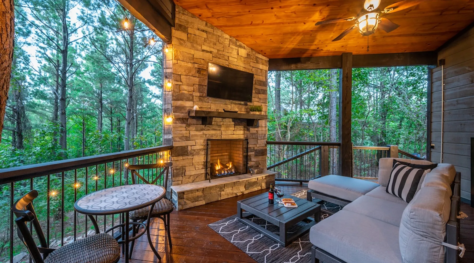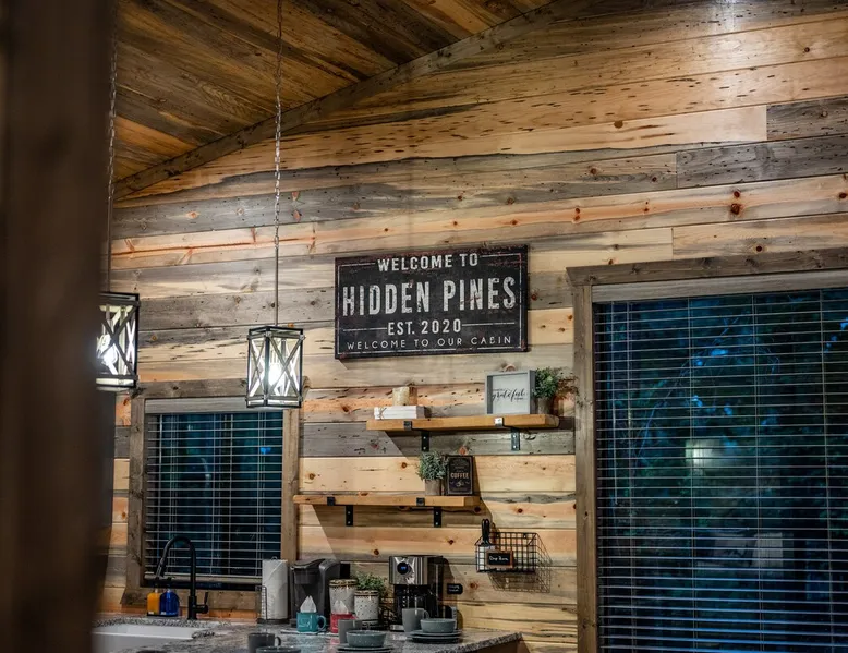 🏡 Welcome to Hidden Pines Tucked away beneath the towering pines of Broken Bow, Hidden Pines offers the perfect setting for a peaceful, romantic getaway. This cozy one-bedroom retreat is ideal for couples looking to reconnect, relax, and unwind in nature without sacrificing modern comforts. Whether you're celebrating a special occasion or just need a weekend away, Hidden Pines blends privacy, charm, and thoughtful touches into a truly unforgettable experience. The space 🛋️ Indoor Comforts Spacious sectional for snuggling up in front of the big-screen TV An electric double-sided fireplace that warms both the living room and bedroom Entertainment basket with cozy throw blankets, playing cards, DVDs, and a DVD player Dining table and kitchen island seating to enjoy meals together 🍽️ Fully Equipped Kitchen Full-size appliances, perfect for preparing breakfast in bed or a romantic dinner K-cup coffee maker & traditional drip pot for morning coffee options All dishware, cookware, utensils, and kitchen essentials included 🍽️ Master Bedroom Retreat King-size bed with plush linens and nightstands with ambient lighting Big-screen TV for relaxing movie nights Double-sided fireplace visible from bed Ensuite spa-inspired bathroom featuring: Soaker tub inside a walk-in shower Double vanity sinks 🌳 Outdoor Living Private hot tub Covered patio with a gas fireplace and big-screen TV Gas grill (propane provided) Outdoor dining for two Cornhole set for friendly competition Fire pit with seating—perfect for stargazing and s’mores 🐾 PET FRIENDLY 1 dog under 20lbs allowed $125 per pet fee 📌 General Information Full-size washer and dryer in laundry closet Free Wi-Fi: Gas fireplaces are available seasonally (October – May 15th) Surveillance: Exterior cameras face entrances only, monitored at check-in for occupancy compliance Maximum occupancy: 2 guests – NO EXCEPTIONS Guest access Guests have access to the entire cabin Other things to note It is located near all the best restaurants, activities, and park amenities. It is just a short drive to Broken Bow Lake, Beavers Bend State Park, popular hiking trails, restaurants, breweries, wineries, and downtown Hochatown, and access to all the outdoors activities you want – boating, hiking, fly-fishing, kayaking, zip-lining, ATV trails, horseback riding, Cedar Creek Golf Course, Choctaw Landing Casino, mini-golf, helicopter rides, mining for gold, train rides, go-carts, and a great petting zoo. Don’t forget these items when you come to visit: • Rain gear and light jackets (Our average rainfall is 55″-60″ each year). • We have beautiful scenic trails; good hiking boots are a must. • Water shoes for our vast shorelines and streams. • Insect repellent, sunblock, and other first-aid supplies. • Coffee and filters – enjoy this while sitting on the deck in the early morning. • Condiments --A starter supply of coffee/filters, salt/pepper, paper towels, toilet paper, bath soap, dish soap, dishwasher tablets, trash bags, and laundry soap is provided. Still, guests may need to bring additional supplies. If we are missing something or you have a question we haven't answered, please feel free to reach out to us directly at Bravo Cabin Rentals and we will personally respond as soon as possible. We look forward to making your next vacation in Broken Bow/Hochatown one you won’t forget!