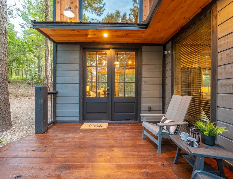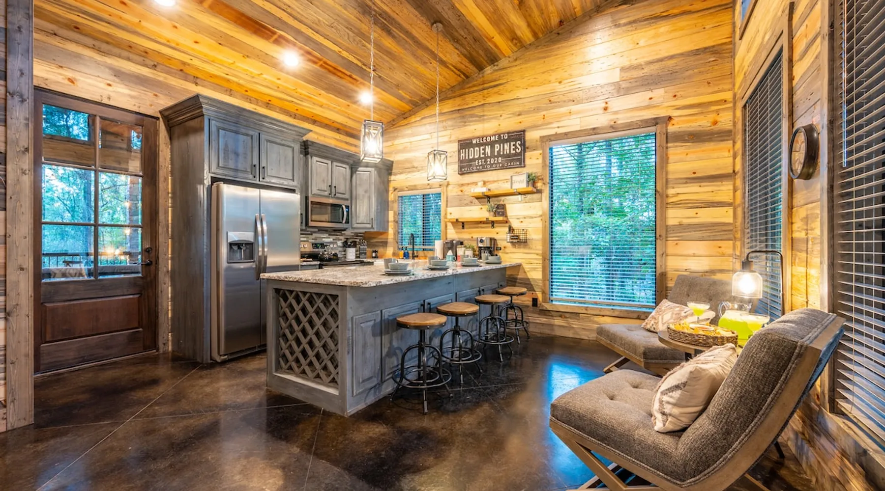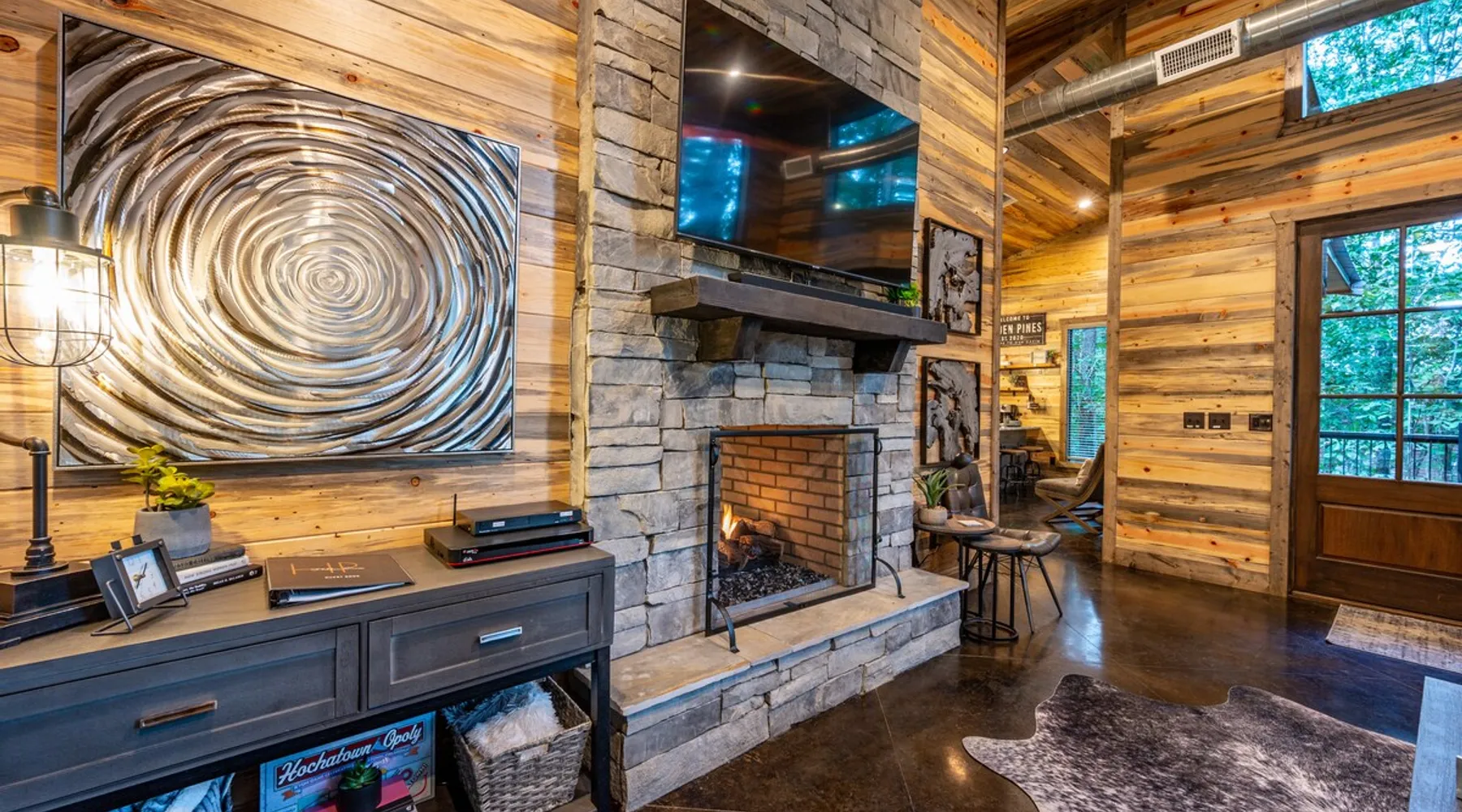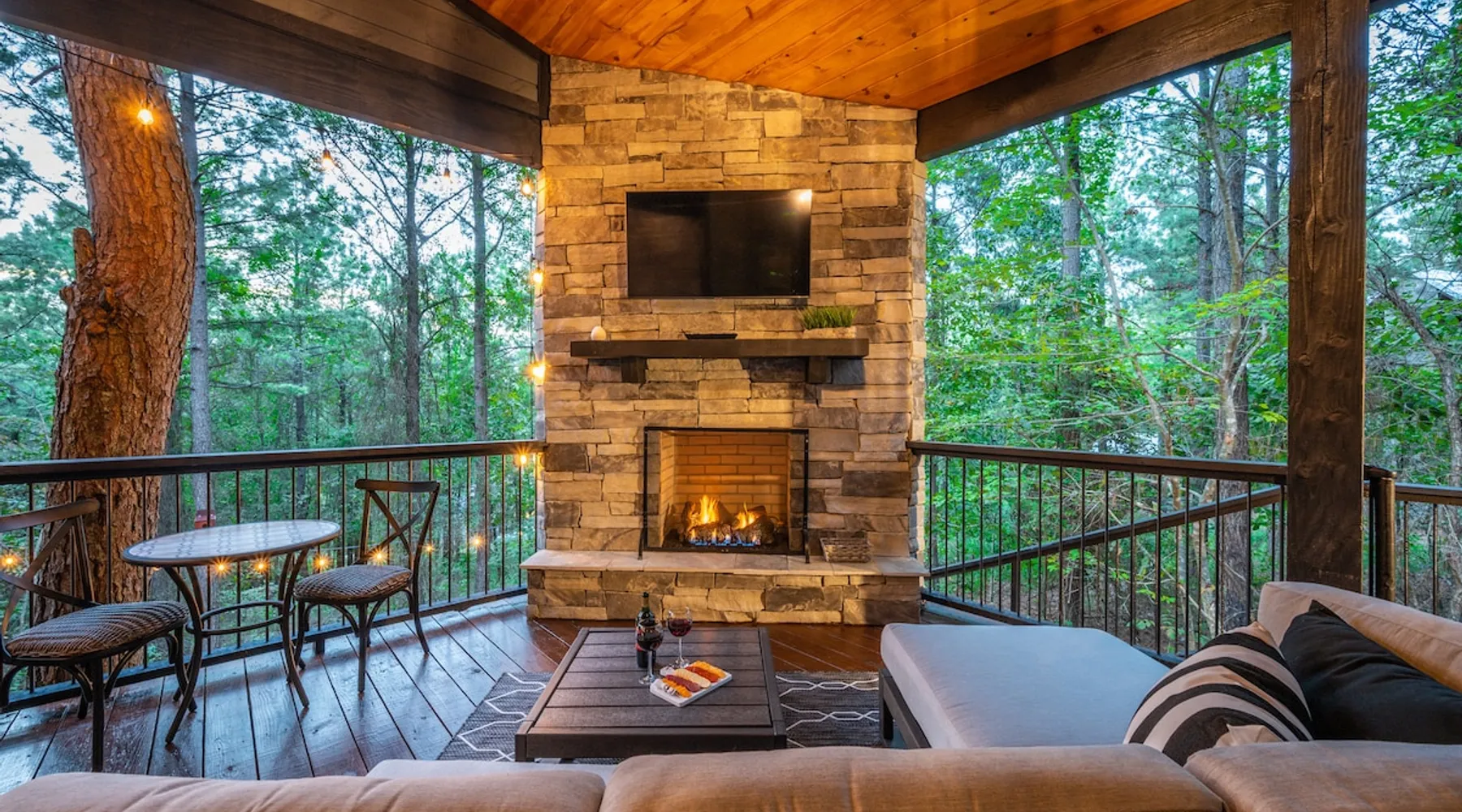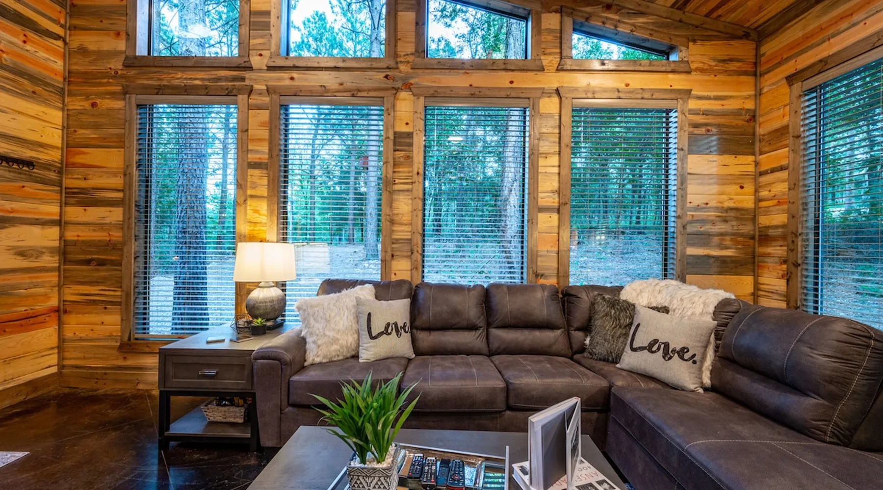 🏡 Welcome to Hidden Pines Tucked away beneath the towering pines of Broken Bow, Hidden Pines offers the perfect setting for a peaceful, romantic getaway. This cozy one-bedroom retreat is ideal for couples looking to reconnect, relax, and unwind in nature without sacrificing modern comforts. Whether you're celebrating a special occasion or just need a weekend away, Hidden Pines blends privacy, charm, and thoughtful touches into a truly unforgettable experience. The space 🛋️ Indoor Comforts Spacious sectional for snuggling up in front of the big-screen TV An electric double-sided fireplace that warms both the living room and bedroom Entertainment basket with cozy throw blankets, playing cards, DVDs, and a DVD player Dining table and kitchen island seating to enjoy meals together 🍽️ Fully Equipped Kitchen Full-size appliances, perfect for preparing breakfast in bed or a romantic dinner K-cup coffee maker & traditional drip pot for morning coffee options All dishware, cookware, utensils, and kitchen essentials included 🍽️ Master Bedroom Retreat King-size bed with plush linens and nightstands with ambient lighting Big-screen TV for relaxing movie nights Double-sided fireplace visible from bed Ensuite spa-inspired bathroom featuring: Soaker tub inside a walk-in shower Double vanity sinks 🌳 Outdoor Living Private hot tub Covered patio with a gas fireplace and big-screen TV Gas grill (propane provided) Outdoor dining for two Cornhole set for friendly competition Fire pit with seating—perfect for stargazing and s’mores 🐾 PET FRIENDLY 1 dog under 20lbs allowed $125 per pet fee 📌 General Information Full-size washer and dryer in laundry closet Free Wi-Fi: Gas fireplaces are available seasonally (October – May 15th) Surveillance: Exterior cameras face entrances only, monitored at check-in for occupancy compliance Maximum occupancy: 2 guests – NO EXCEPTIONS Guest access Guests have access to the entire cabin Other things to note It is located near all the best restaurants, activities, and park amenities. It is just a short drive to Broken Bow Lake, Beavers Bend State Park, popular hiking trails, restaurants, breweries, wineries, and downtown Hochatown, and access to all the outdoors activities you want – boating, hiking, fly-fishing, kayaking, zip-lining, ATV trails, horseback riding, Cedar Creek Golf Course, Choctaw Landing Casino, mini-golf, helicopter rides, mining for gold, train rides, go-carts, and a great petting zoo. Don’t forget these items when you come to visit: • Rain gear and light jackets (Our average rainfall is 55″-60″ each year). • We have beautiful scenic trails; good hiking boots are a must. • Water shoes for our vast shorelines and streams. • Insect repellent, sunblock, and other first-aid supplies. • Coffee and filters – enjoy this while sitting on the deck in the early morning. • Condiments --A starter supply of coffee/filters, salt/pepper, paper towels, toilet paper, bath soap, dish soap, dishwasher tablets, trash bags, and laundry soap is provided. Still, guests may need to bring additional supplies. If we are missing something or you have a question we haven't answered, please feel free to reach out to us directly at Bravo Cabin Rentals and we will personally respond as soon as possible. We look forward to making your next vacation in Broken Bow/Hochatown one you won’t forget!