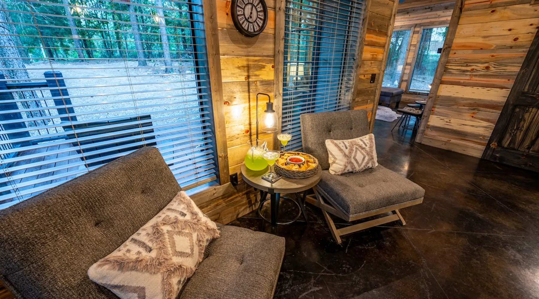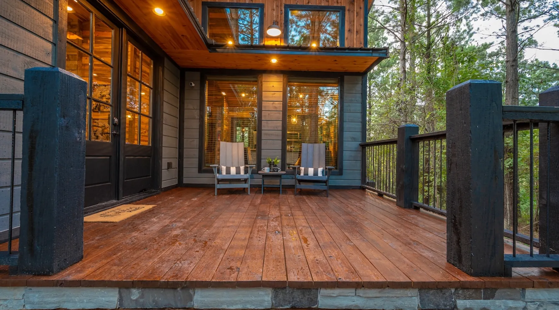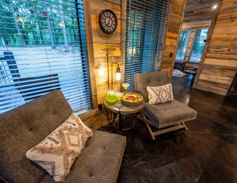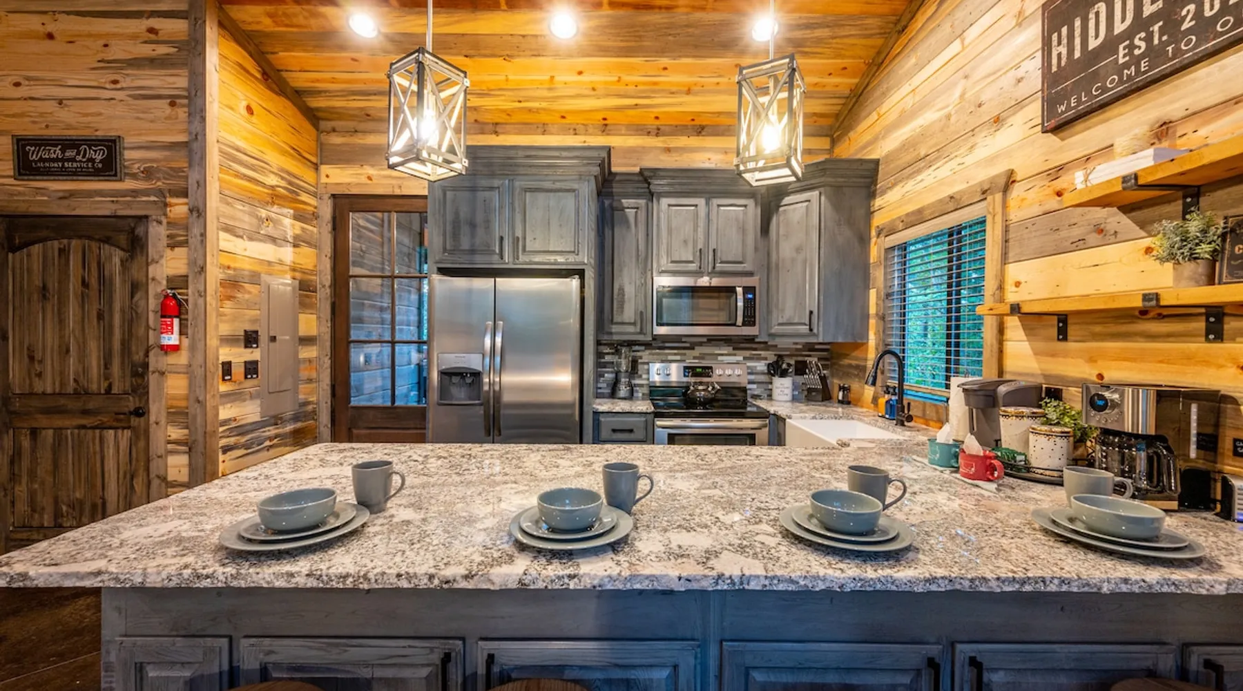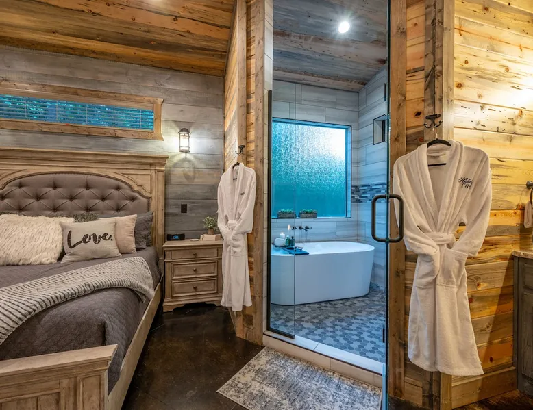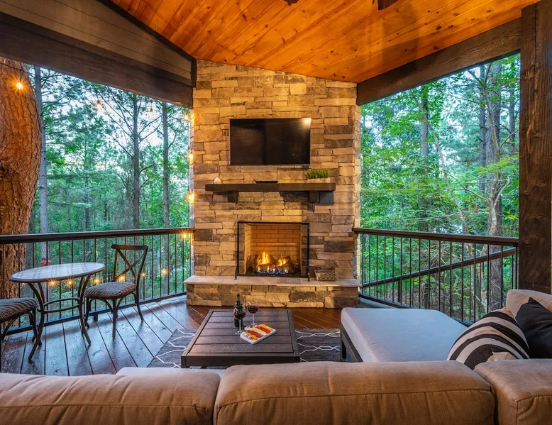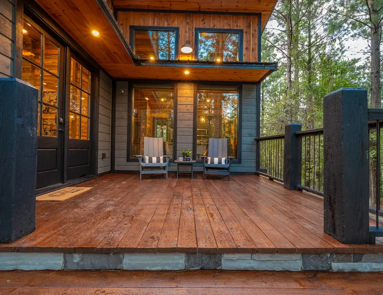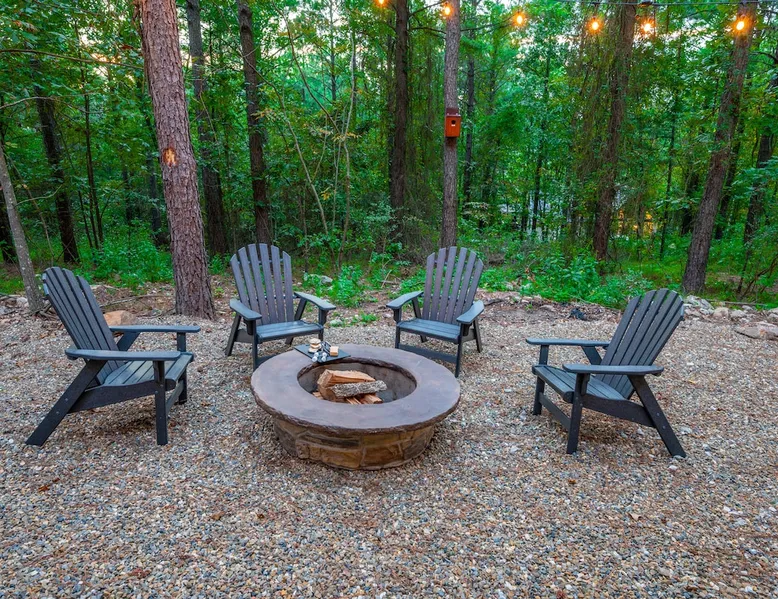 🏡 Welcome to Hidden Pines Tucked away beneath the towering pines of Broken Bow, Hidden Pines offers the perfect setting for a peaceful, romantic getaway. This cozy one-bedroom retreat is ideal for couples looking to reconnect, relax, and unwind in nature without sacrificing modern comforts. Whether you're celebrating a special occasion or just need a weekend away, Hidden Pines blends privacy, charm, and thoughtful touches into a truly unforgettable experience. The space 🛋️ Indoor Comforts Spacious sectional for snuggling up in front of the big-screen TV An electric double-sided fireplace that warms both the living room and bedroom Entertainment basket with cozy throw blankets, playing cards, DVDs, and a DVD player Dining table and kitchen island seating to enjoy meals together 🍽️ Fully Equipped Kitchen Full-size appliances, perfect for preparing breakfast in bed or a romantic dinner K-cup coffee maker & traditional drip pot for morning coffee options All dishware, cookware, utensils, and kitchen essentials included 🍽️ Master Bedroom Retreat King-size bed with plush linens and nightstands with ambient lighting Big-screen TV for relaxing movie nights Double-sided fireplace visible from bed Ensuite spa-inspired bathroom featuring: Soaker tub inside a walk-in shower Double vanity sinks 🌳 Outdoor Living Private hot tub Covered patio with a gas fireplace and big-screen TV Gas grill (propane provided) Outdoor dining for two Cornhole set for friendly competition Fire pit with seating—perfect for stargazing and s’mores 🐾 PET FRIENDLY 1 dog under 20lbs allowed $125 per pet fee 📌 General Information Full-size washer and dryer in laundry closet Free Wi-Fi: Gas fireplaces are available seasonally (October – May 15th) Surveillance: Exterior cameras face entrances only, monitored at check-in for occupancy compliance Maximum occupancy: 2 guests – NO EXCEPTIONS Guest access Guests have access to the entire cabin Other things to note It is located near all the best restaurants, activities, and park amenities. It is just a short drive to Broken Bow Lake, Beavers Bend State Park, popular hiking trails, restaurants, breweries, wineries, and downtown Hochatown, and access to all the outdoors activities you want – boating, hiking, fly-fishing, kayaking, zip-lining, ATV trails, horseback riding, Cedar Creek Golf Course, Choctaw Landing Casino, mini-golf, helicopter rides, mining for gold, train rides, go-carts, and a great petting zoo. Don’t forget these items when you come to visit: • Rain gear and light jackets (Our average rainfall is 55″-60″ each year). • We have beautiful scenic trails; good hiking boots are a must. • Water shoes for our vast shorelines and streams. • Insect repellent, sunblock, and other first-aid supplies. • Coffee and filters – enjoy this while sitting on the deck in the early morning. • Condiments --A starter supply of coffee/filters, salt/pepper, paper towels, toilet paper, bath soap, dish soap, dishwasher tablets, trash bags, and laundry soap is provided. Still, guests may need to bring additional supplies. If we are missing something or you have a question we haven't answered, please feel free to reach out to us directly at Bravo Cabin Rentals and we will personally respond as soon as possible. We look forward to making your next vacation in Broken Bow/Hochatown one you won’t forget!