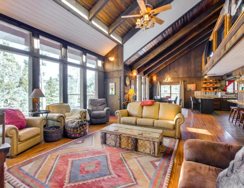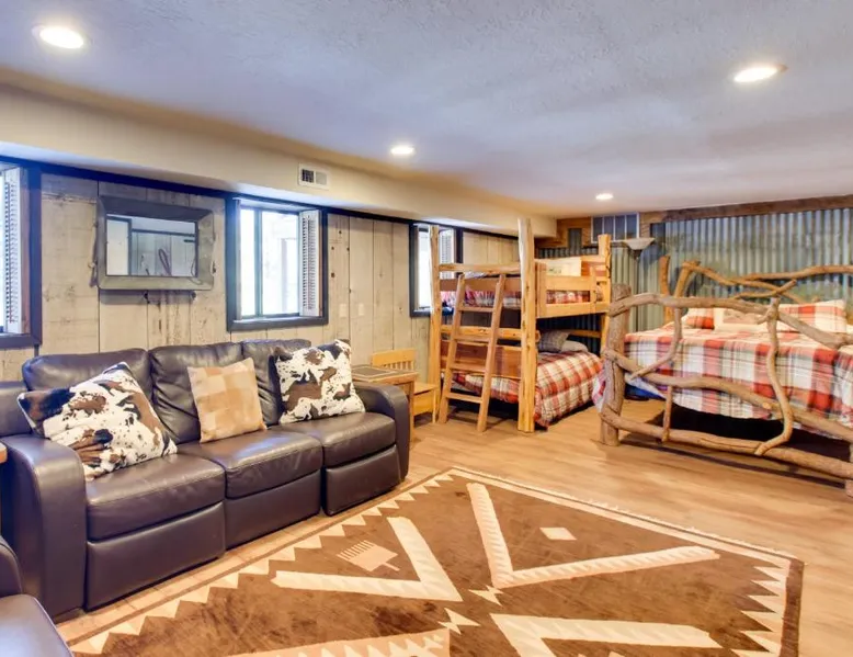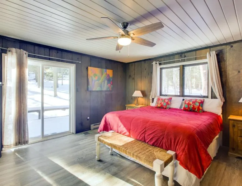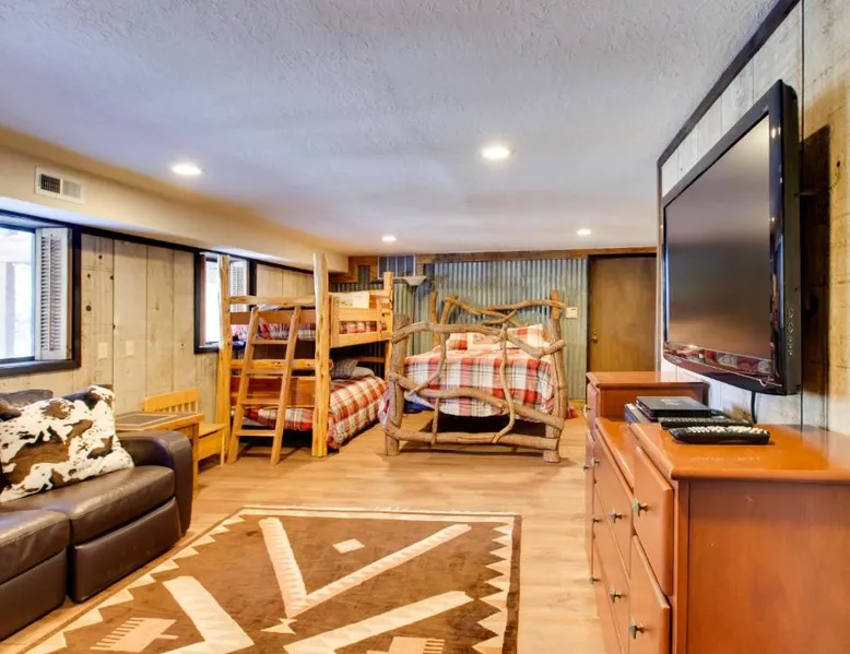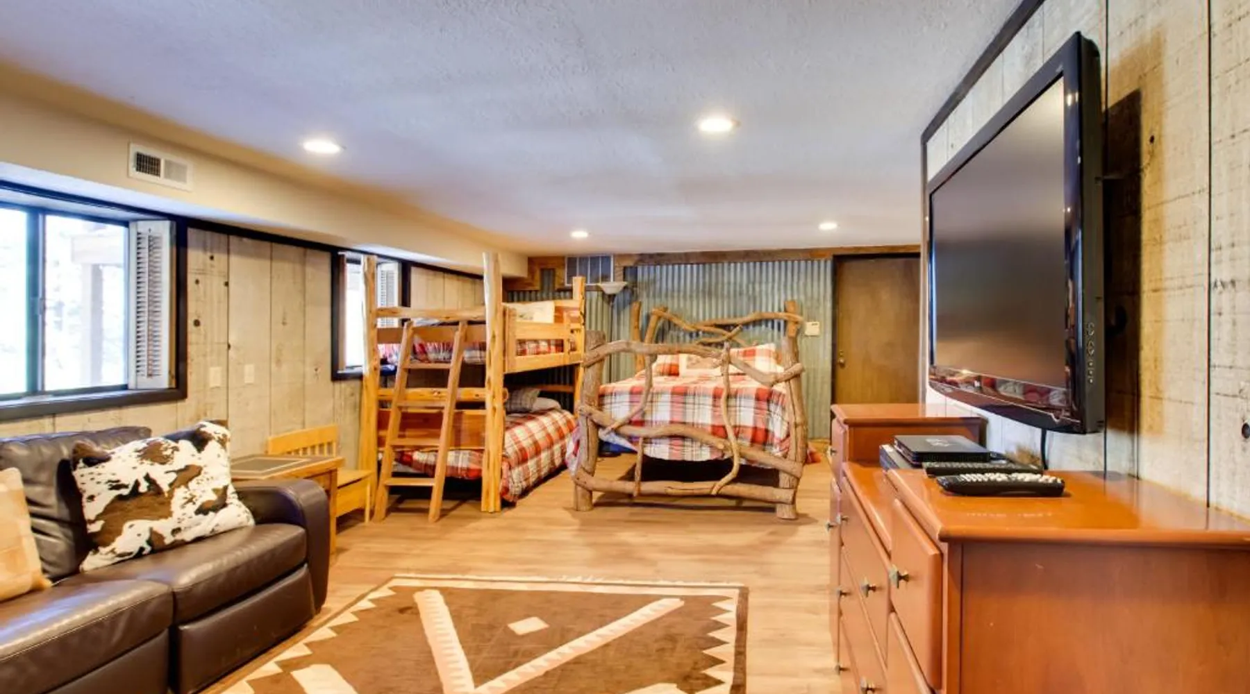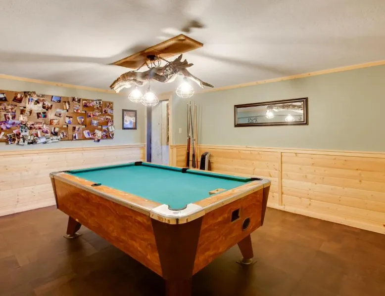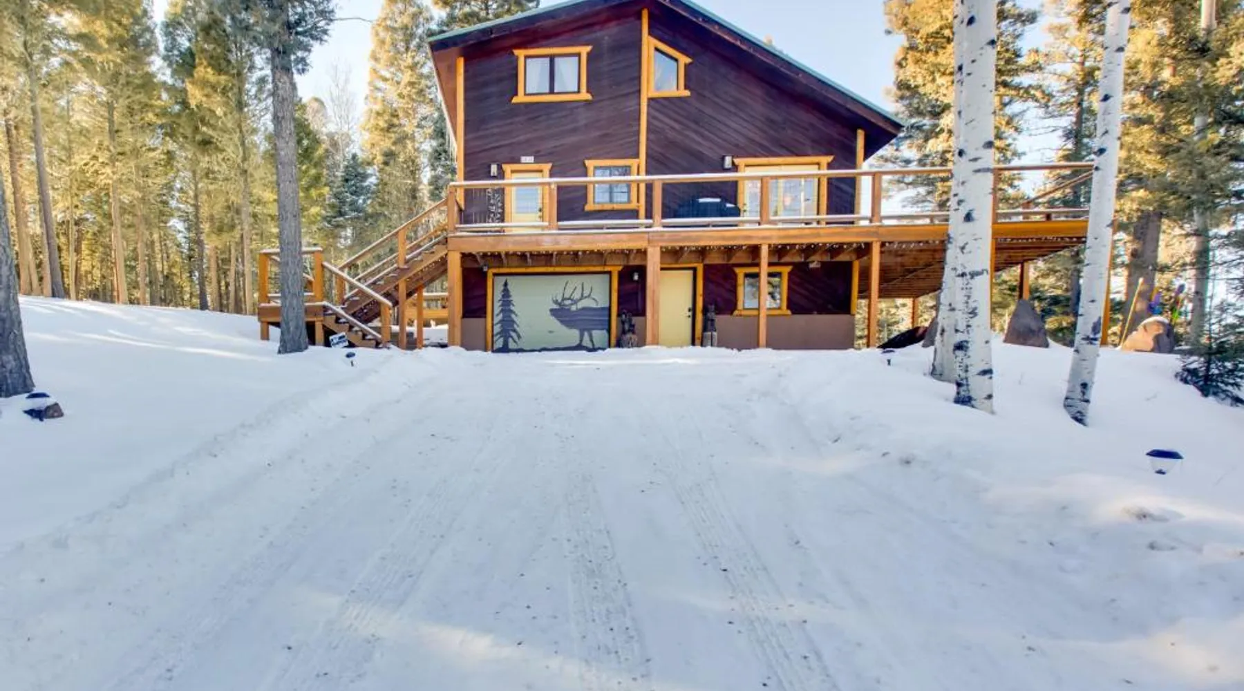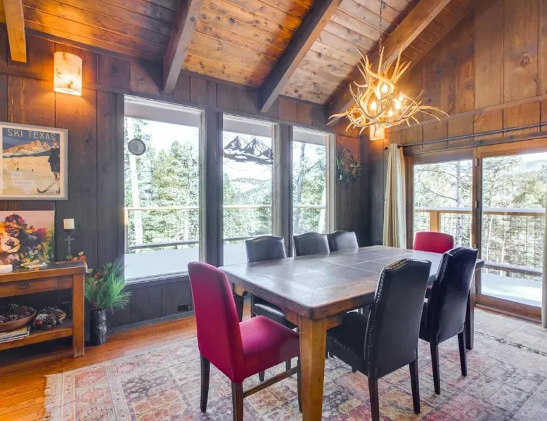 Spacious Accommodations: Angel Fire Cabin with Game Room offers a spacious holiday home in Angel Fire, United States. The property features five bedrooms and four bathrooms, ensuring ample space for all guests. Modern Amenities: Guests enjoy free WiFi, a games room, and a fully equipped kitchen with a balcony. Additional amenities include a washing machine, fireplace, and a private entrance. Convenient Location: Located 35 mi from Taos Regional Airport, the property is 4 mi from Angel Fire Ski Resort. Nearby attractions include Red River Ski Resort and Sipapu Ski Resort. This holiday home's standout feature is the fireplace. This spacious holiday home is consisted of of 1 living room, 5 separate bedrooms and 4 bathrooms with a bath and free toiletries. In the well-fitted kitchen, guests will find a stovetop, a refrigerator, a dishwasher and kitchenware. This holiday home features a washing machine, a private entrance, a flat-screen TV with cable channels and a balcony. The unit offers 10 beds.