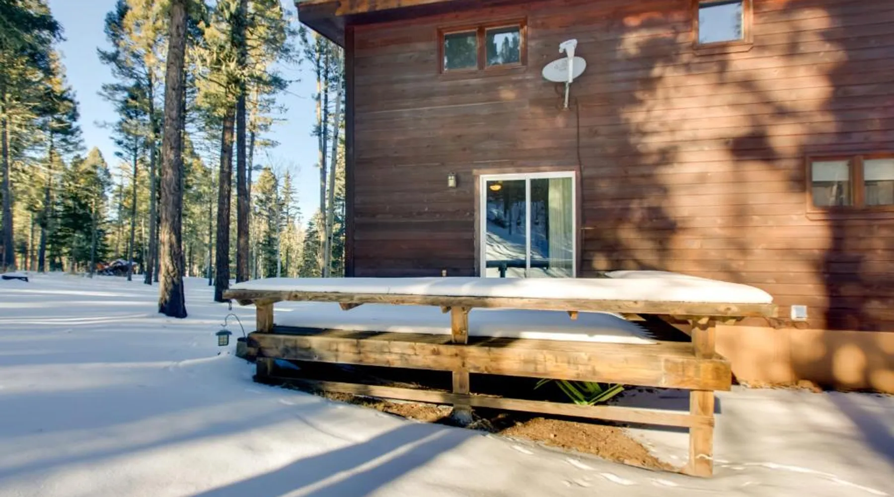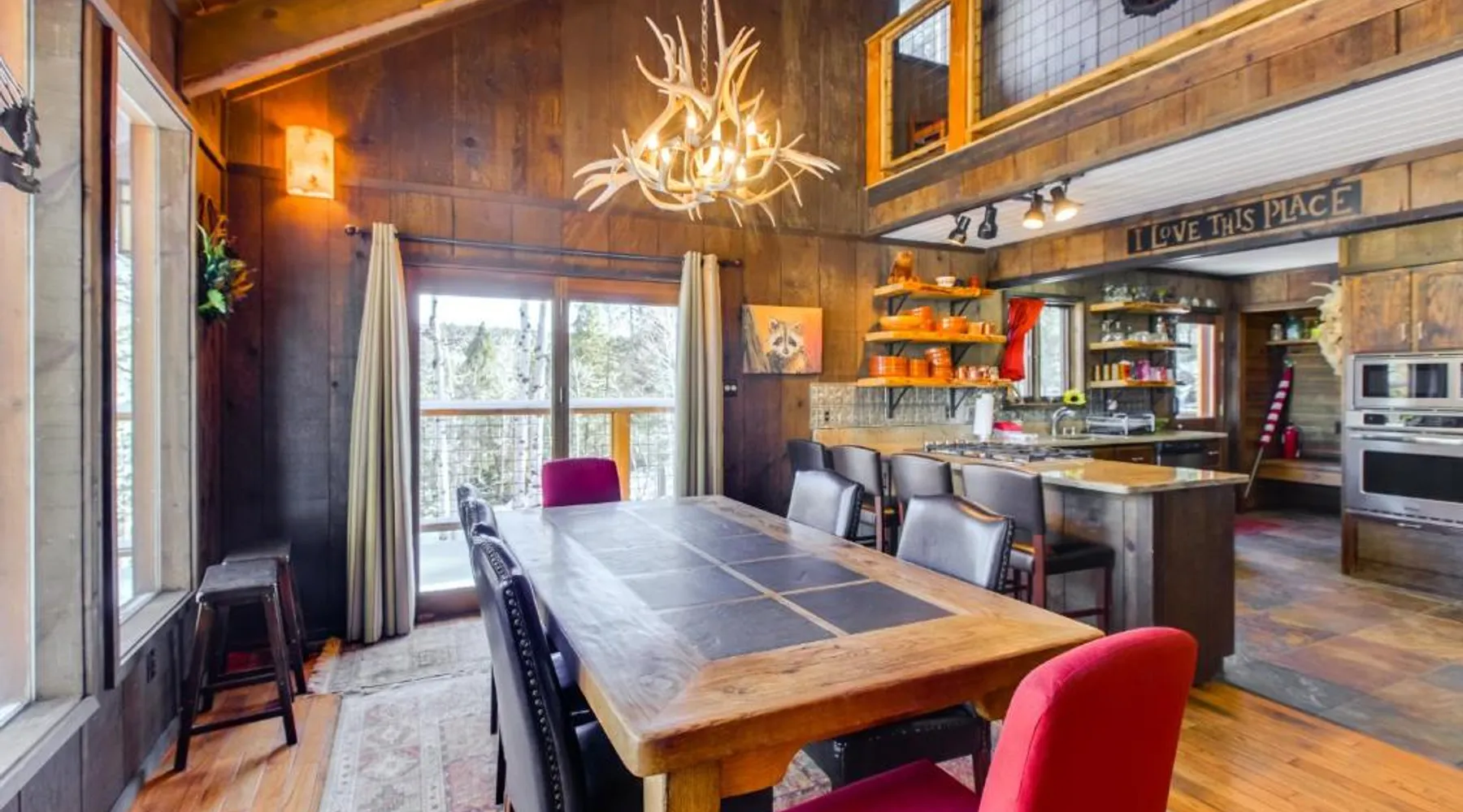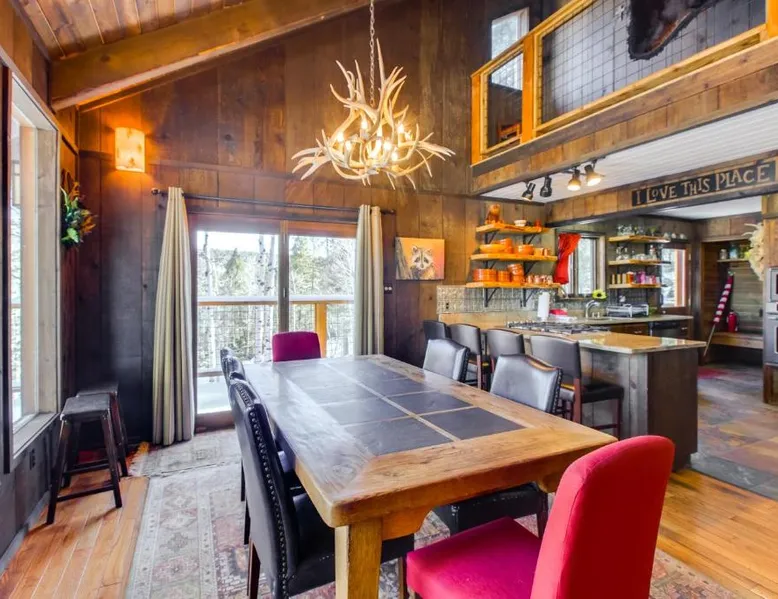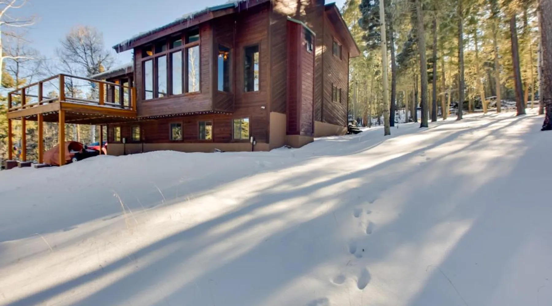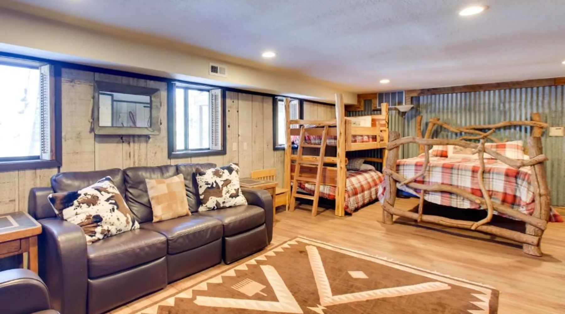 Spacious Accommodations: Angel Fire Cabin with Game Room offers a spacious holiday home in Angel Fire, United States. The property features five bedrooms and four bathrooms, ensuring ample space for all guests. Modern Amenities: Guests enjoy free WiFi, a games room, and a fully equipped kitchen with a balcony. Additional amenities include a washing machine, fireplace, and a private entrance. Convenient Location: Located 35 mi from Taos Regional Airport, the property is 4 mi from Angel Fire Ski Resort. Nearby attractions include Red River Ski Resort and Sipapu Ski Resort. This holiday home's standout feature is the fireplace. This spacious holiday home is consisted of of 1 living room, 5 separate bedrooms and 4 bathrooms with a bath and free toiletries. In the well-fitted kitchen, guests will find a stovetop, a refrigerator, a dishwasher and kitchenware. This holiday home features a washing machine, a private entrance, a flat-screen TV with cable channels and a balcony. The unit offers 10 beds.