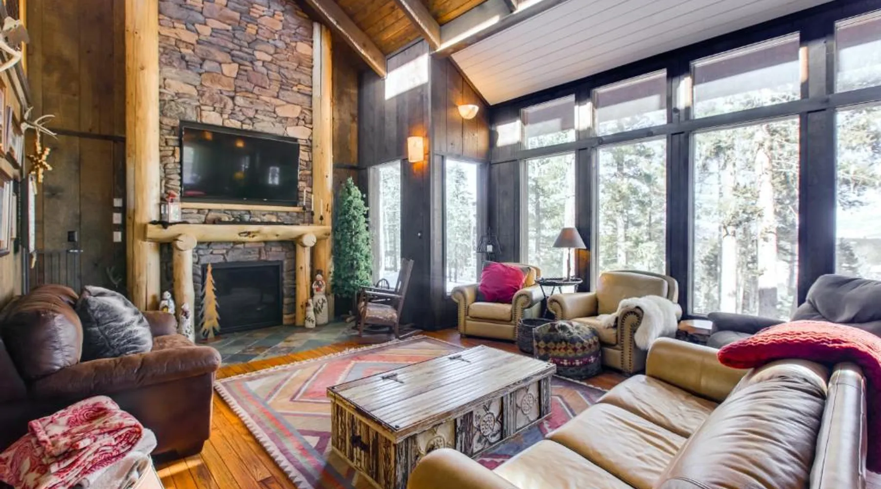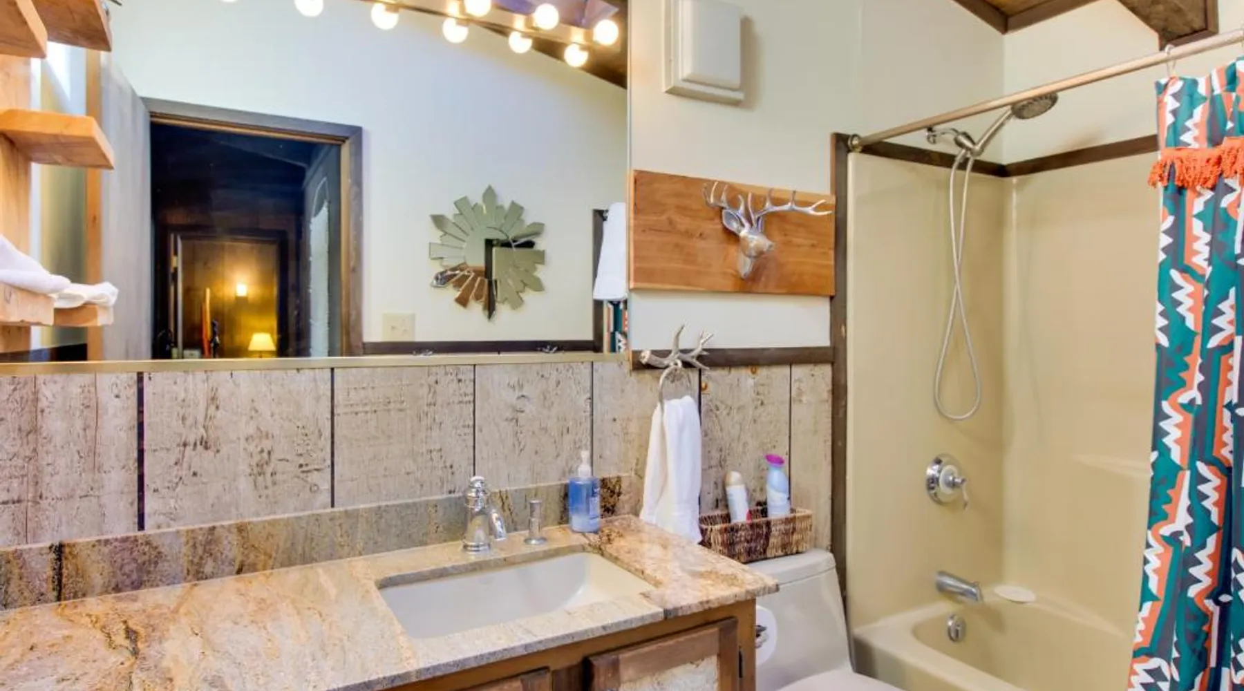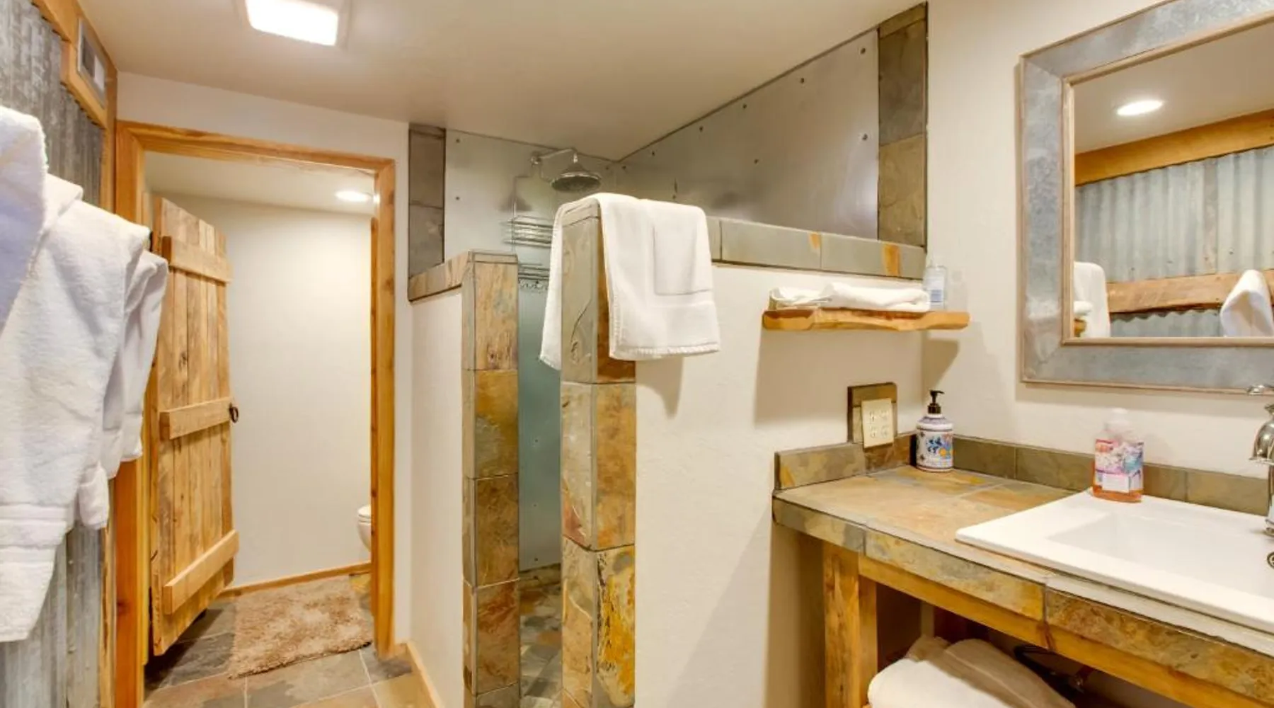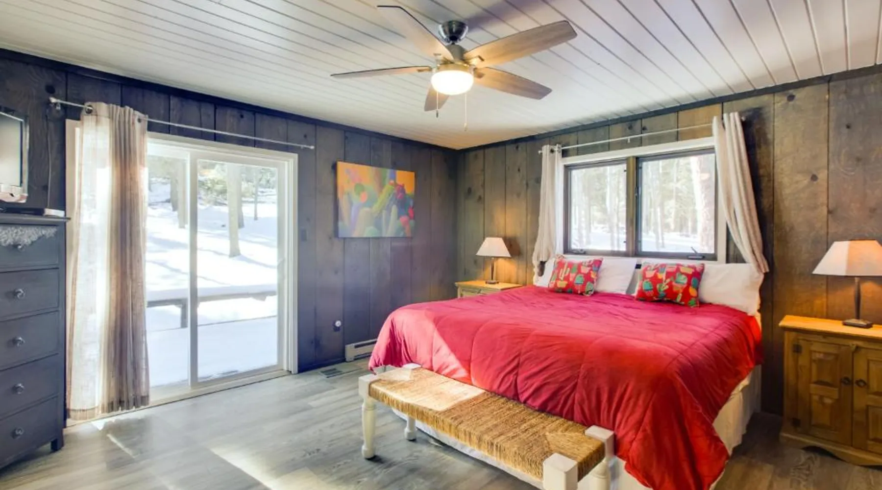 Spacious Accommodations: Angel Fire Cabin with Game Room offers a spacious holiday home in Angel Fire, United States. The property features five bedrooms and four bathrooms, ensuring ample space for all guests. Modern Amenities: Guests enjoy free WiFi, a games room, and a fully equipped kitchen with a balcony. Additional amenities include a washing machine, fireplace, and a private entrance. Convenient Location: Located 35 mi from Taos Regional Airport, the property is 4 mi from Angel Fire Ski Resort. Nearby attractions include Red River Ski Resort and Sipapu Ski Resort. This holiday home's standout feature is the fireplace. This spacious holiday home is consisted of of 1 living room, 5 separate bedrooms and 4 bathrooms with a bath and free toiletries. In the well-fitted kitchen, guests will find a stovetop, a refrigerator, a dishwasher and kitchenware. This holiday home features a washing machine, a private entrance, a flat-screen TV with cable channels and a balcony. The unit offers 10 beds.