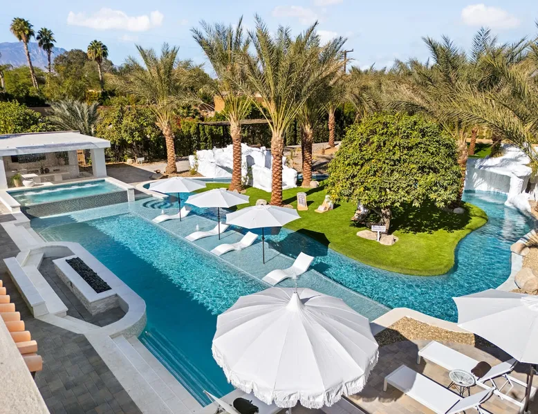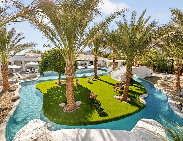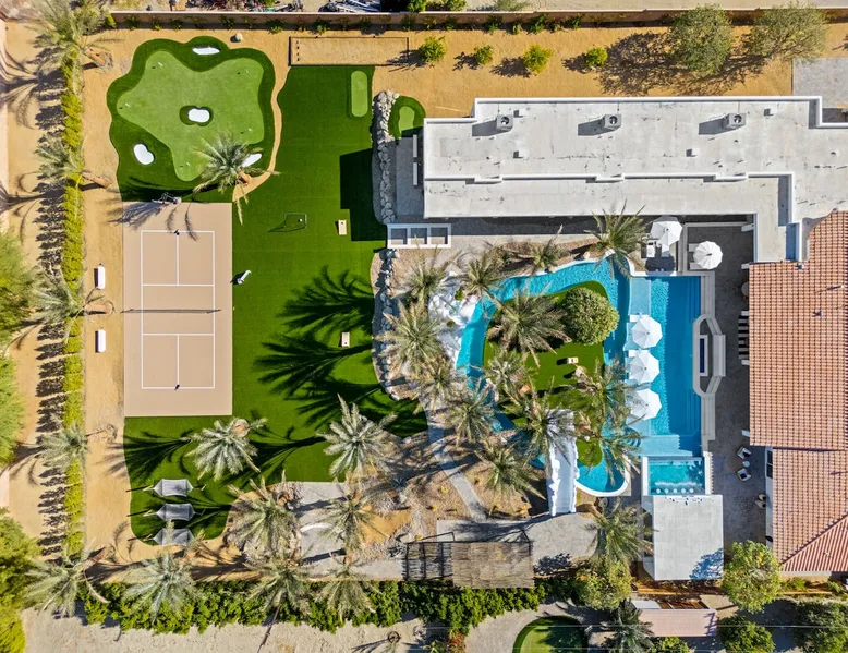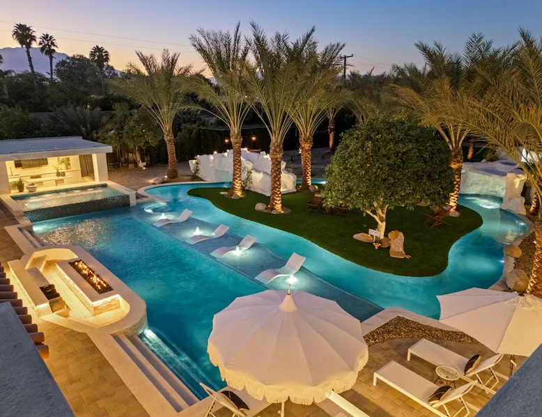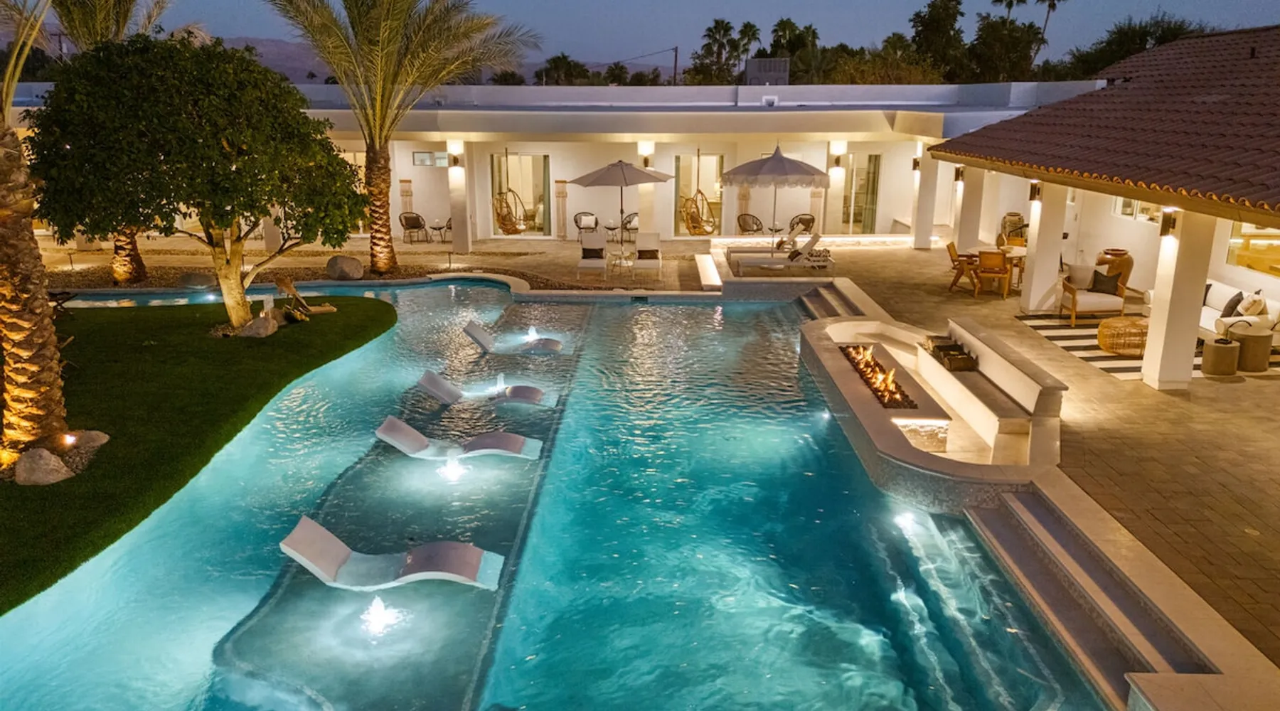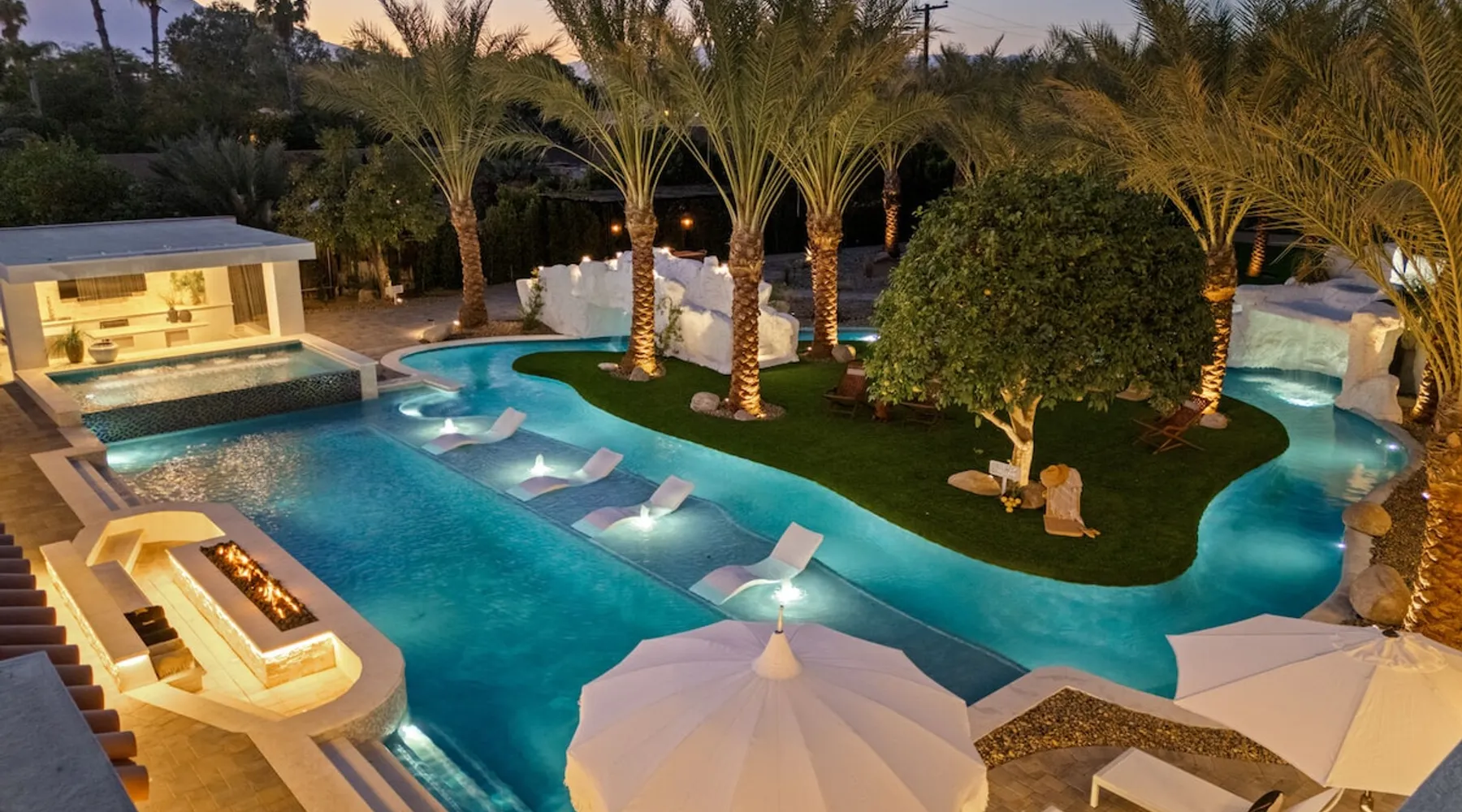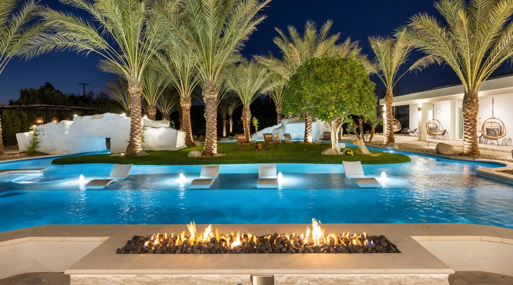 Welcome to Isla, an exclusive TRAVLR Vacation Home! We invite you to discover Isla, a breathtaking luxury vacation home that redefines the art of relaxation and entertainment. Nestled on a sprawling acre of desert land transformed into a pure oasis, this architectural masterpiece spans over 5,400 square feet and is designed to cater to large groups, corporate retreats, and unforgettable events. The space Experience the grounds of Isla and discover the grand central island that gives the property its name. Surrounded by a sparkling lazy river pool that beckons you to jump in and let the moving river take you around. Immerse yourself in the tranquility of cascading waterfalls and enjoy swimming beneath the enchanting grotto. With a thrilling pool slide and expansive lounging areas, every moment spent here is a celebration of leisure. Isla features 10 professionally curated bedrooms with a total of 16 beds and 9 luxurious bathrooms, ensuring comfort and privacy for everyone. The open concept communal spaces are perfect for entertaining, whether you’re hosting a dinner party or a casual gathering. Enjoy the seamless integration of smart home automation, designed for effortless guest use throughout your stay. For the active traveler, Isla boasts a range of amenities that elevate your vacation experience. Inside, there is a dedicated game room with TV, billiards table, ping pong and small gym. Challenge friends to a match on the sport court made for pickleball and basketball or play around on the expansive putting green with chipping area and sand traps. Enjoy a leisurely afternoon in the hammock garden or engage in friendly competition on the bocce ball court. The expansive green lawn is perfect for soccer, football, or a fun game of cornhole, while the fire pit invites cozy evenings under the stars. The outdoor kitchen is a culinary dream, perfect for preparing gourmet meals or enjoying a barbecue with loved ones. And as the sun sets, the magical ambiance of Isla comes alive, providing the ultimate backdrop for memorable evenings. Isla isn’t just a vacation rental; it’s a destination where luxury meets adventure, and every detail is curated for your enjoyment. Come experience the unparalleled beauty and sophistication of Isla, where your dream getaway awaits. Uno is the primary suite furnished with a king-sized bed and en suite bathroom with walk-in shower and separate tub and private access to the expansive backyard Dos: King bed, reach in closet and shared hall bathroom Tres: King bed & en suite bathroom Cuatro: King bed & en suite bathroom Cinco: Two sets of full size bunks (4 beds), direct patio access & en suite bathroom Seis: Two sets of full size bunks (4 beds), direct patio access & en suite bathroom Siete: King bed, direct patio access & Jack n Jill bathroom shared with Ocho Ocho: King bed, direct patio access & Jack n Jill bathroom shared with Siete Nueve: King bed, direct patio access & Jack n Jill bathroom shared with Diez Diez: King bed, direct patio access & Jack n Jill bathroom shared with Nueve Bed Summary: 8 King, 8 Full (4 sets of bunk beds). Queen Size Air Mattress upon request. Sleeps up to 20. There is space available for up to 8 cars total. Street parking is not permitted. Oversized vehicles are not permitted. Permit #: STR2024-0331 Guest access TRAVLR Vacation Home properties are accessible using a keyless system that allows entry into the home for your entire stay. Arrival information, including access codes will be emailed 5-days prior to your arrival. Other things to note - FREQUENTLY ASKED QUESTIONS - WHAT TIME IS CHECK-IN AND CHECK OUT? Check in is after 3PM local time, and check out is no later than 11AM. Early check in and late check out may be available for your reservation upon request. Please reach out for the cost and availability. WILL I NEED TO MEET THE PROPERTY MANAGER TO GET A KEY? TRAVLR Vacation Home properties are accessible using a keyless system that allows entry into the home for your entire stay. DO YOU PROVIDE DAILY CLEANING SERVICE? TRAVLR Vacation Homes provides a departure clean on all stays. A mid-week or mid-stay clean can be provided for an additional fee. CAN WE HAVE THE POOL HEATED? During the winter, the temperature of pools can range between 50-70 degrees. If you would like the pool to be heated to 80-82 degrees, we do charge a fee of $300/night. Please let your property manager know at least 48-hours in advance of your arrival if you would like pool heat added to your reservation. WHAT IS PROVIDED WITH MY ACCOMMODATIONS? All of our vacation rentals are furnished and have a kitchen with amenities including a microwave, coffee maker, toaster and blender. Each property is stocked with cooking and serving items including plates, bowls and utensils, as well as a can opener, corkscrew measuring spoons and more. The coffee maker takes ground coffee and we also offer a spice rack, salt and pepper. There are bath towels, pool towels and bed linens. We also provide an initial supply of trash liners, toilet paper, hand soap and dishwasher soap. Bathrooms are stocked with shampoo, conditioner and liquid body wash. Laundry facilities are also equipped with laundry soap and dryer sheets. CAN I SHIP A PACKAGE TO MY VACATION HOME? We do not recommend shipping directly to the home, we do not have mailbox keys, and there are many different people with access to the home: vendors, housekeeping, Guest Services staff, etc... so we cannot be responsible for packages once delivered. DO YOUR HOMES HAVE OUTDOOR MUSIC SYSTEMS? Yes! The entire property both inside and out is filled with speakers that are setup in different zones so you can enjoy it wherever you are and even have different music playing in different areas. To use, simply download the Sonos app and connect to our Wi-Fi system. You can then control your music from Spotify, Apple Music and more. Due to city regulations though, the outdoor music speakers will not work between the hours of 9PM a