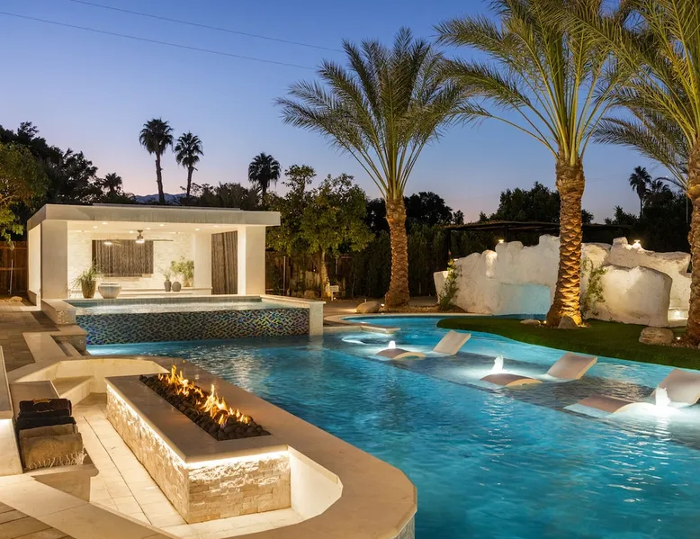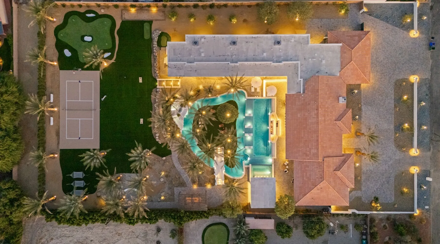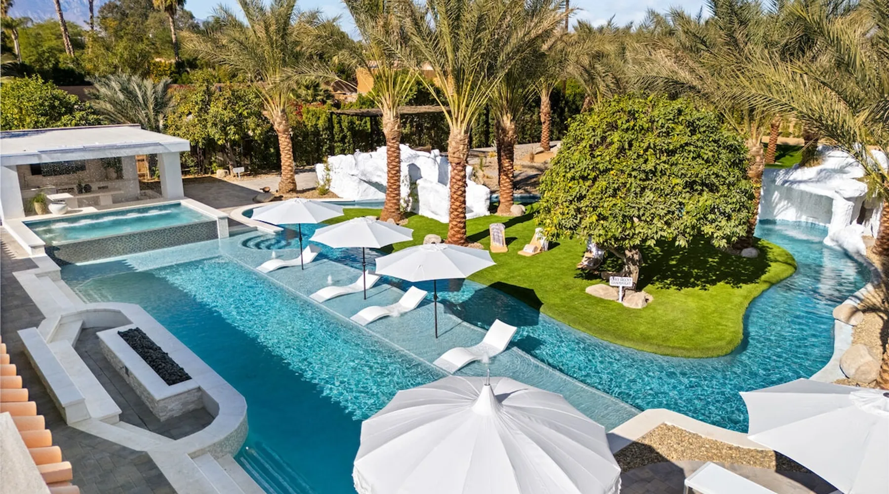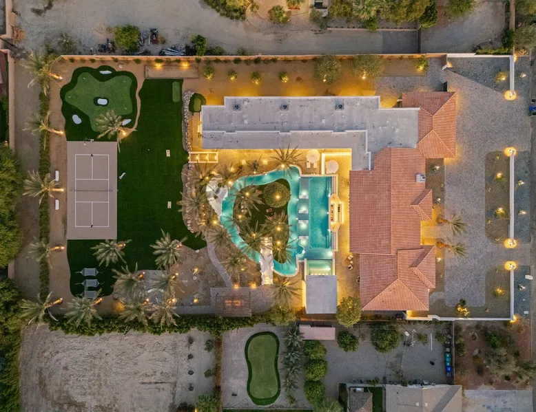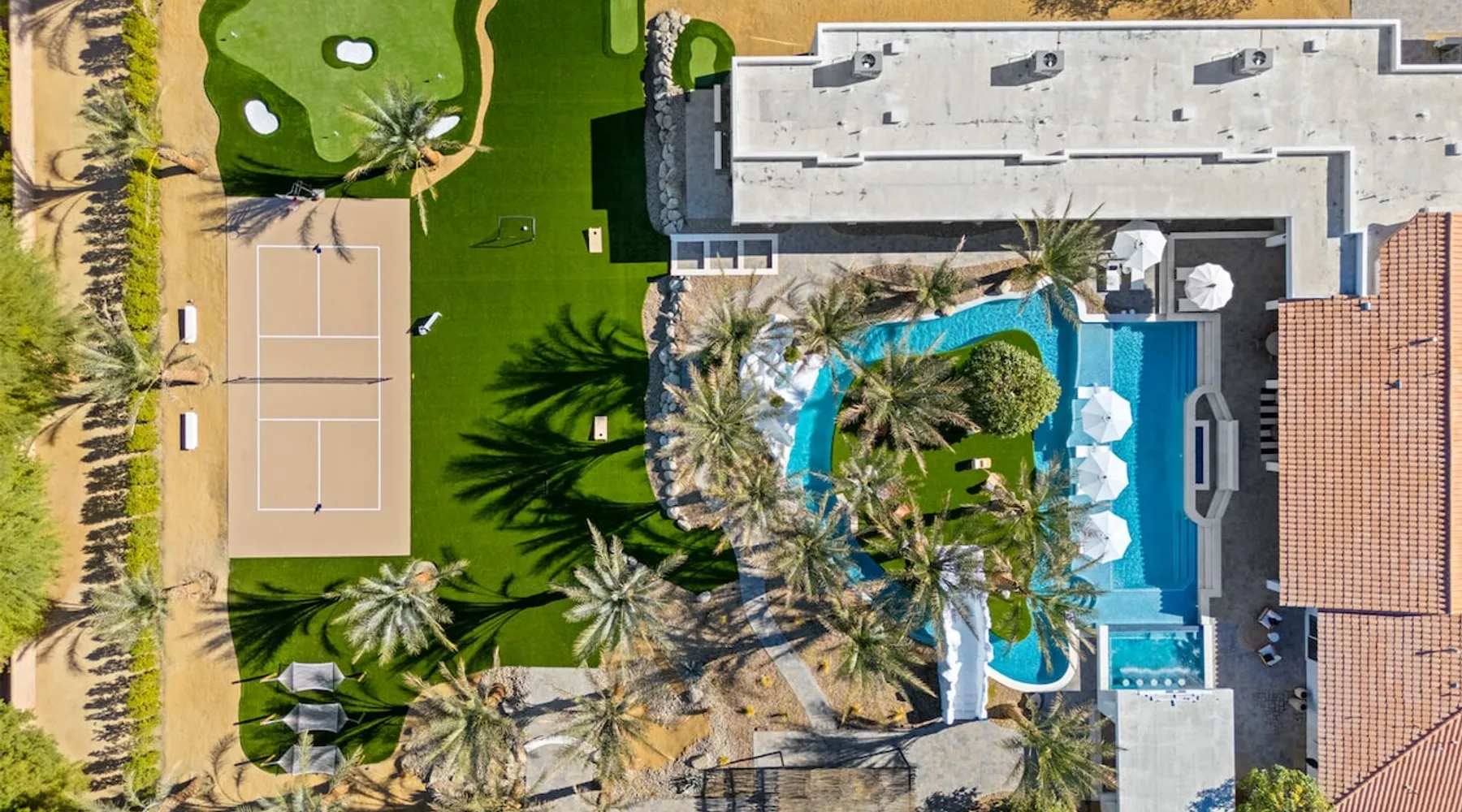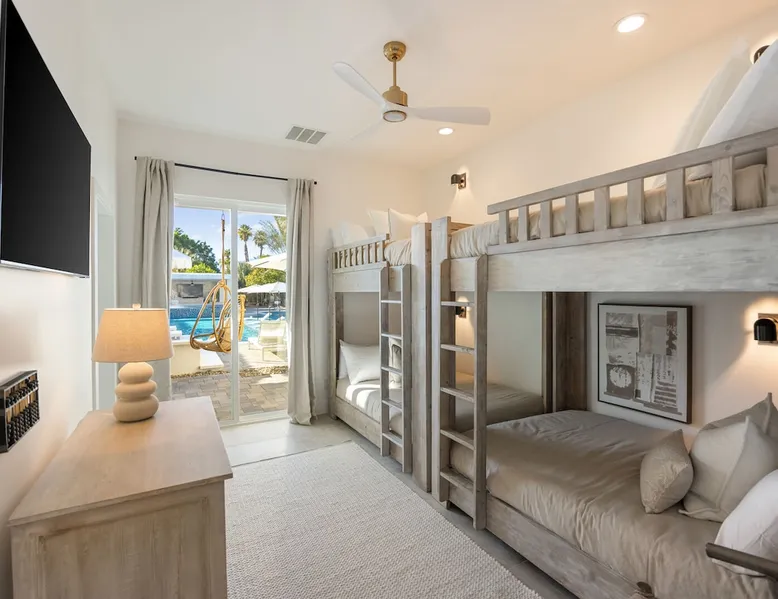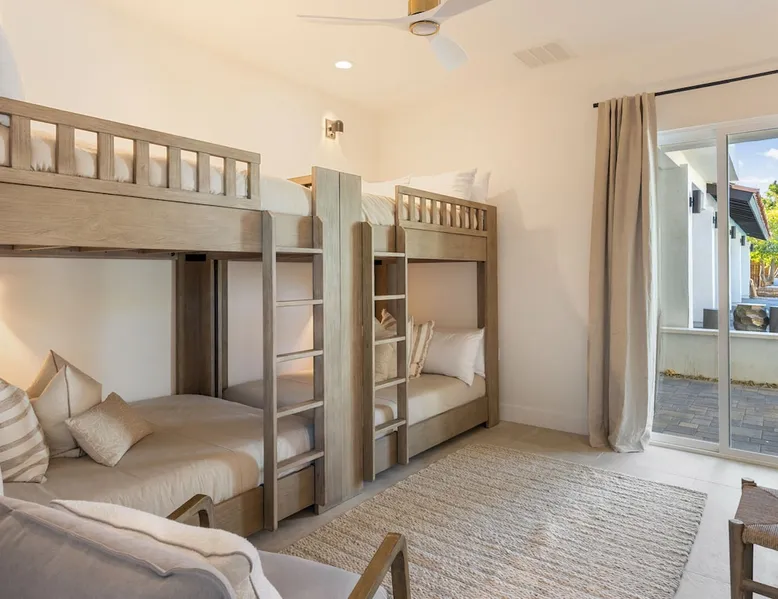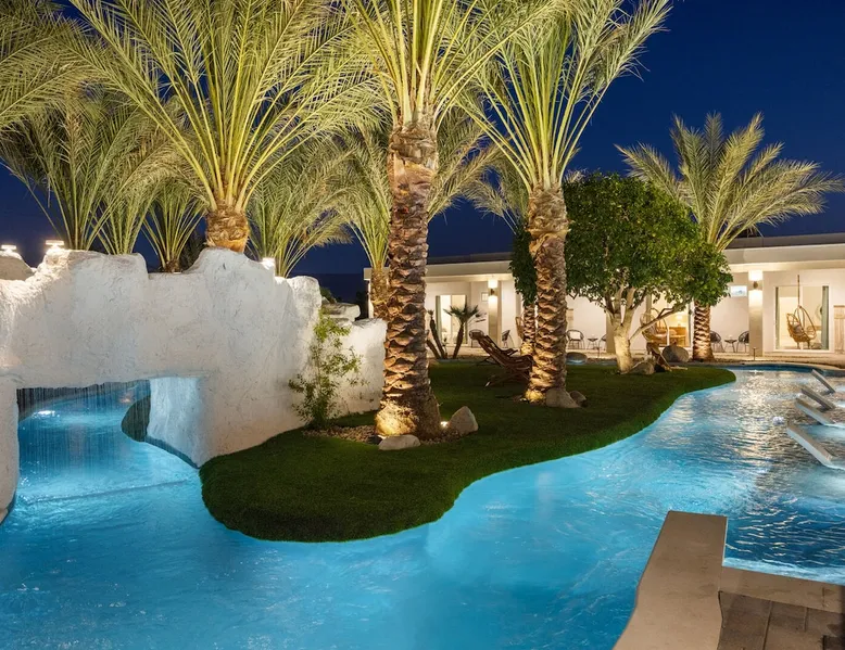 Welcome to Isla, an exclusive TRAVLR Vacation Home! We invite you to discover Isla, a breathtaking luxury vacation home that redefines the art of relaxation and entertainment. Nestled on a sprawling acre of desert land transformed into a pure oasis, this architectural masterpiece spans over 5,400 square feet and is designed to cater to large groups, corporate retreats, and unforgettable events. The space Experience the grounds of Isla and discover the grand central island that gives the property its name. Surrounded by a sparkling lazy river pool that beckons you to jump in and let the moving river take you around. Immerse yourself in the tranquility of cascading waterfalls and enjoy swimming beneath the enchanting grotto. With a thrilling pool slide and expansive lounging areas, every moment spent here is a celebration of leisure. Isla features 10 professionally curated bedrooms with a total of 16 beds and 9 luxurious bathrooms, ensuring comfort and privacy for everyone. The open concept communal spaces are perfect for entertaining, whether you’re hosting a dinner party or a casual gathering. Enjoy the seamless integration of smart home automation, designed for effortless guest use throughout your stay. For the active traveler, Isla boasts a range of amenities that elevate your vacation experience. Inside, there is a dedicated game room with TV, billiards table, ping pong and small gym. Challenge friends to a match on the sport court made for pickleball and basketball or play around on the expansive putting green with chipping area and sand traps. Enjoy a leisurely afternoon in the hammock garden or engage in friendly competition on the bocce ball court. The expansive green lawn is perfect for soccer, football, or a fun game of cornhole, while the fire pit invites cozy evenings under the stars. The outdoor kitchen is a culinary dream, perfect for preparing gourmet meals or enjoying a barbecue with loved ones. And as the sun sets, the magical ambiance of Isla comes alive, providing the ultimate backdrop for memorable evenings. Isla isn’t just a vacation rental; it’s a destination where luxury meets adventure, and every detail is curated for your enjoyment. Come experience the unparalleled beauty and sophistication of Isla, where your dream getaway awaits. Uno is the primary suite furnished with a king-sized bed and en suite bathroom with walk-in shower and separate tub and private access to the expansive backyard Dos: King bed, reach in closet and shared hall bathroom Tres: King bed & en suite bathroom Cuatro: King bed & en suite bathroom Cinco: Two sets of full size bunks (4 beds), direct patio access & en suite bathroom Seis: Two sets of full size bunks (4 beds), direct patio access & en suite bathroom Siete: King bed, direct patio access & Jack n Jill bathroom shared with Ocho Ocho: King bed, direct patio access & Jack n Jill bathroom shared with Siete Nueve: King bed, direct patio access & Jack n Jill bathroom shared with Diez Diez: King bed, direct patio access & Jack n Jill bathroom shared with Nueve Bed Summary: 8 King, 8 Full (4 sets of bunk beds). Queen Size Air Mattress upon request. Sleeps up to 20. There is space available for up to 8 cars total. Street parking is not permitted. Oversized vehicles are not permitted. Permit #: STR2024-0331 Guest access TRAVLR Vacation Home properties are accessible using a keyless system that allows entry into the home for your entire stay. Arrival information, including access codes will be emailed 5-days prior to your arrival. Other things to note - FREQUENTLY ASKED QUESTIONS - WHAT TIME IS CHECK-IN AND CHECK OUT? Check in is after 3PM local time, and check out is no later than 11AM. Early check in and late check out may be available for your reservation upon request. Please reach out for the cost and availability. WILL I NEED TO MEET THE PROPERTY MANAGER TO GET A KEY? TRAVLR Vacation Home properties are accessible using a keyless system that allows entry into the home for your entire stay. DO YOU PROVIDE DAILY CLEANING SERVICE? TRAVLR Vacation Homes provides a departure clean on all stays. A mid-week or mid-stay clean can be provided for an additional fee. CAN WE HAVE THE POOL HEATED? During the winter, the temperature of pools can range between 50-70 degrees. If you would like the pool to be heated to 80-82 degrees, we do charge a fee of $300/night. Please let your property manager know at least 48-hours in advance of your arrival if you would like pool heat added to your reservation. WHAT IS PROVIDED WITH MY ACCOMMODATIONS? All of our vacation rentals are furnished and have a kitchen with amenities including a microwave, coffee maker, toaster and blender. Each property is stocked with cooking and serving items including plates, bowls and utensils, as well as a can opener, corkscrew measuring spoons and more. The coffee maker takes ground coffee and we also offer a spice rack, salt and pepper. There are bath towels, pool towels and bed linens. We also provide an initial supply of trash liners, toilet paper, hand soap and dishwasher soap. Bathrooms are stocked with shampoo, conditioner and liquid body wash. Laundry facilities are also equipped with laundry soap and dryer sheets. CAN I SHIP A PACKAGE TO MY VACATION HOME? We do not recommend shipping directly to the home, we do not have mailbox keys, and there are many different people with access to the home: vendors, housekeeping, Guest Services staff, etc... so we cannot be responsible for packages once delivered. DO YOUR HOMES HAVE OUTDOOR MUSIC SYSTEMS? Yes! The entire property both inside and out is filled with speakers that are setup in different zones so you can enjoy it wherever you are and even have different music playing in different areas. To use, simply download the Sonos app and connect to our Wi-Fi system. You can then control your music from Spotify, Apple Music and more. Due to city regulations though, the outdoor music speakers will not work between the hours of 9PM a
