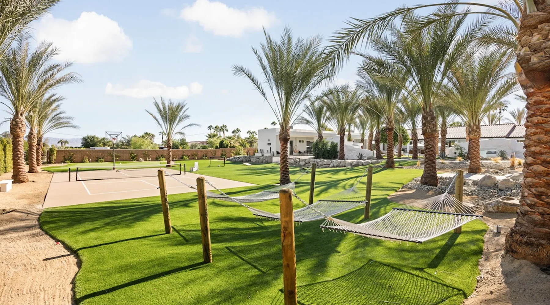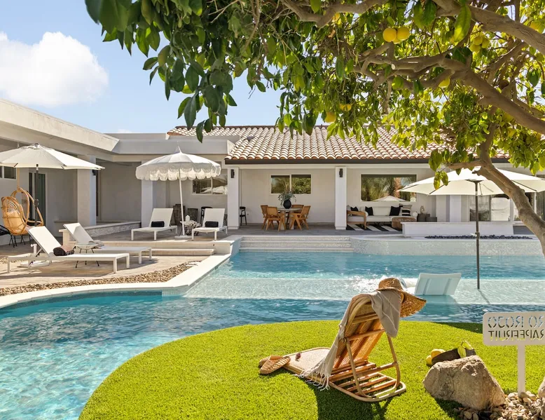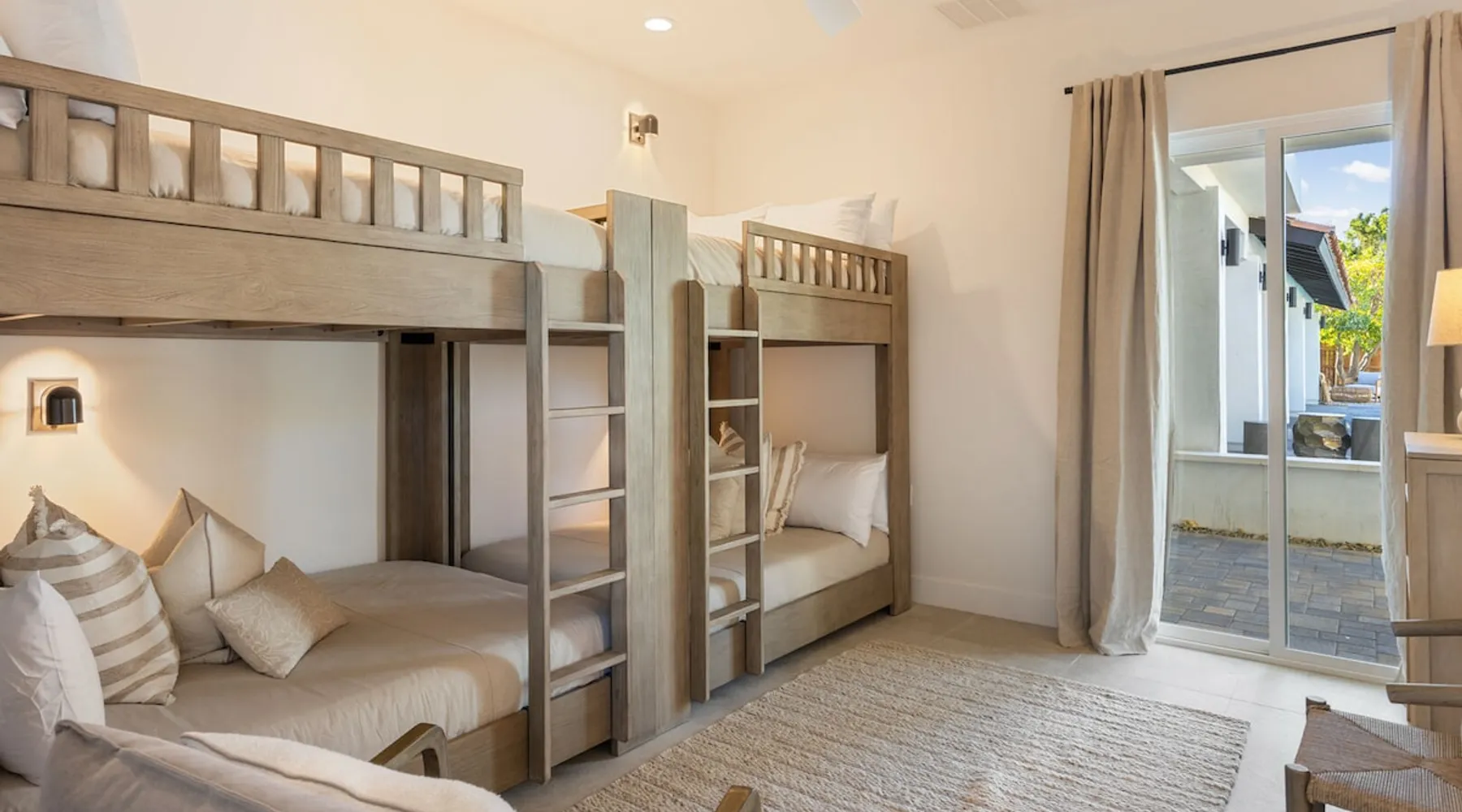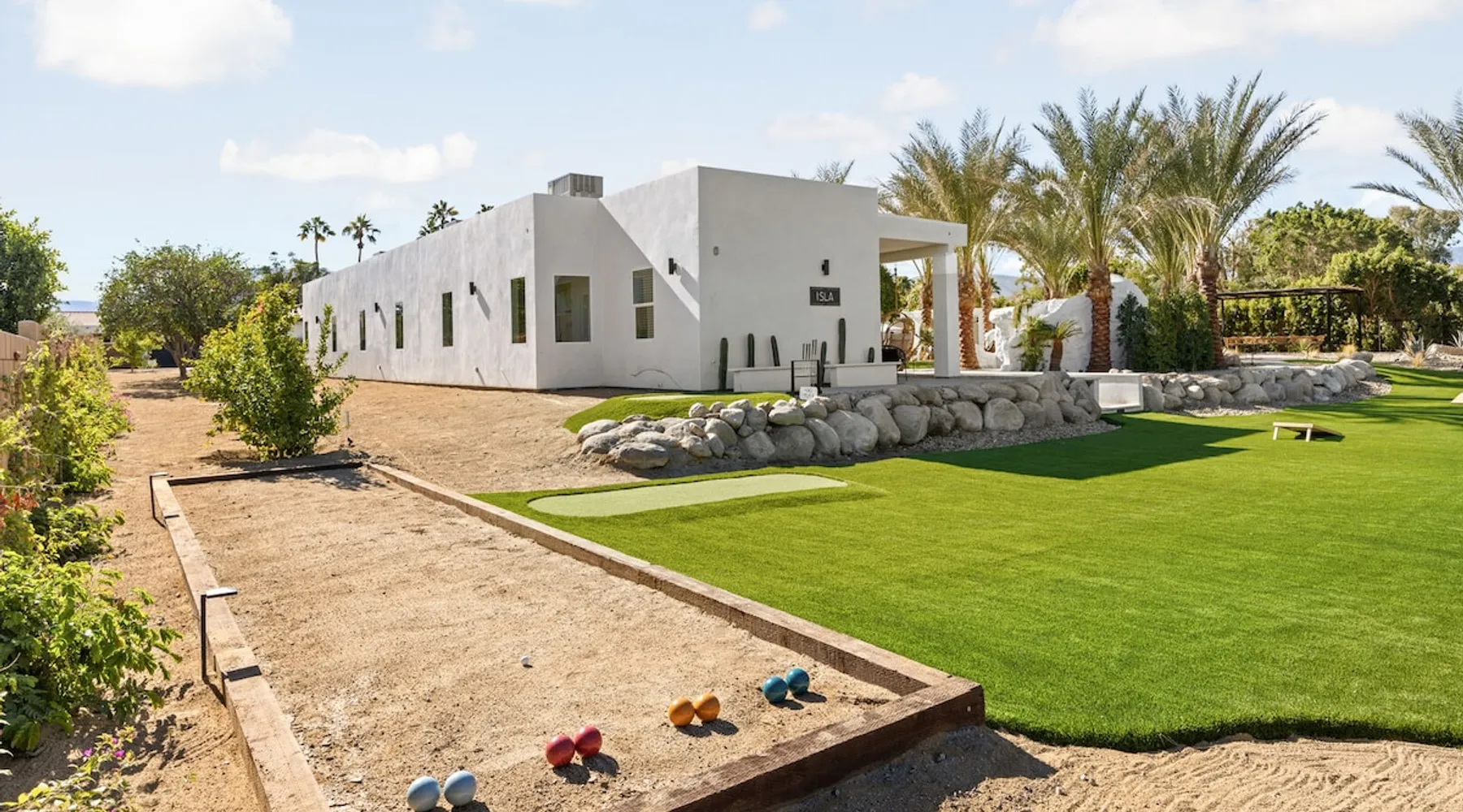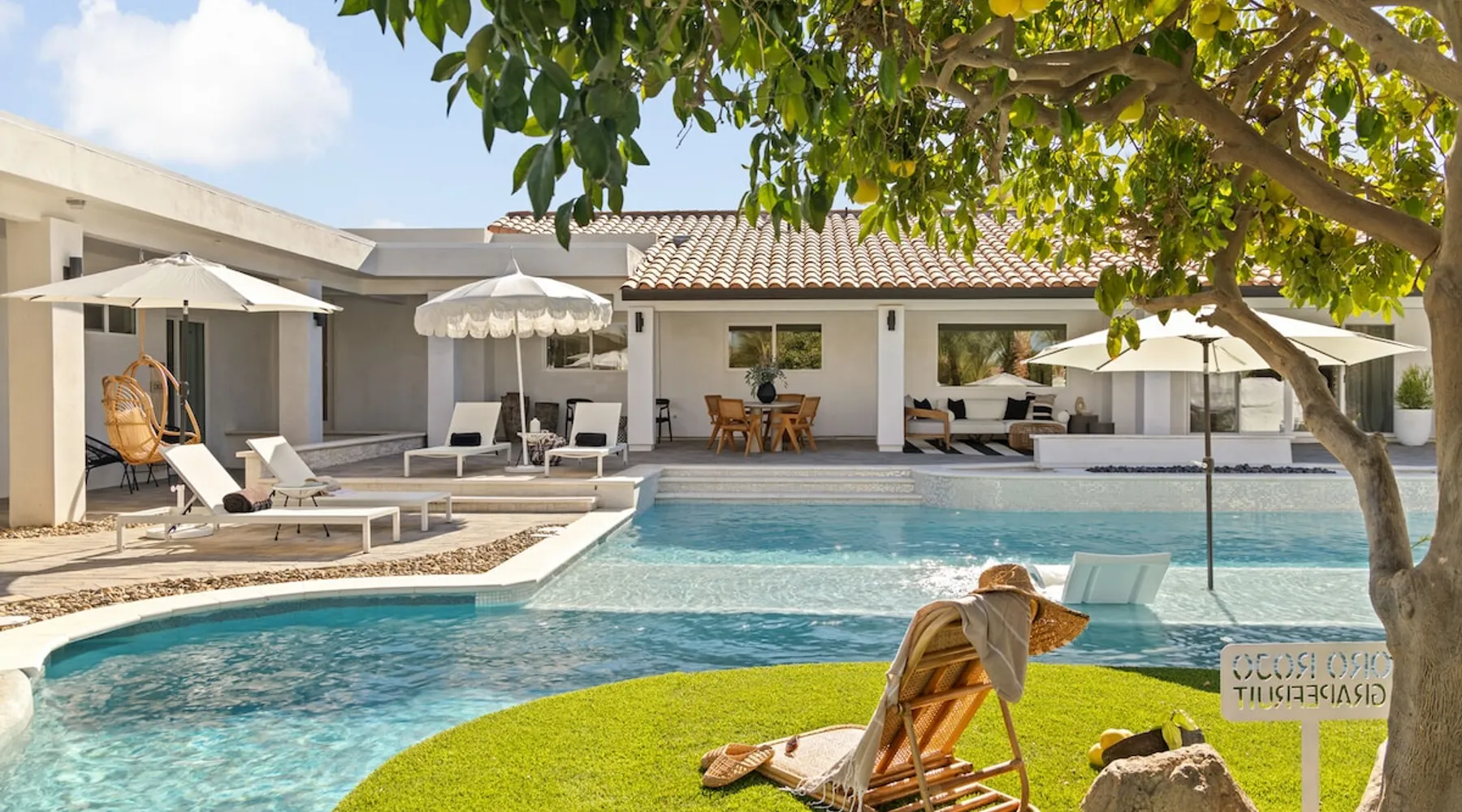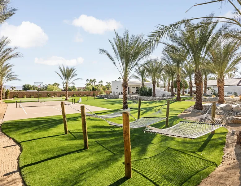 Welcome to Isla, an exclusive TRAVLR Vacation Home! We invite you to discover Isla, a breathtaking luxury vacation home that redefines the art of relaxation and entertainment. Nestled on a sprawling acre of desert land transformed into a pure oasis, this architectural masterpiece spans over 5,400 square feet and is designed to cater to large groups, corporate retreats, and unforgettable events. The space Experience the grounds of Isla and discover the grand central island that gives the property its name. Surrounded by a sparkling lazy river pool that beckons you to jump in and let the moving river take you around. Immerse yourself in the tranquility of cascading waterfalls and enjoy swimming beneath the enchanting grotto. With a thrilling pool slide and expansive lounging areas, every moment spent here is a celebration of leisure. Isla features 10 professionally curated bedrooms with a total of 16 beds and 9 luxurious bathrooms, ensuring comfort and privacy for everyone. The open concept communal spaces are perfect for entertaining, whether you’re hosting a dinner party or a casual gathering. Enjoy the seamless integration of smart home automation, designed for effortless guest use throughout your stay. For the active traveler, Isla boasts a range of amenities that elevate your vacation experience. Inside, there is a dedicated game room with TV, billiards table, ping pong and small gym. Challenge friends to a match on the sport court made for pickleball and basketball or play around on the expansive putting green with chipping area and sand traps. Enjoy a leisurely afternoon in the hammock garden or engage in friendly competition on the bocce ball court. The expansive green lawn is perfect for soccer, football, or a fun game of cornhole, while the fire pit invites cozy evenings under the stars. The outdoor kitchen is a culinary dream, perfect for preparing gourmet meals or enjoying a barbecue with loved ones. And as the sun sets, the magical ambiance of Isla comes alive, providing the ultimate backdrop for memorable evenings. Isla isn’t just a vacation rental; it’s a destination where luxury meets adventure, and every detail is curated for your enjoyment. Come experience the unparalleled beauty and sophistication of Isla, where your dream getaway awaits. Uno is the primary suite furnished with a king-sized bed and en suite bathroom with walk-in shower and separate tub and private access to the expansive backyard Dos: King bed, reach in closet and shared hall bathroom Tres: King bed & en suite bathroom Cuatro: King bed & en suite bathroom Cinco: Two sets of full size bunks (4 beds), direct patio access & en suite bathroom Seis: Two sets of full size bunks (4 beds), direct patio access & en suite bathroom Siete: King bed, direct patio access & Jack n Jill bathroom shared with Ocho Ocho: King bed, direct patio access & Jack n Jill bathroom shared with Siete Nueve: King bed, direct patio access & Jack n Jill bathroom shared with Diez Diez: King bed, direct patio access & Jack n Jill bathroom shared with Nueve Bed Summary: 8 King, 8 Full (4 sets of bunk beds). Queen Size Air Mattress upon request. Sleeps up to 20. There is space available for up to 8 cars total. Street parking is not permitted. Oversized vehicles are not permitted. Permit #: STR2024-0331 Guest access TRAVLR Vacation Home properties are accessible using a keyless system that allows entry into the home for your entire stay. Arrival information, including access codes will be emailed 5-days prior to your arrival. Other things to note - FREQUENTLY ASKED QUESTIONS - WHAT TIME IS CHECK-IN AND CHECK OUT? Check in is after 3PM local time, and check out is no later than 11AM. Early check in and late check out may be available for your reservation upon request. Please reach out for the cost and availability. WILL I NEED TO MEET THE PROPERTY MANAGER TO GET A KEY? TRAVLR Vacation Home properties are accessible using a keyless system that allows entry into the home for your entire stay. DO YOU PROVIDE DAILY CLEANING SERVICE? TRAVLR Vacation Homes provides a departure clean on all stays. A mid-week or mid-stay clean can be provided for an additional fee. CAN WE HAVE THE POOL HEATED? During the winter, the temperature of pools can range between 50-70 degrees. If you would like the pool to be heated to 80-82 degrees, we do charge a fee of $300/night. Please let your property manager know at least 48-hours in advance of your arrival if you would like pool heat added to your reservation. WHAT IS PROVIDED WITH MY ACCOMMODATIONS? All of our vacation rentals are furnished and have a kitchen with amenities including a microwave, coffee maker, toaster and blender. Each property is stocked with cooking and serving items including plates, bowls and utensils, as well as a can opener, corkscrew measuring spoons and more. The coffee maker takes ground coffee and we also offer a spice rack, salt and pepper. There are bath towels, pool towels and bed linens. We also provide an initial supply of trash liners, toilet paper, hand soap and dishwasher soap. Bathrooms are stocked with shampoo, conditioner and liquid body wash. Laundry facilities are also equipped with laundry soap and dryer sheets. CAN I SHIP A PACKAGE TO MY VACATION HOME? We do not recommend shipping directly to the home, we do not have mailbox keys, and there are many different people with access to the home: vendors, housekeeping, Guest Services staff, etc... so we cannot be responsible for packages once delivered. DO YOUR HOMES HAVE OUTDOOR MUSIC SYSTEMS? Yes! The entire property both inside and out is filled with speakers that are setup in different zones so you can enjoy it wherever you are and even have different music playing in different areas. To use, simply download the Sonos app and connect to our Wi-Fi system. You can then control your music from Spotify, Apple Music and more. Due to city regulations though, the outdoor music speakers will not work between the hours of 9PM a