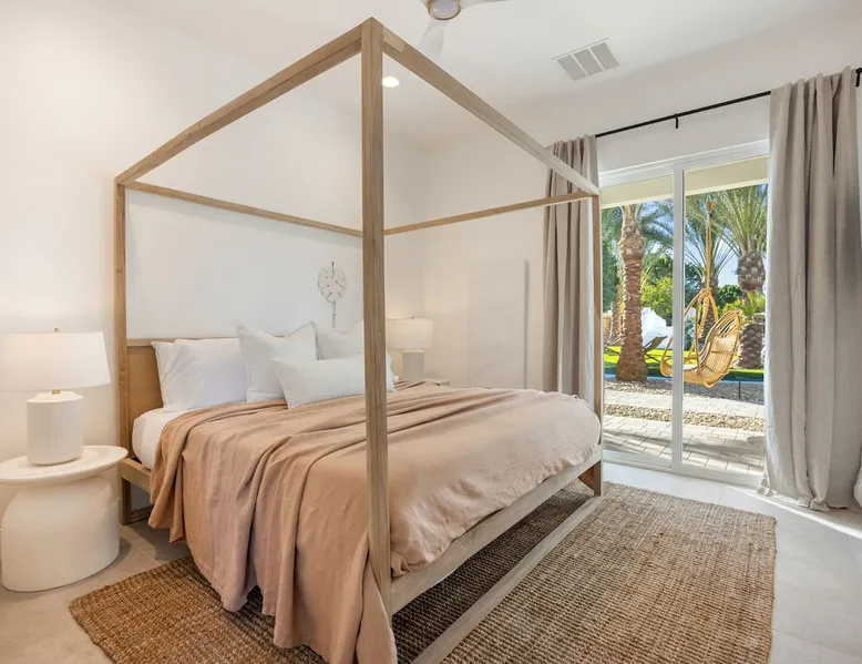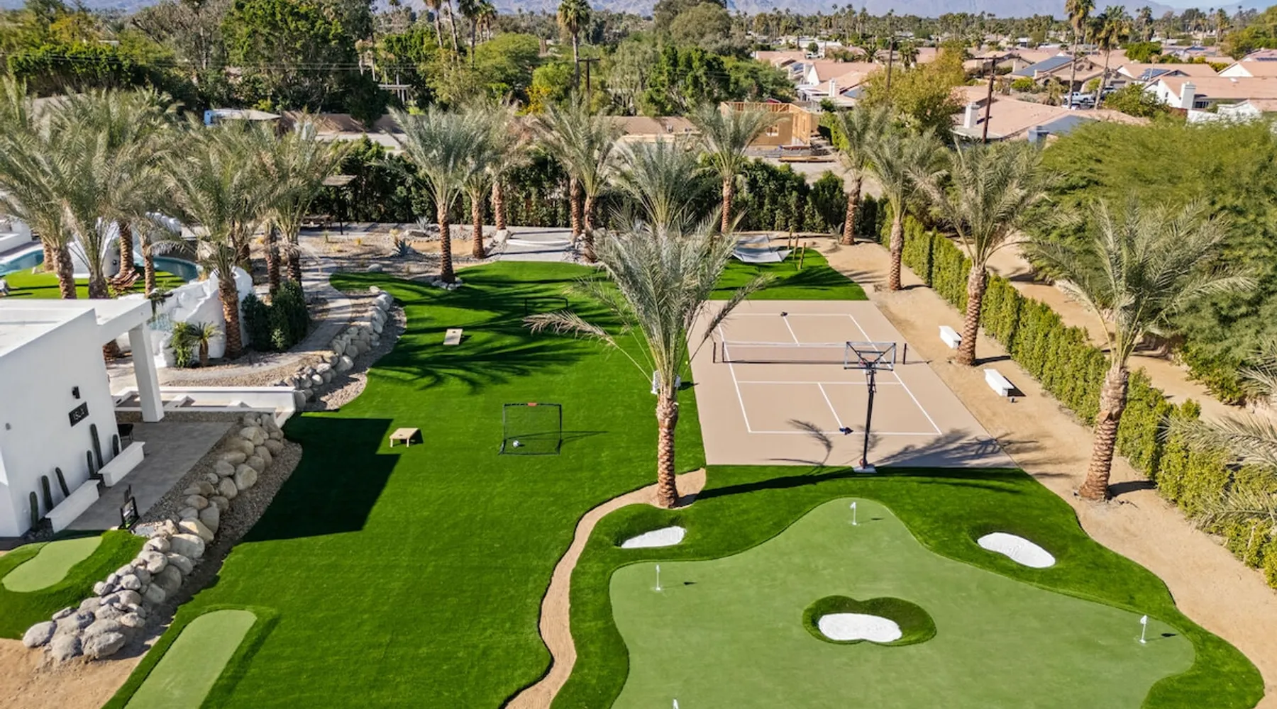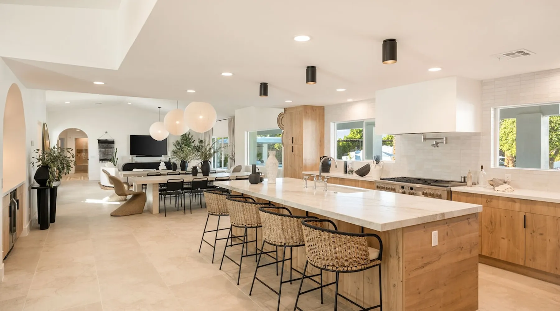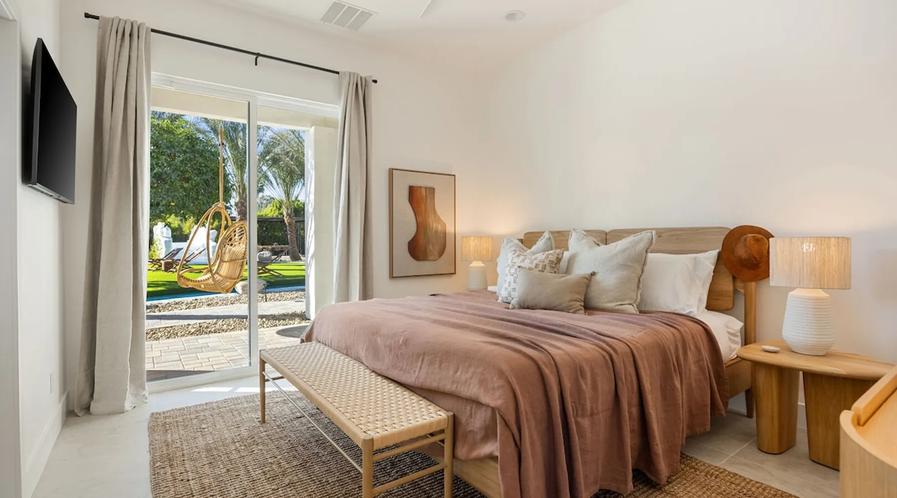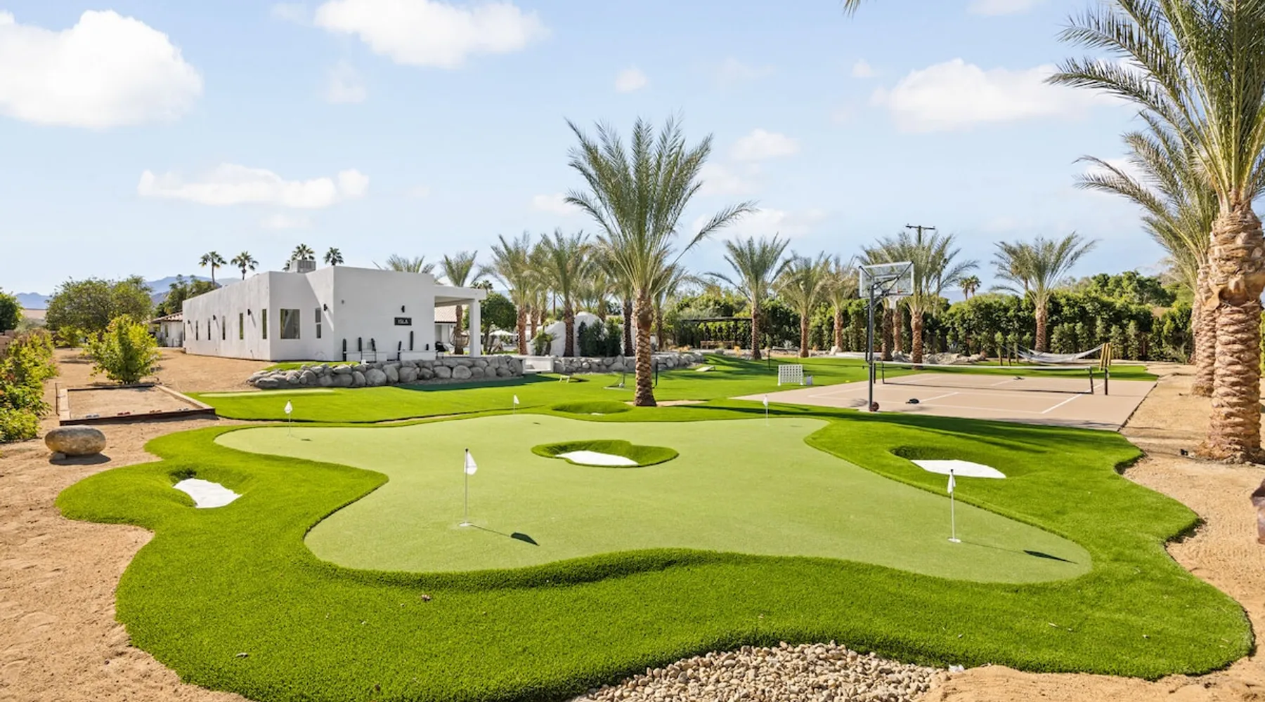 Welcome to Isla, an exclusive TRAVLR Vacation Home! We invite you to discover Isla, a breathtaking luxury vacation home that redefines the art of relaxation and entertainment. Nestled on a sprawling acre of desert land transformed into a pure oasis, this architectural masterpiece spans over 5,400 square feet and is designed to cater to large groups, corporate retreats, and unforgettable events. The space Experience the grounds of Isla and discover the grand central island that gives the property its name. Surrounded by a sparkling lazy river pool that beckons you to jump in and let the moving river take you around. Immerse yourself in the tranquility of cascading waterfalls and enjoy swimming beneath the enchanting grotto. With a thrilling pool slide and expansive lounging areas, every moment spent here is a celebration of leisure. Isla features 10 professionally curated bedrooms with a total of 16 beds and 9 luxurious bathrooms, ensuring comfort and privacy for everyone. The open concept communal spaces are perfect for entertaining, whether you’re hosting a dinner party or a casual gathering. Enjoy the seamless integration of smart home automation, designed for effortless guest use throughout your stay. For the active traveler, Isla boasts a range of amenities that elevate your vacation experience. Inside, there is a dedicated game room with TV, billiards table, ping pong and small gym. Challenge friends to a match on the sport court made for pickleball and basketball or play around on the expansive putting green with chipping area and sand traps. Enjoy a leisurely afternoon in the hammock garden or engage in friendly competition on the bocce ball court. The expansive green lawn is perfect for soccer, football, or a fun game of cornhole, while the fire pit invites cozy evenings under the stars. The outdoor kitchen is a culinary dream, perfect for preparing gourmet meals or enjoying a barbecue with loved ones. And as the sun sets, the magical ambiance of Isla comes alive, providing the ultimate backdrop for memorable evenings. Isla isn’t just a vacation rental; it’s a destination where luxury meets adventure, and every detail is curated for your enjoyment. Come experience the unparalleled beauty and sophistication of Isla, where your dream getaway awaits. Uno is the primary suite furnished with a king-sized bed and en suite bathroom with walk-in shower and separate tub and private access to the expansive backyard Dos: King bed, reach in closet and shared hall bathroom Tres: King bed & en suite bathroom Cuatro: King bed & en suite bathroom Cinco: Two sets of full size bunks (4 beds), direct patio access & en suite bathroom Seis: Two sets of full size bunks (4 beds), direct patio access & en suite bathroom Siete: King bed, direct patio access & Jack n Jill bathroom shared with Ocho Ocho: King bed, direct patio access & Jack n Jill bathroom shared with Siete Nueve: King bed, direct patio access & Jack n Jill bathroom shared with Diez Diez: King bed, direct patio access & Jack n Jill bathroom shared with Nueve Bed Summary: 8 King, 8 Full (4 sets of bunk beds). Queen Size Air Mattress upon request. Sleeps up to 20. There is space available for up to 8 cars total. Street parking is not permitted. Oversized vehicles are not permitted. Permit #: STR2024-0331 Guest access TRAVLR Vacation Home properties are accessible using a keyless system that allows entry into the home for your entire stay. Arrival information, including access codes will be emailed 5-days prior to your arrival. Other things to note - FREQUENTLY ASKED QUESTIONS - WHAT TIME IS CHECK-IN AND CHECK OUT? Check in is after 3PM local time, and check out is no later than 11AM. Early check in and late check out may be available for your reservation upon request. Please reach out for the cost and availability. WILL I NEED TO MEET THE PROPERTY MANAGER TO GET A KEY? TRAVLR Vacation Home properties are accessible using a keyless system that allows entry into the home for your entire stay. DO YOU PROVIDE DAILY CLEANING SERVICE? TRAVLR Vacation Homes provides a departure clean on all stays. A mid-week or mid-stay clean can be provided for an additional fee. CAN WE HAVE THE POOL HEATED? During the winter, the temperature of pools can range between 50-70 degrees. If you would like the pool to be heated to 80-82 degrees, we do charge a fee of $300/night. Please let your property manager know at least 48-hours in advance of your arrival if you would like pool heat added to your reservation. WHAT IS PROVIDED WITH MY ACCOMMODATIONS? All of our vacation rentals are furnished and have a kitchen with amenities including a microwave, coffee maker, toaster and blender. Each property is stocked with cooking and serving items including plates, bowls and utensils, as well as a can opener, corkscrew measuring spoons and more. The coffee maker takes ground coffee and we also offer a spice rack, salt and pepper. There are bath towels, pool towels and bed linens. We also provide an initial supply of trash liners, toilet paper, hand soap and dishwasher soap. Bathrooms are stocked with shampoo, conditioner and liquid body wash. Laundry facilities are also equipped with laundry soap and dryer sheets. CAN I SHIP A PACKAGE TO MY VACATION HOME? We do not recommend shipping directly to the home, we do not have mailbox keys, and there are many different people with access to the home: vendors, housekeeping, Guest Services staff, etc... so we cannot be responsible for packages once delivered. DO YOUR HOMES HAVE OUTDOOR MUSIC SYSTEMS? Yes! The entire property both inside and out is filled with speakers that are setup in different zones so you can enjoy it wherever you are and even have different music playing in different areas. To use, simply download the Sonos app and connect to our Wi-Fi system. You can then control your music from Spotify, Apple Music and more. Due to city regulations though, the outdoor music speakers will not work between the hours of 9PM a