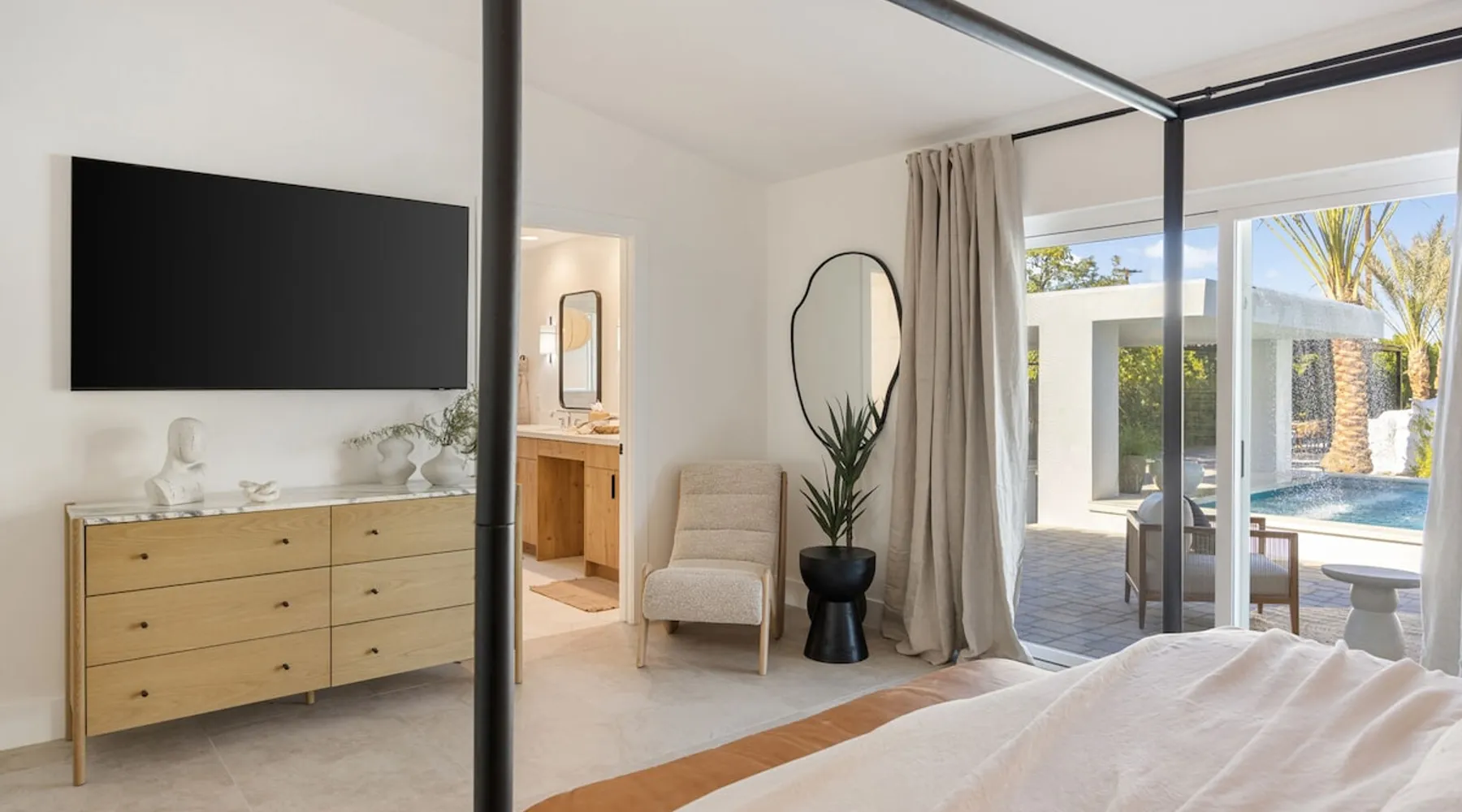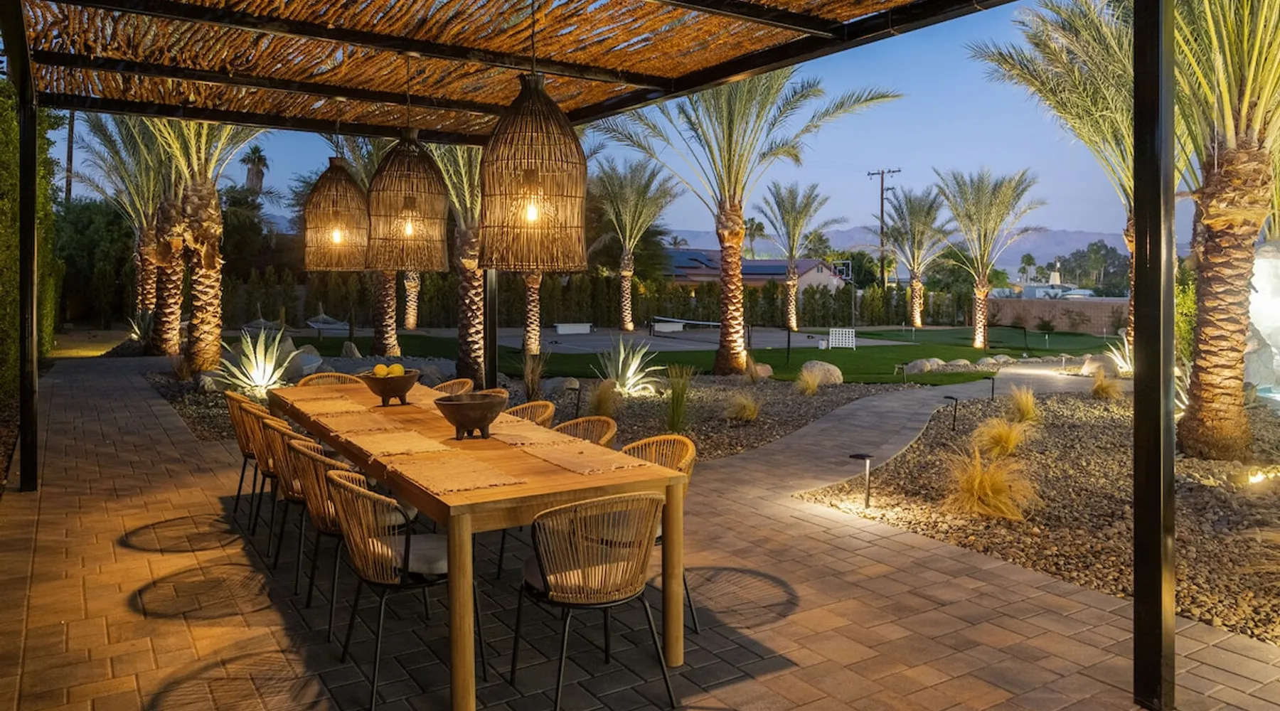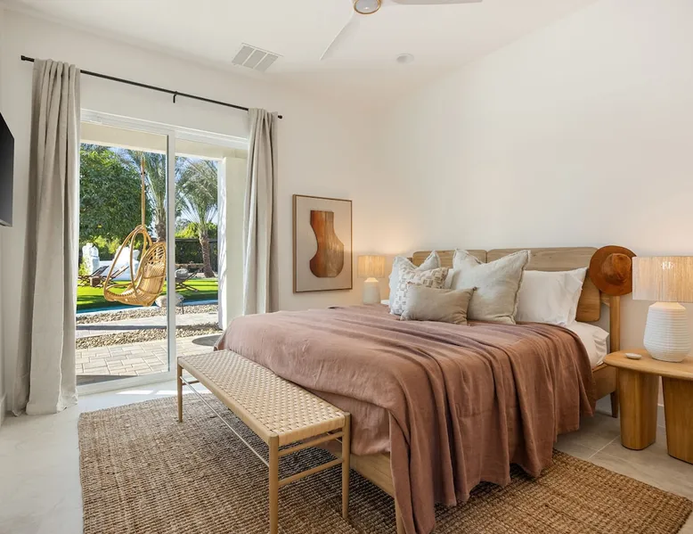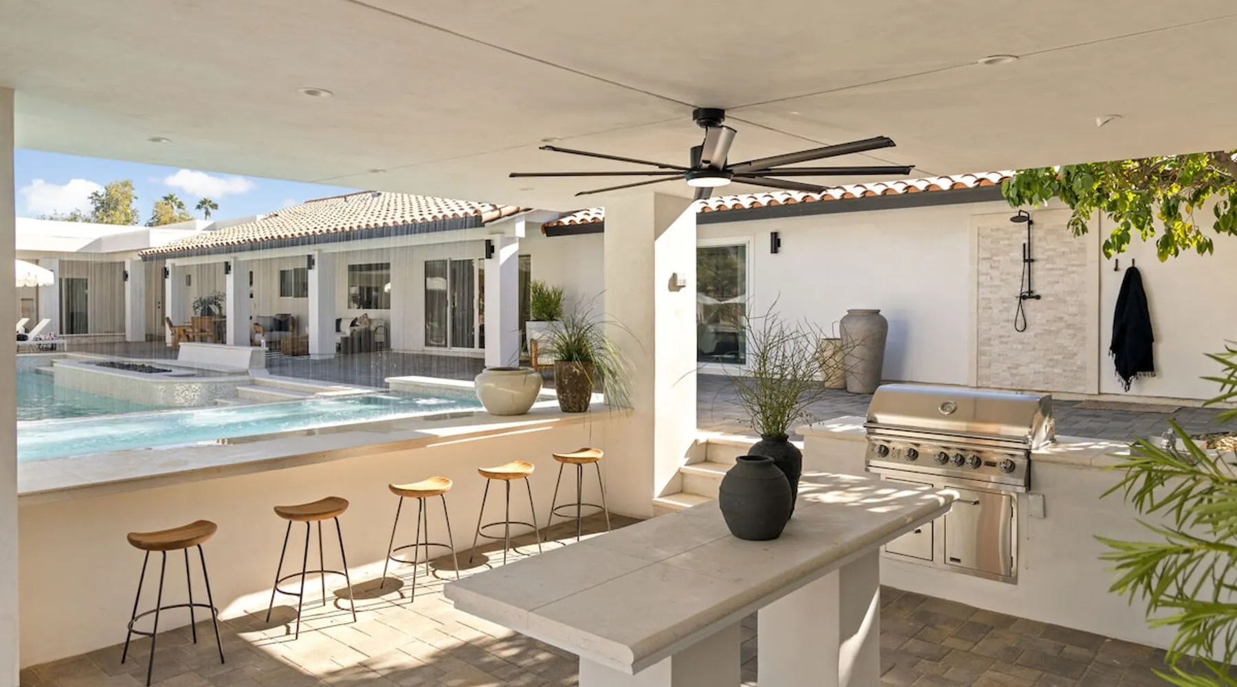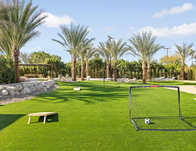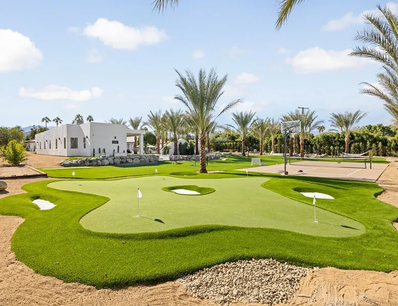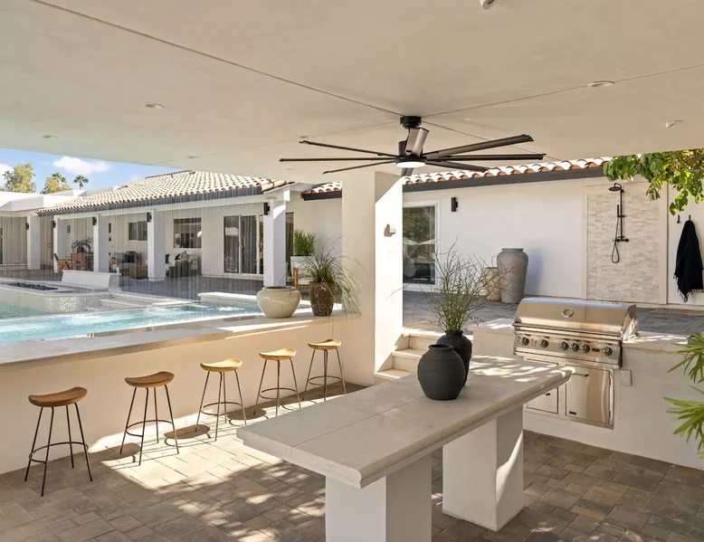 Welcome to Isla, an exclusive TRAVLR Vacation Home! We invite you to discover Isla, a breathtaking luxury vacation home that redefines the art of relaxation and entertainment. Nestled on a sprawling acre of desert land transformed into a pure oasis, this architectural masterpiece spans over 5,400 square feet and is designed to cater to large groups, corporate retreats, and unforgettable events. The space Experience the grounds of Isla and discover the grand central island that gives the property its name. Surrounded by a sparkling lazy river pool that beckons you to jump in and let the moving river take you around. Immerse yourself in the tranquility of cascading waterfalls and enjoy swimming beneath the enchanting grotto. With a thrilling pool slide and expansive lounging areas, every moment spent here is a celebration of leisure. Isla features 10 professionally curated bedrooms with a total of 16 beds and 9 luxurious bathrooms, ensuring comfort and privacy for everyone. The open concept communal spaces are perfect for entertaining, whether you’re hosting a dinner party or a casual gathering. Enjoy the seamless integration of smart home automation, designed for effortless guest use throughout your stay. For the active traveler, Isla boasts a range of amenities that elevate your vacation experience. Inside, there is a dedicated game room with TV, billiards table, ping pong and small gym. Challenge friends to a match on the sport court made for pickleball and basketball or play around on the expansive putting green with chipping area and sand traps. Enjoy a leisurely afternoon in the hammock garden or engage in friendly competition on the bocce ball court. The expansive green lawn is perfect for soccer, football, or a fun game of cornhole, while the fire pit invites cozy evenings under the stars. The outdoor kitchen is a culinary dream, perfect for preparing gourmet meals or enjoying a barbecue with loved ones. And as the sun sets, the magical ambiance of Isla comes alive, providing the ultimate backdrop for memorable evenings. Isla isn’t just a vacation rental; it’s a destination where luxury meets adventure, and every detail is curated for your enjoyment. Come experience the unparalleled beauty and sophistication of Isla, where your dream getaway awaits. Uno is the primary suite furnished with a king-sized bed and en suite bathroom with walk-in shower and separate tub and private access to the expansive backyard Dos: King bed, reach in closet and shared hall bathroom Tres: King bed & en suite bathroom Cuatro: King bed & en suite bathroom Cinco: Two sets of full size bunks (4 beds), direct patio access & en suite bathroom Seis: Two sets of full size bunks (4 beds), direct patio access & en suite bathroom Siete: King bed, direct patio access & Jack n Jill bathroom shared with Ocho Ocho: King bed, direct patio access & Jack n Jill bathroom shared with Siete Nueve: King bed, direct patio access & Jack n Jill bathroom shared with Diez Diez: King bed, direct patio access & Jack n Jill bathroom shared with Nueve Bed Summary: 8 King, 8 Full (4 sets of bunk beds). Queen Size Air Mattress upon request. Sleeps up to 20. There is space available for up to 8 cars total. Street parking is not permitted. Oversized vehicles are not permitted. Permit #: STR2024-0331 Guest access TRAVLR Vacation Home properties are accessible using a keyless system that allows entry into the home for your entire stay. Arrival information, including access codes will be emailed 5-days prior to your arrival. Other things to note - FREQUENTLY ASKED QUESTIONS - WHAT TIME IS CHECK-IN AND CHECK OUT? Check in is after 3PM local time, and check out is no later than 11AM. Early check in and late check out may be available for your reservation upon request. Please reach out for the cost and availability. WILL I NEED TO MEET THE PROPERTY MANAGER TO GET A KEY? TRAVLR Vacation Home properties are accessible using a keyless system that allows entry into the home for your entire stay. DO YOU PROVIDE DAILY CLEANING SERVICE? TRAVLR Vacation Homes provides a departure clean on all stays. A mid-week or mid-stay clean can be provided for an additional fee. CAN WE HAVE THE POOL HEATED? During the winter, the temperature of pools can range between 50-70 degrees. If you would like the pool to be heated to 80-82 degrees, we do charge a fee of $300/night. Please let your property manager know at least 48-hours in advance of your arrival if you would like pool heat added to your reservation. WHAT IS PROVIDED WITH MY ACCOMMODATIONS? All of our vacation rentals are furnished and have a kitchen with amenities including a microwave, coffee maker, toaster and blender. Each property is stocked with cooking and serving items including plates, bowls and utensils, as well as a can opener, corkscrew measuring spoons and more. The coffee maker takes ground coffee and we also offer a spice rack, salt and pepper. There are bath towels, pool towels and bed linens. We also provide an initial supply of trash liners, toilet paper, hand soap and dishwasher soap. Bathrooms are stocked with shampoo, conditioner and liquid body wash. Laundry facilities are also equipped with laundry soap and dryer sheets. CAN I SHIP A PACKAGE TO MY VACATION HOME? We do not recommend shipping directly to the home, we do not have mailbox keys, and there are many different people with access to the home: vendors, housekeeping, Guest Services staff, etc... so we cannot be responsible for packages once delivered. DO YOUR HOMES HAVE OUTDOOR MUSIC SYSTEMS? Yes! The entire property both inside and out is filled with speakers that are setup in different zones so you can enjoy it wherever you are and even have different music playing in different areas. To use, simply download the Sonos app and connect to our Wi-Fi system. You can then control your music from Spotify, Apple Music and more. Due to city regulations though, the outdoor music speakers will not work between the hours of 9PM a